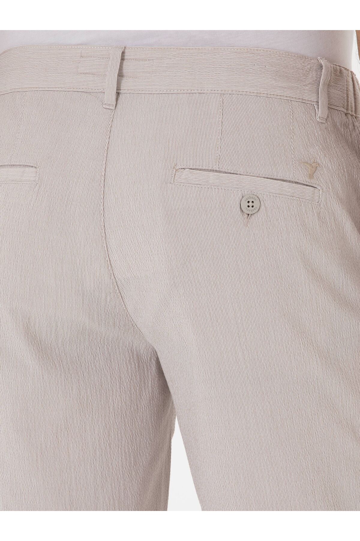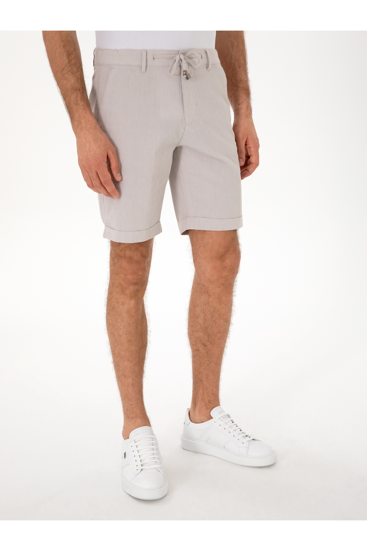 شلوارک برمودا طرح دار بژ با کمر کشی و جنس نخی معمولی برند کاشارل کد:(50305669-VR011)