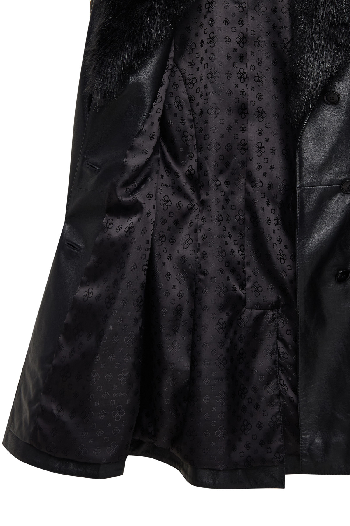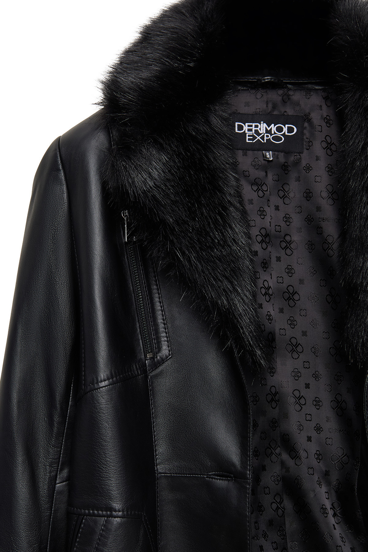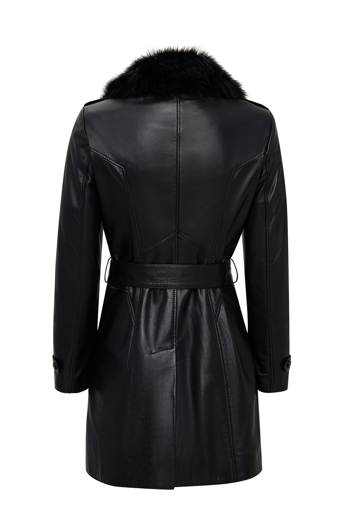پالتو زنانه چرم مشکی والریا با یقه خز و جزئیات کمربند 25WGE56181M