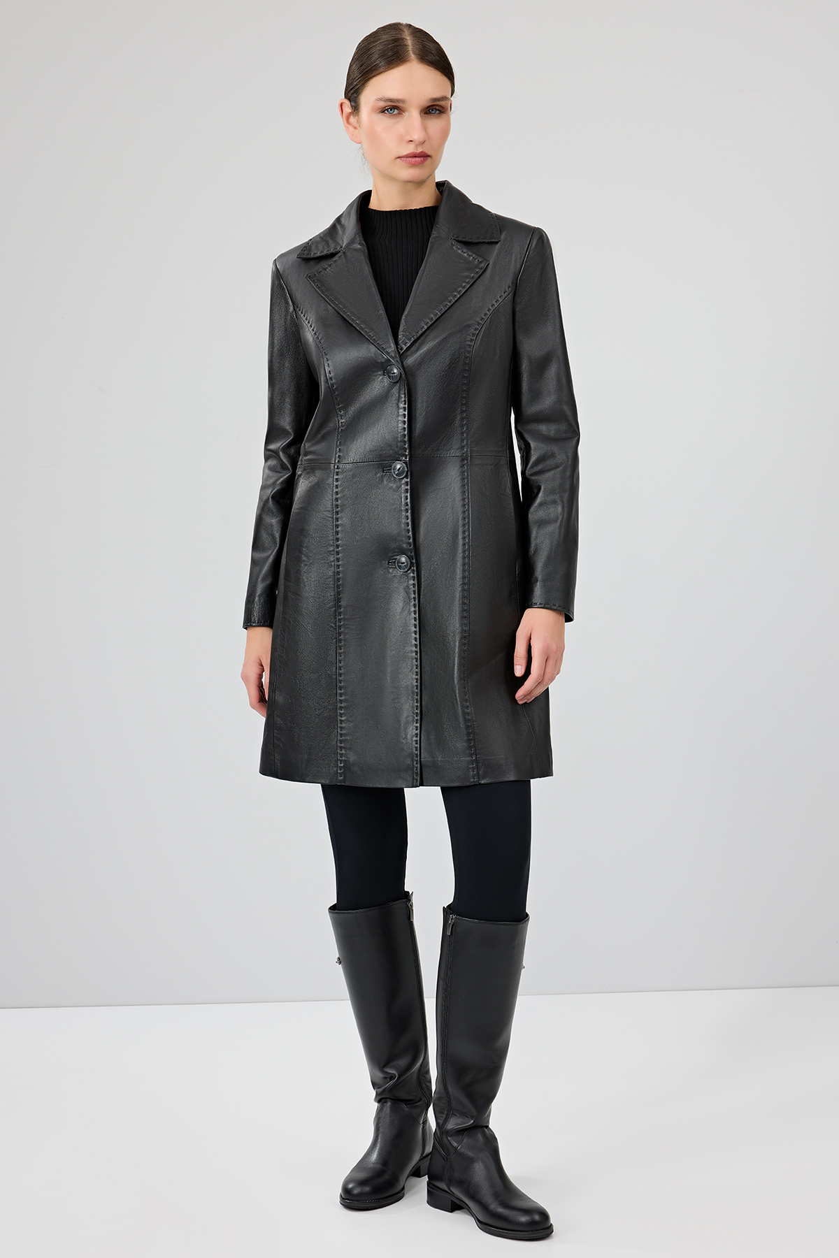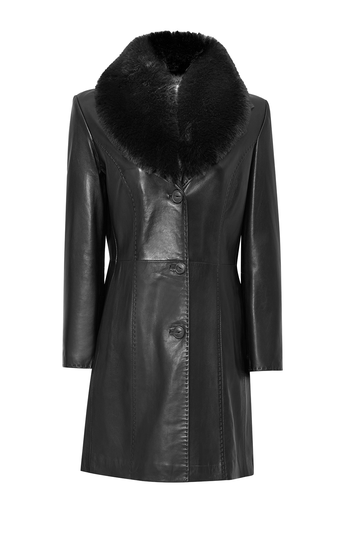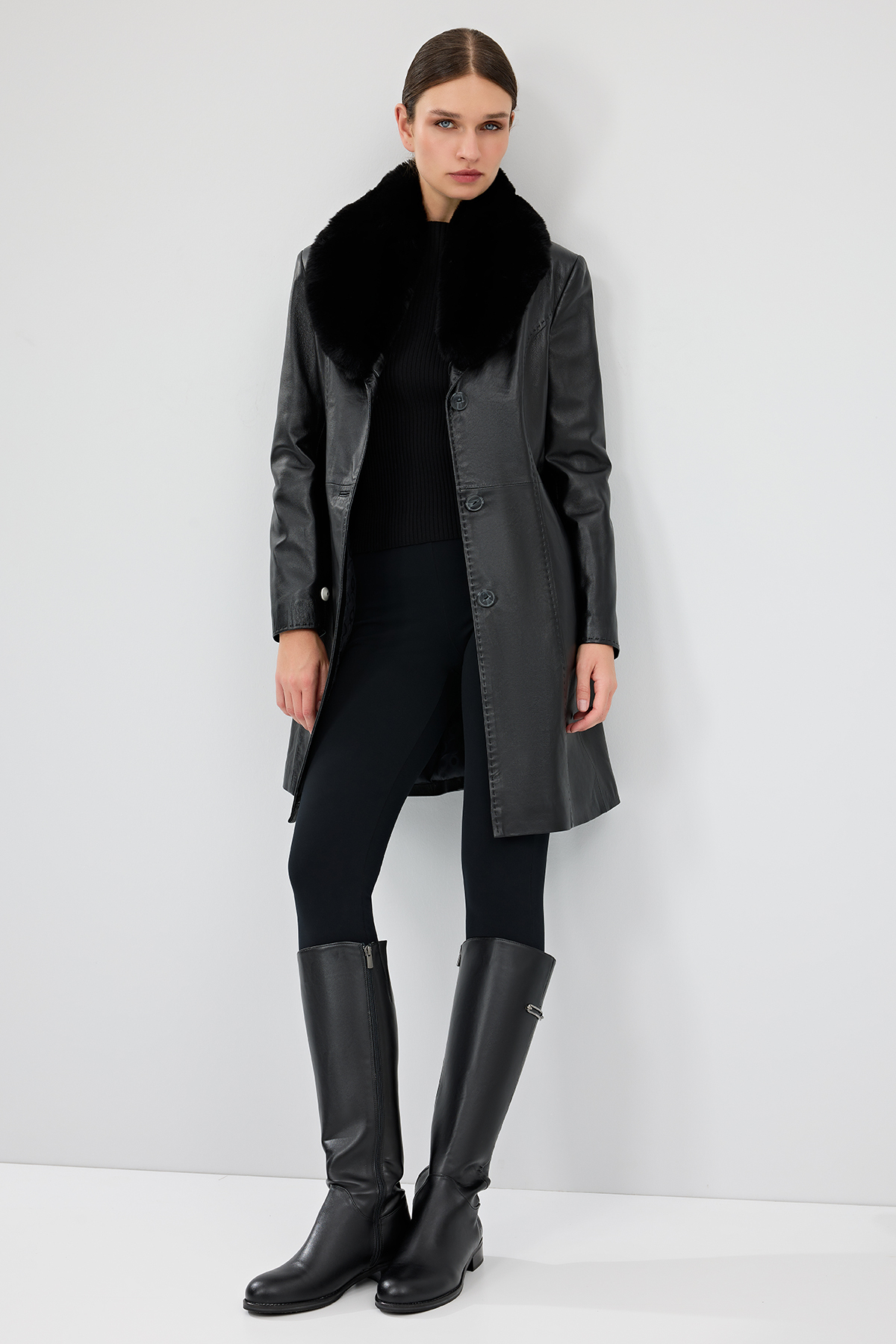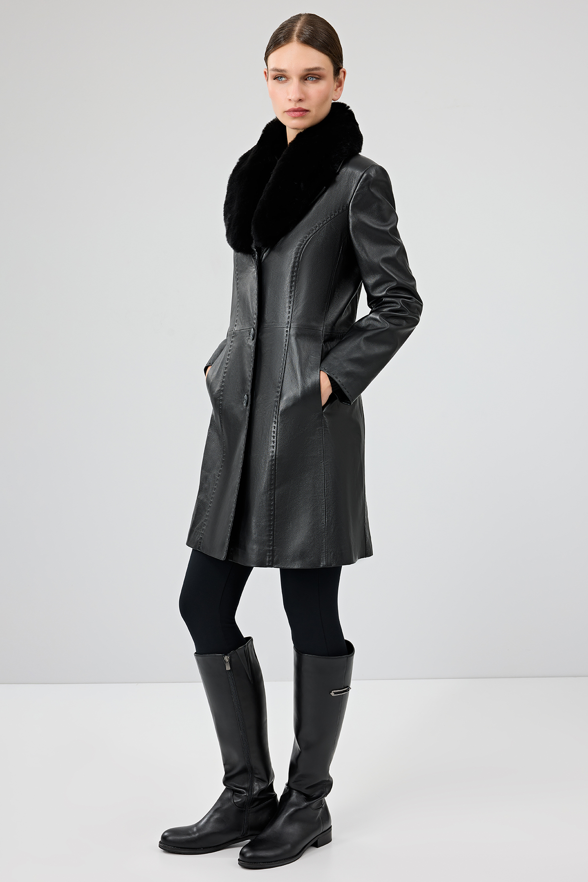 پالتو بلند چرمی زنانه کریستینا با آستر خز مشکی، کد 22WGE59951M