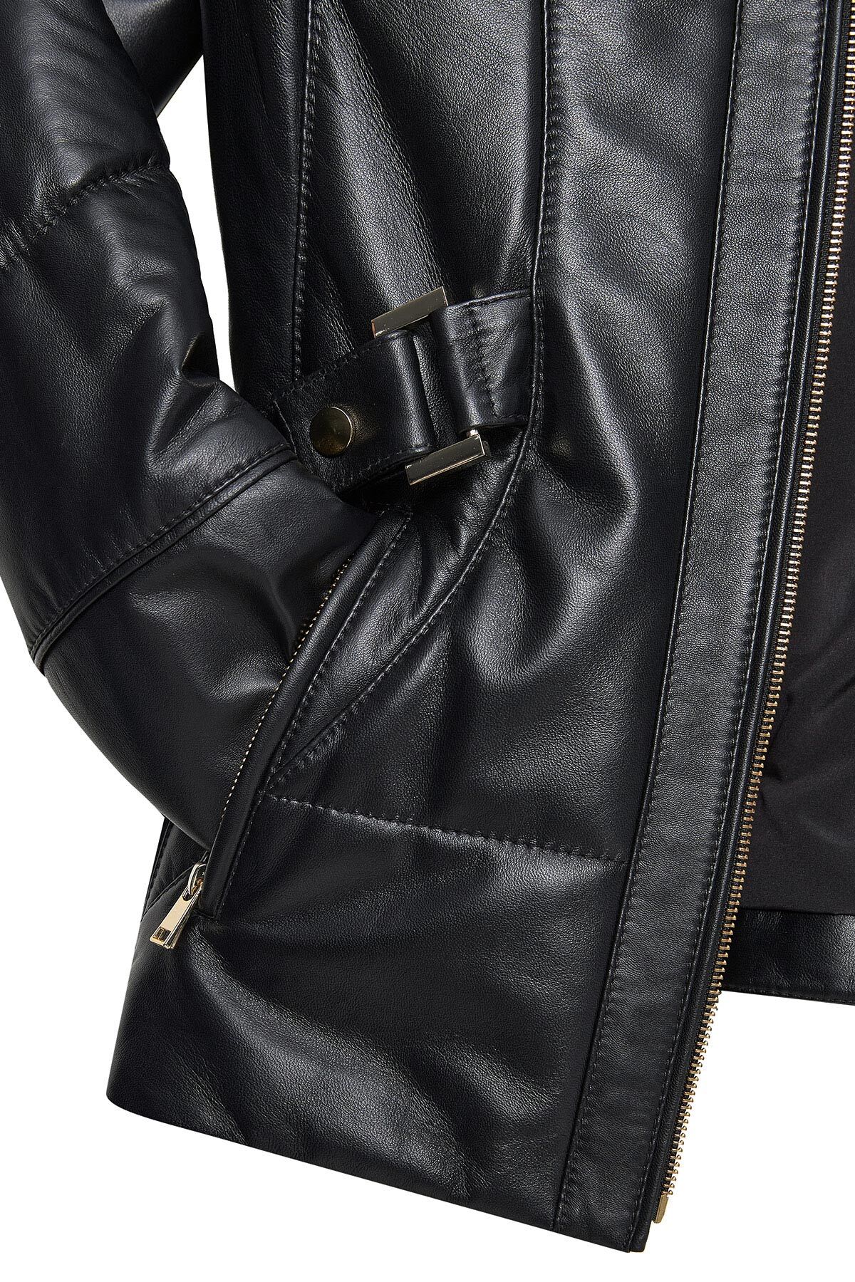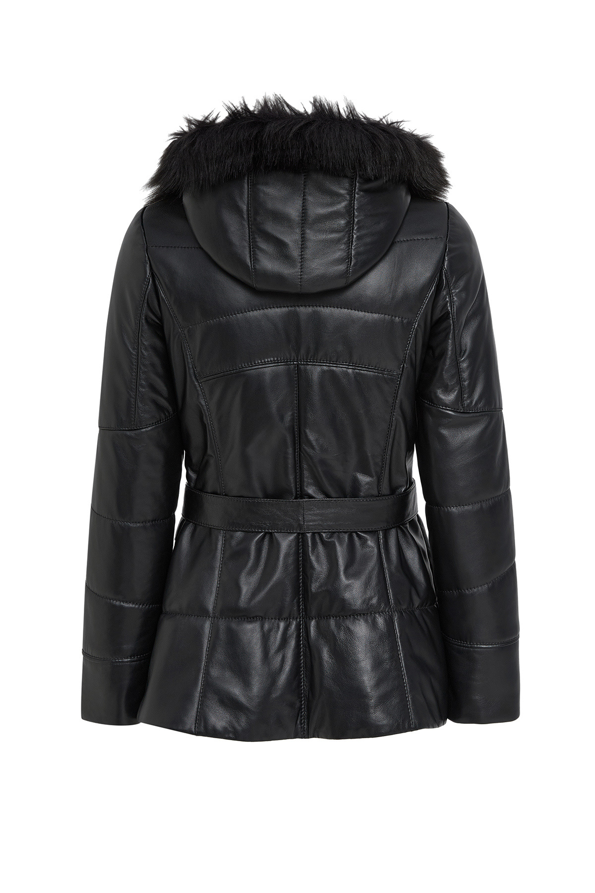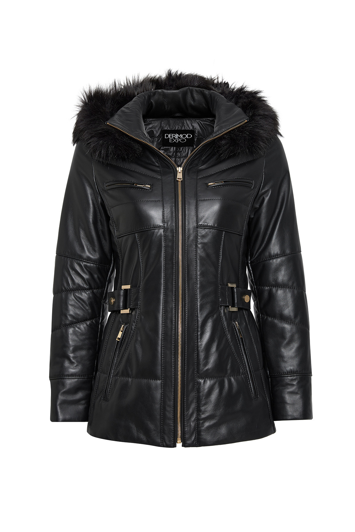 پالتو زنانه چرمی کلاه‌دار مشکی با آستر خزدار الکساندرا، کد 24WGE52851M