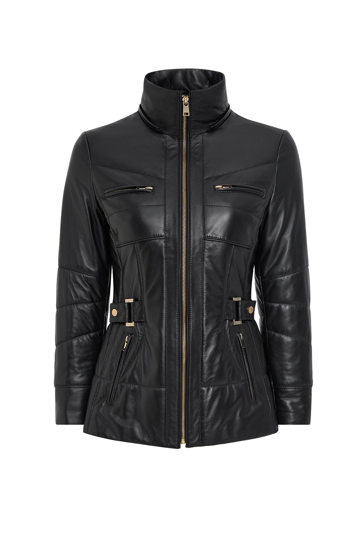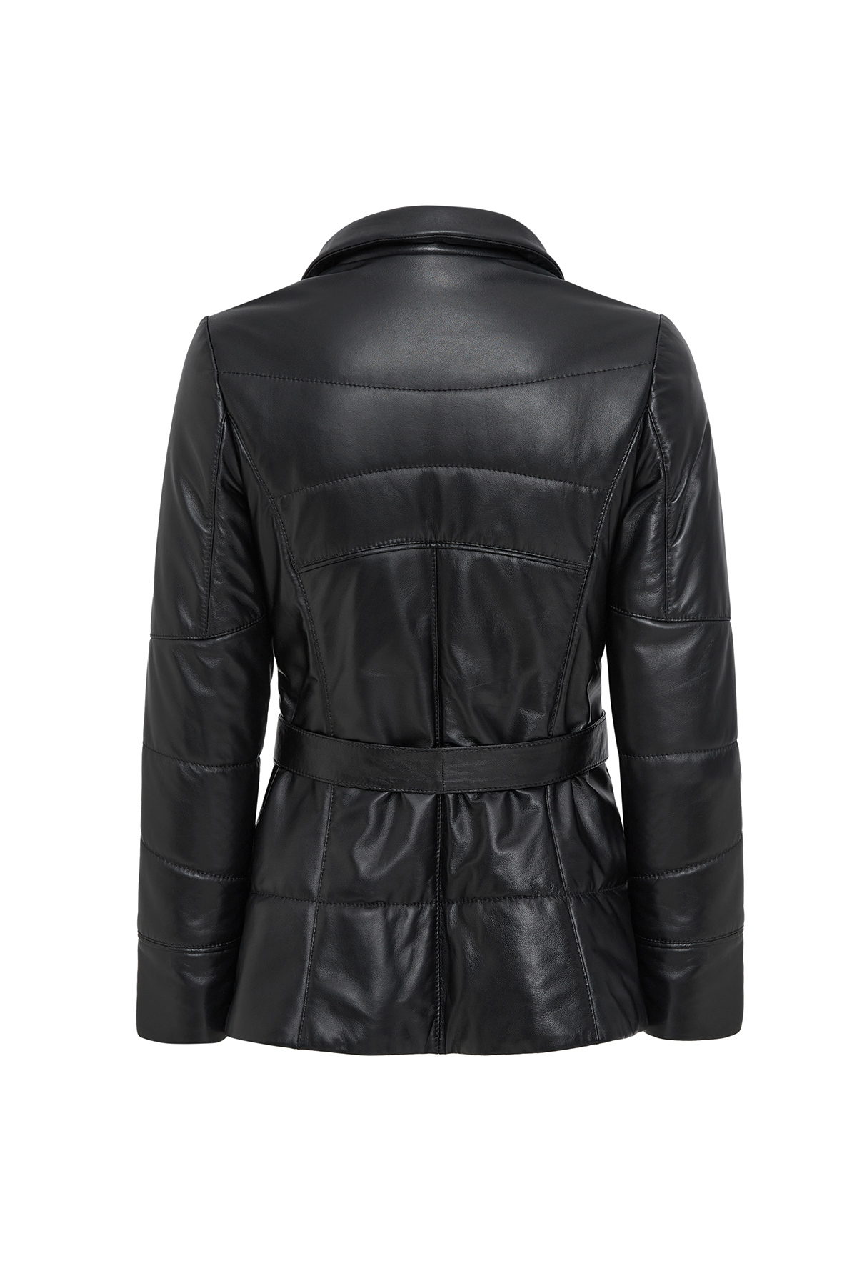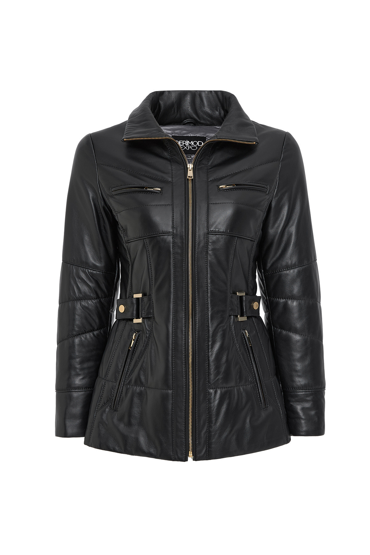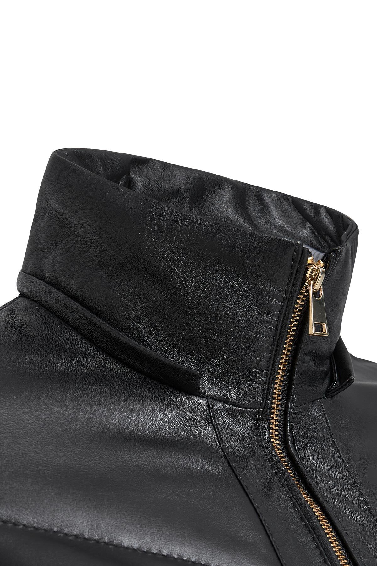 پالتو زنانه چرمی کلاه‌دار مشکی با آستر خزدار الکساندرا، کد 24WGE52851M