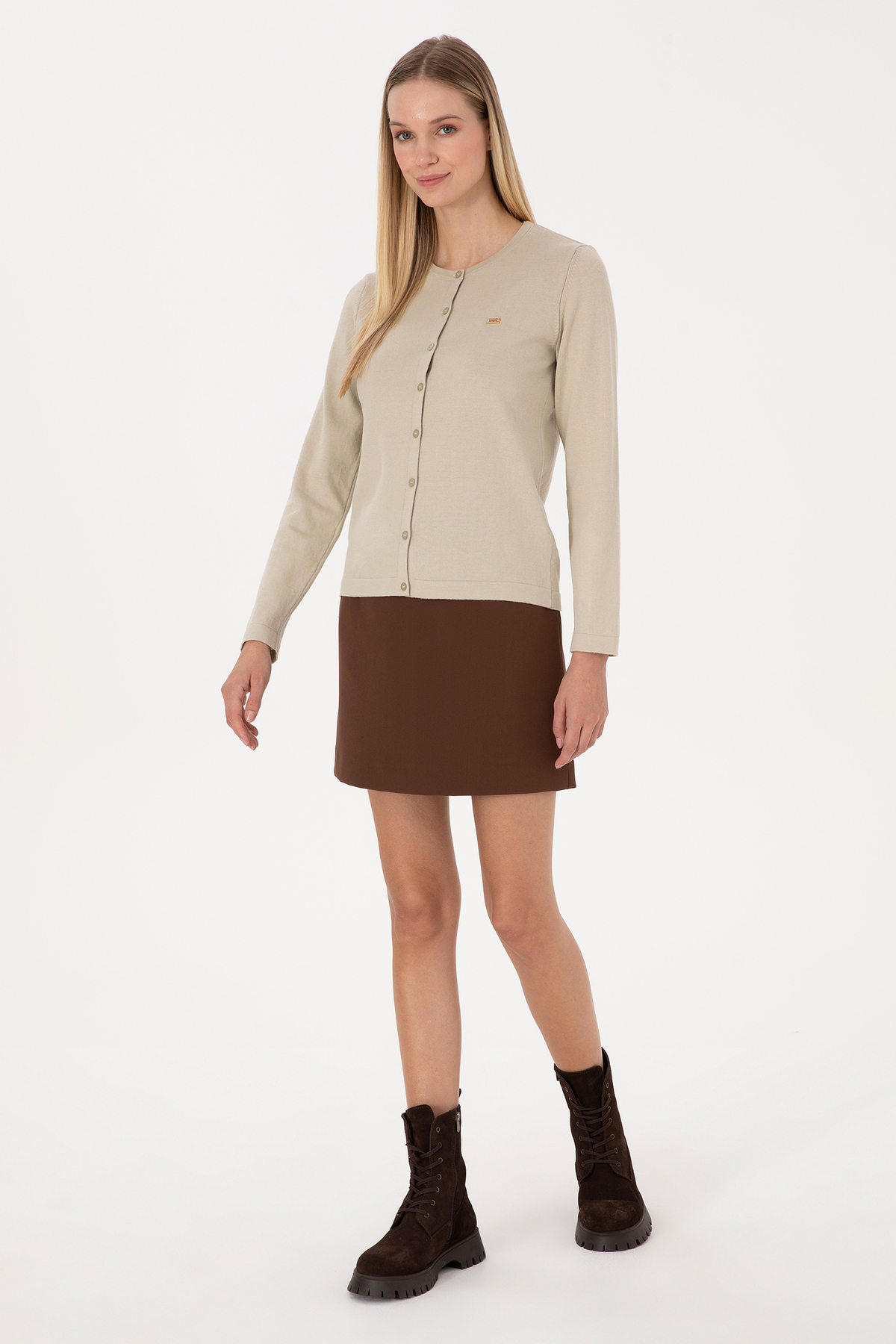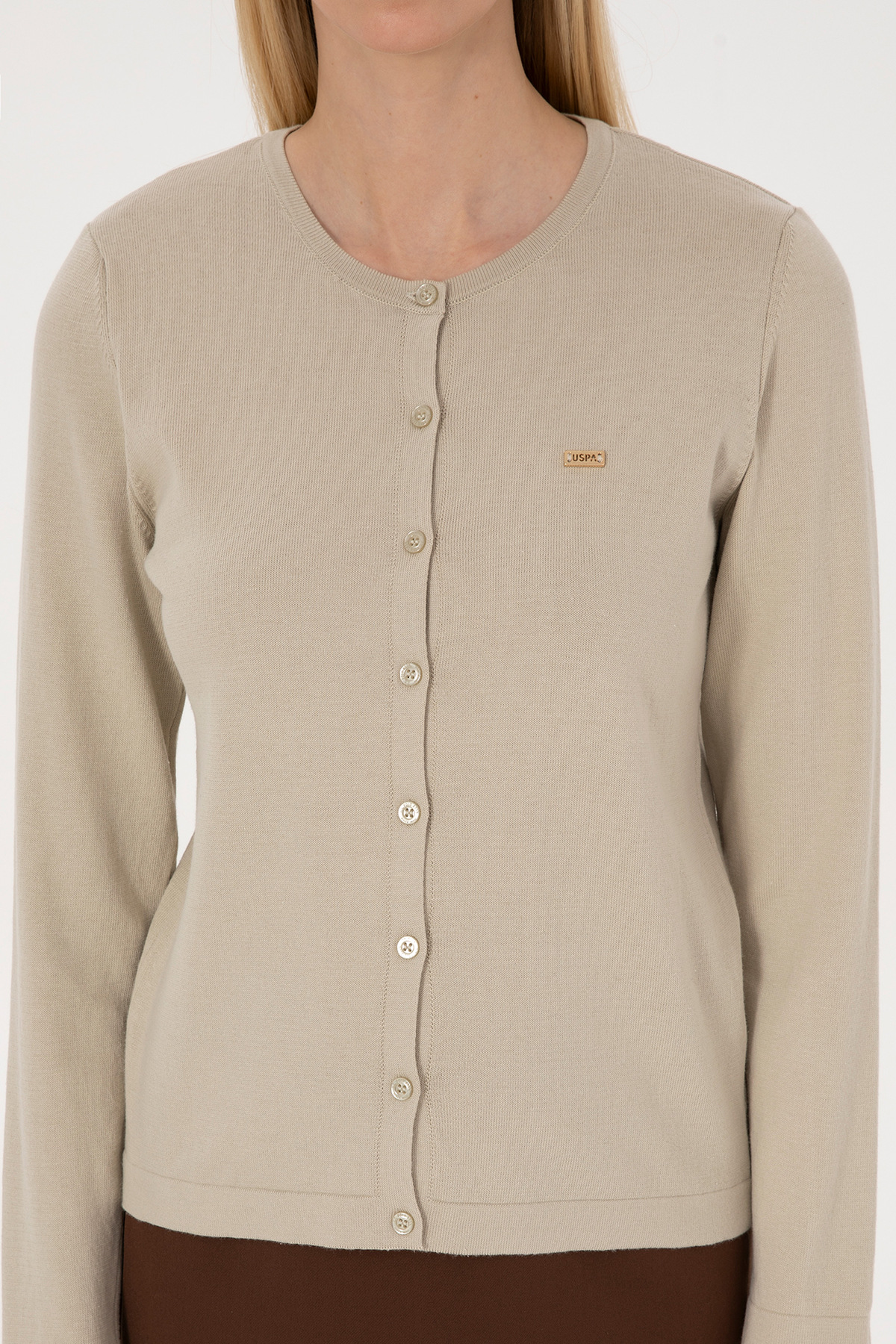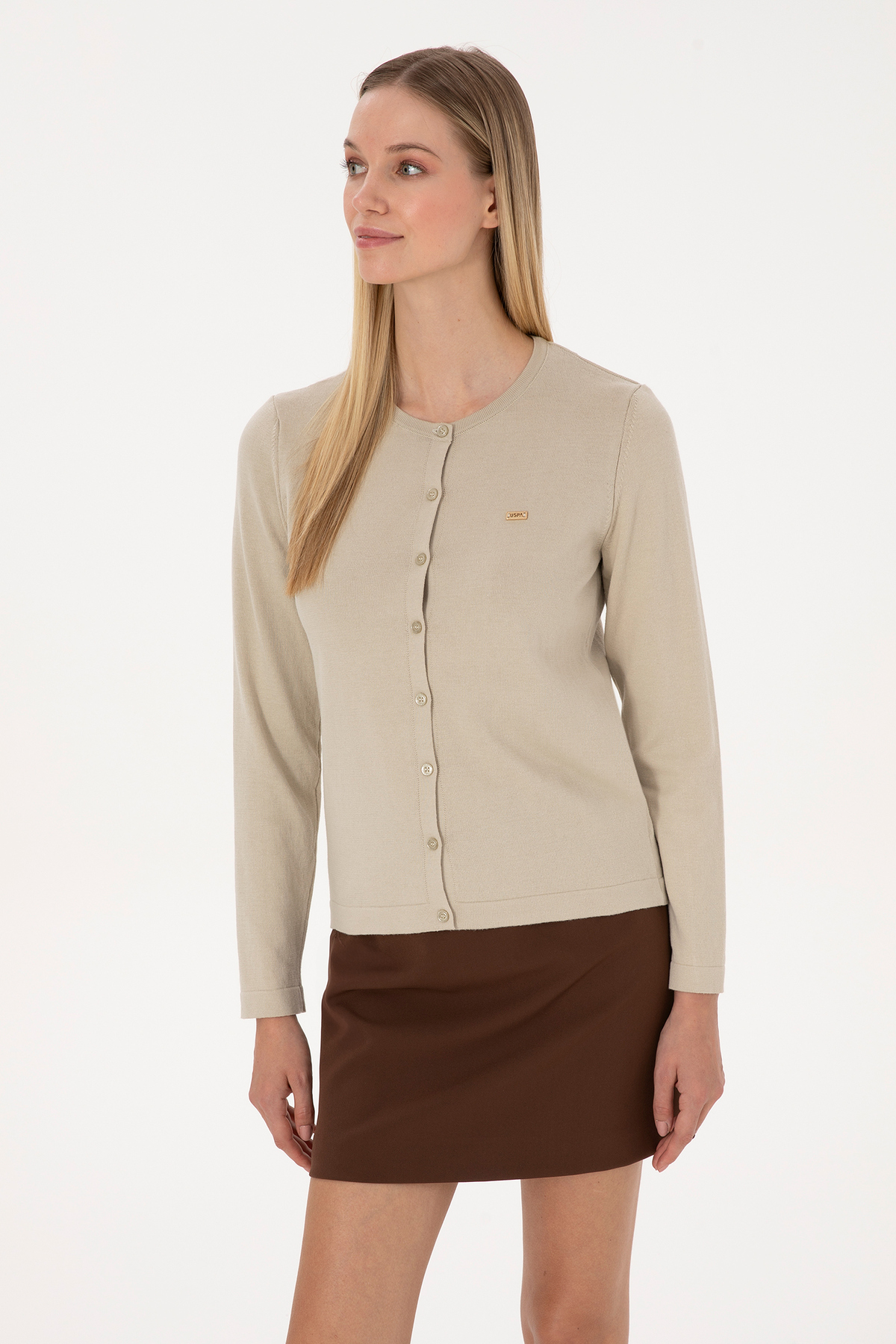 ژاکت بافتنی زنانه خاکی روشن یو اس پولو کد :(50307719-VR183)