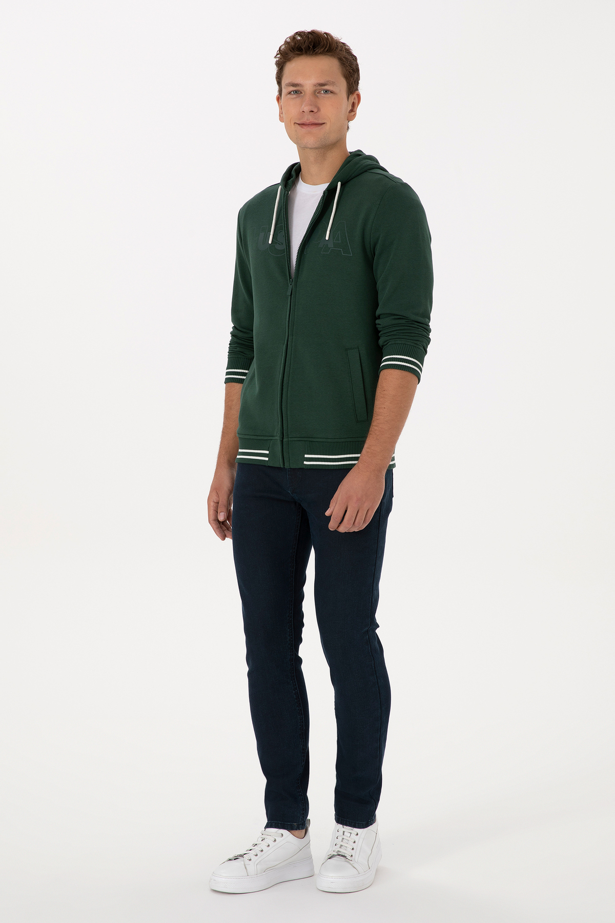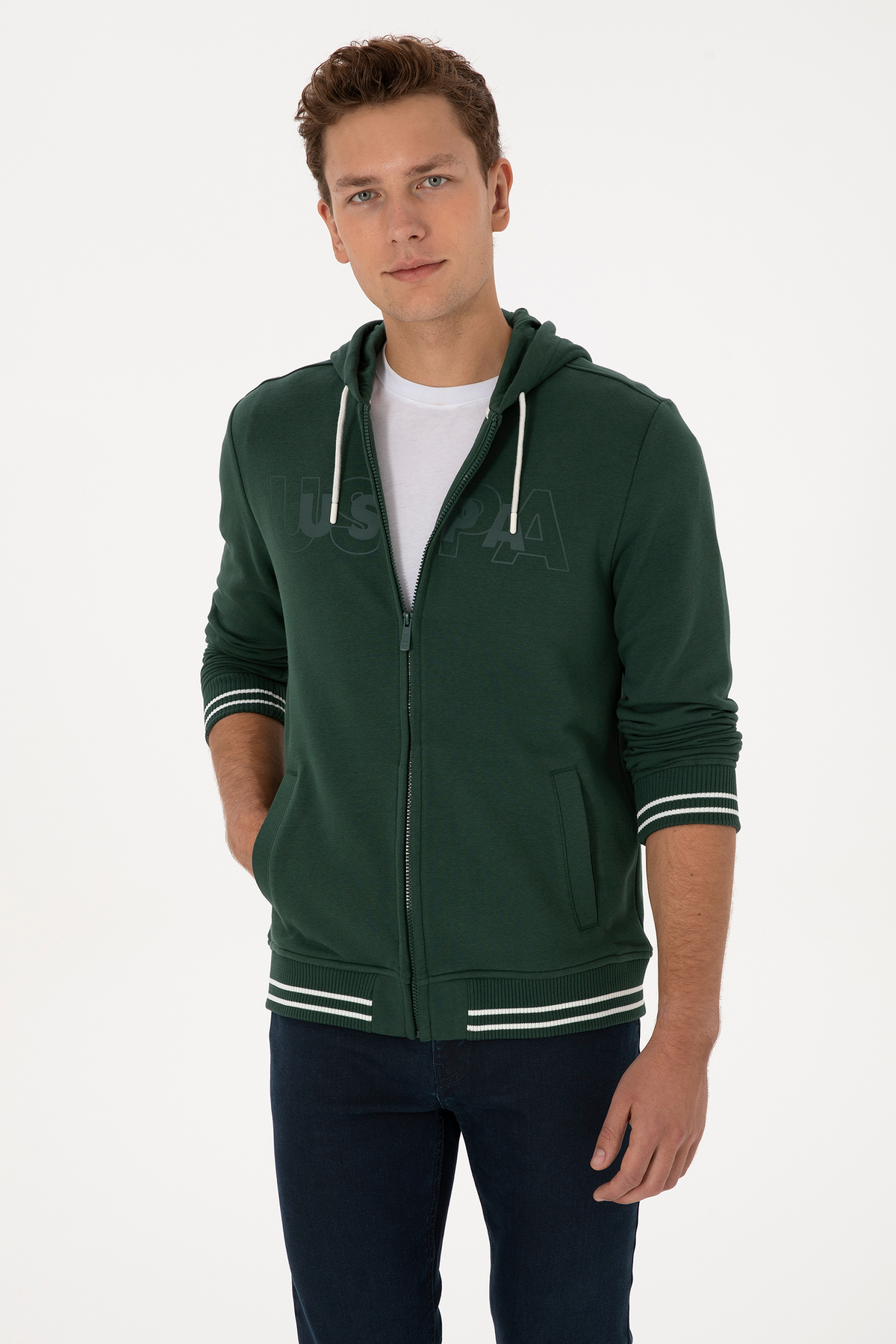 ژاکت بافتنی مردانه سبز تیره برند یو اس پولو کد:(50316355-VR079)