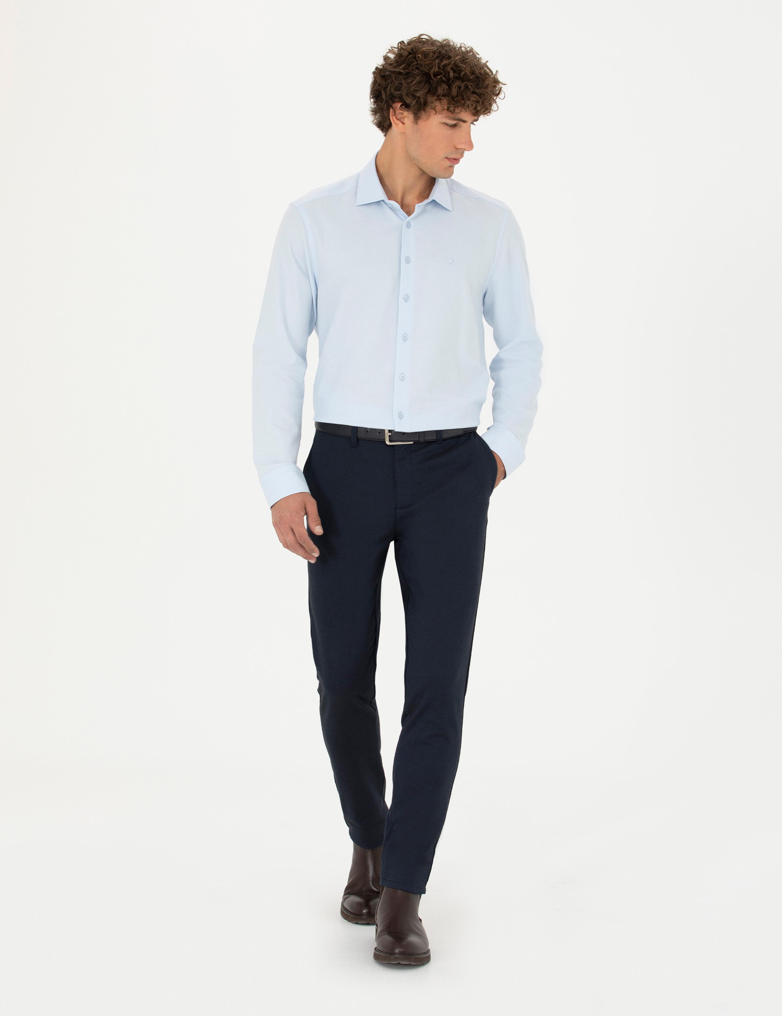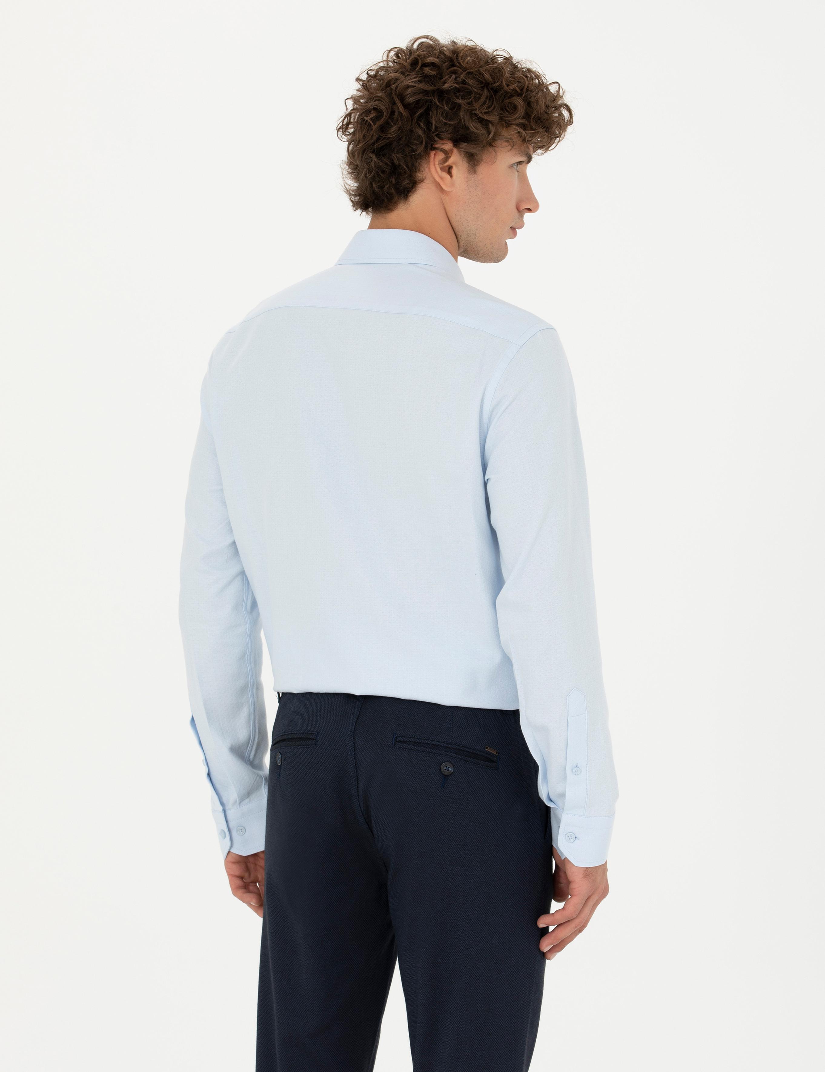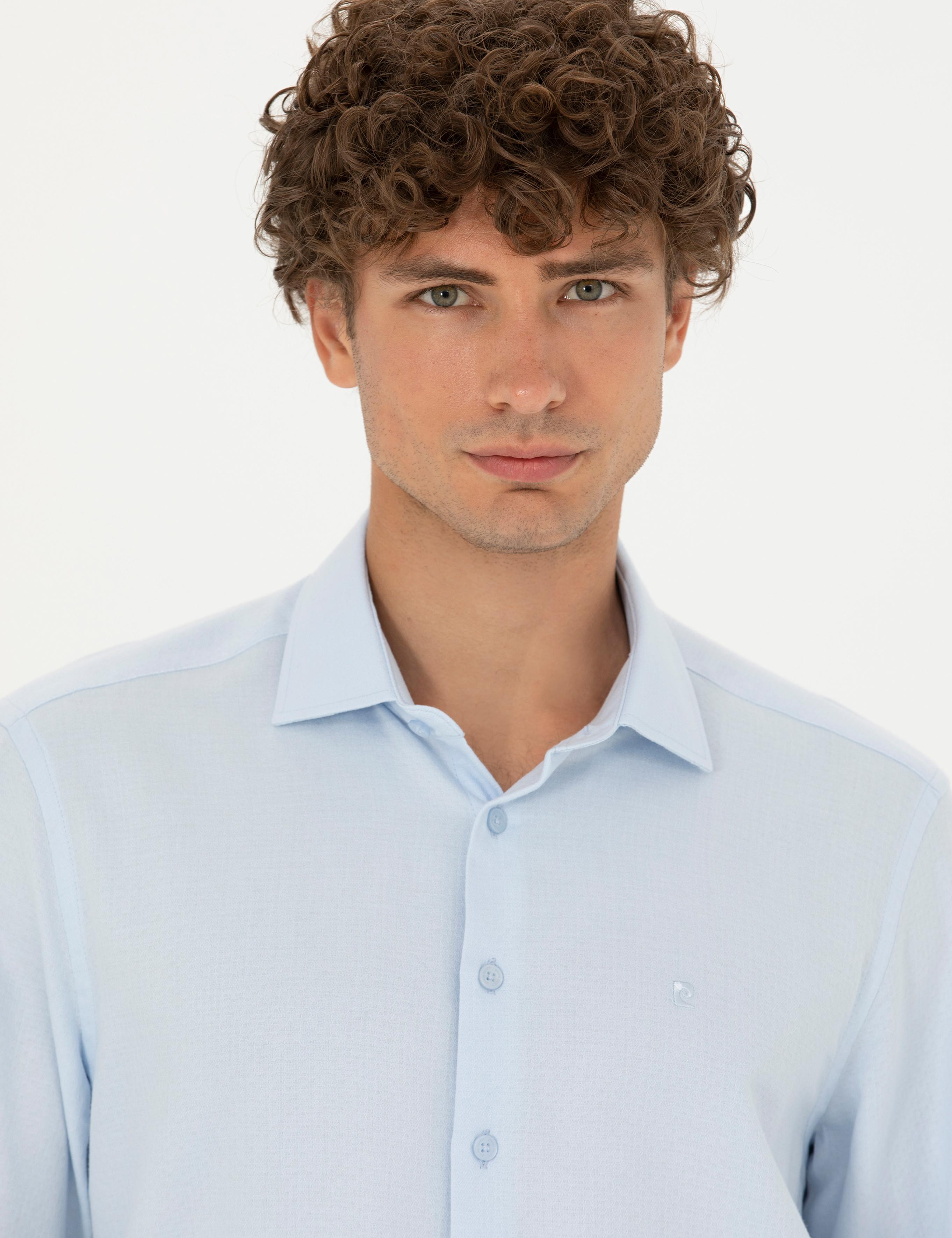 پیراهن آستین بلند اسلیم فیت آبی روشن پیر کاردین