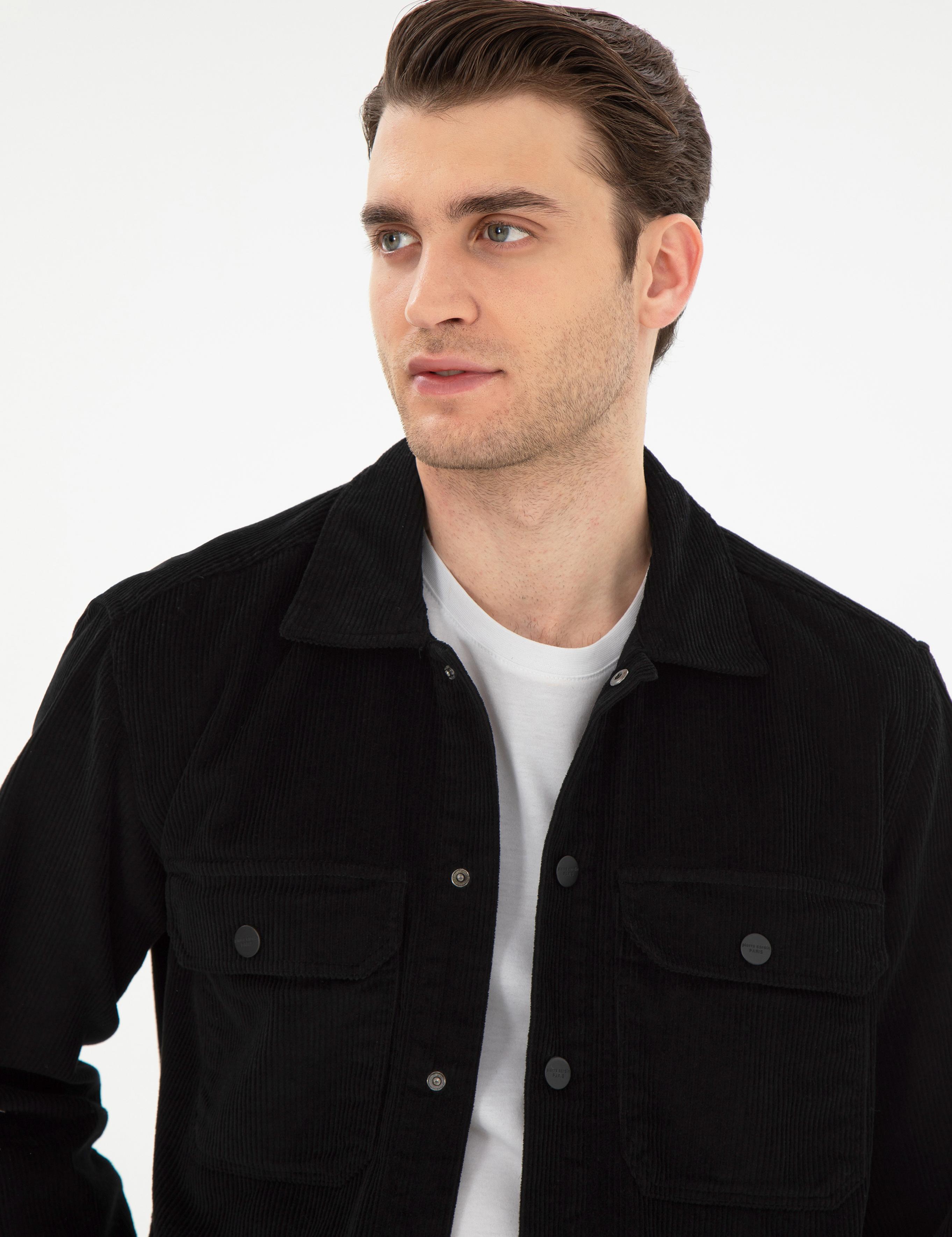 ژاکت پیراهن مشکی یقه کلاسیک بزرگ دو جیب پیر کاردین