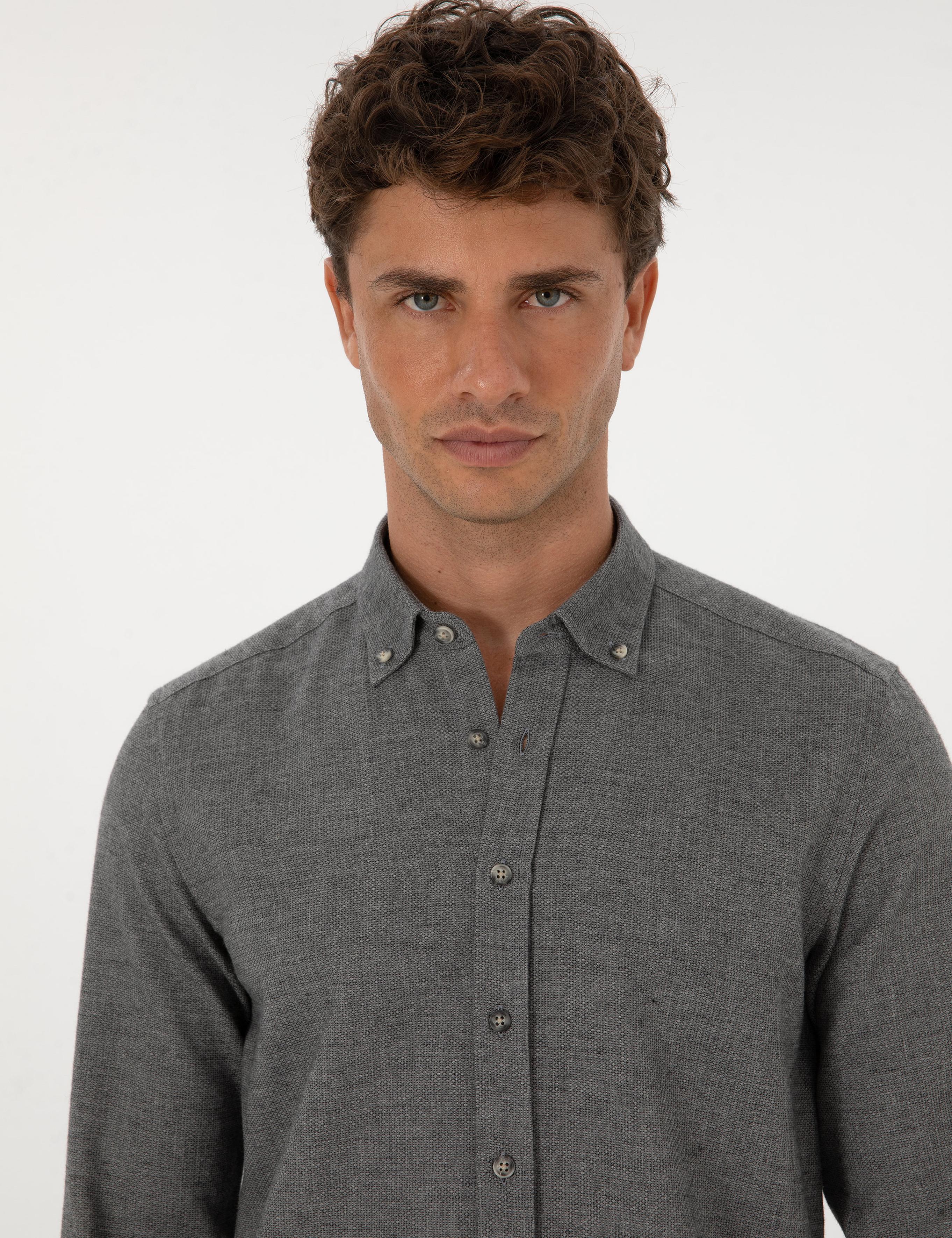 پیراهن آستین بلند خاکستری اسلیم فیت پیر کاردین