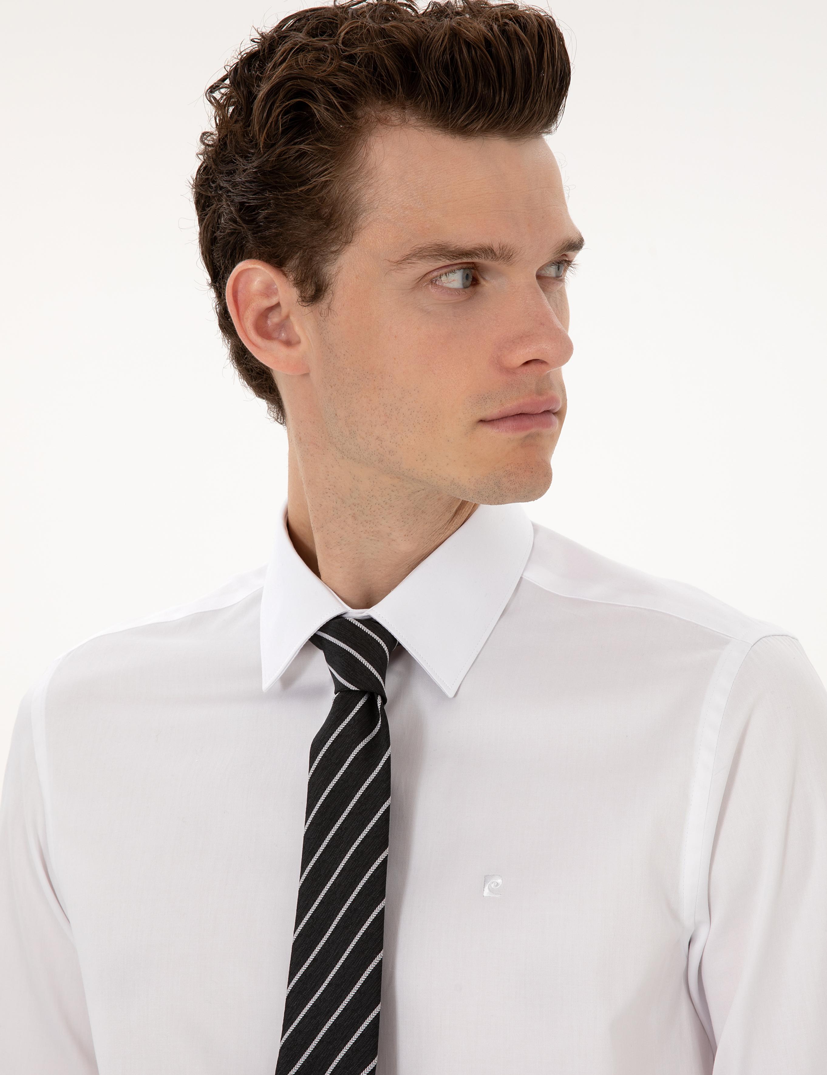پیراهن آستین بلند سفید اسلیم فیت ساده پیر کاردین