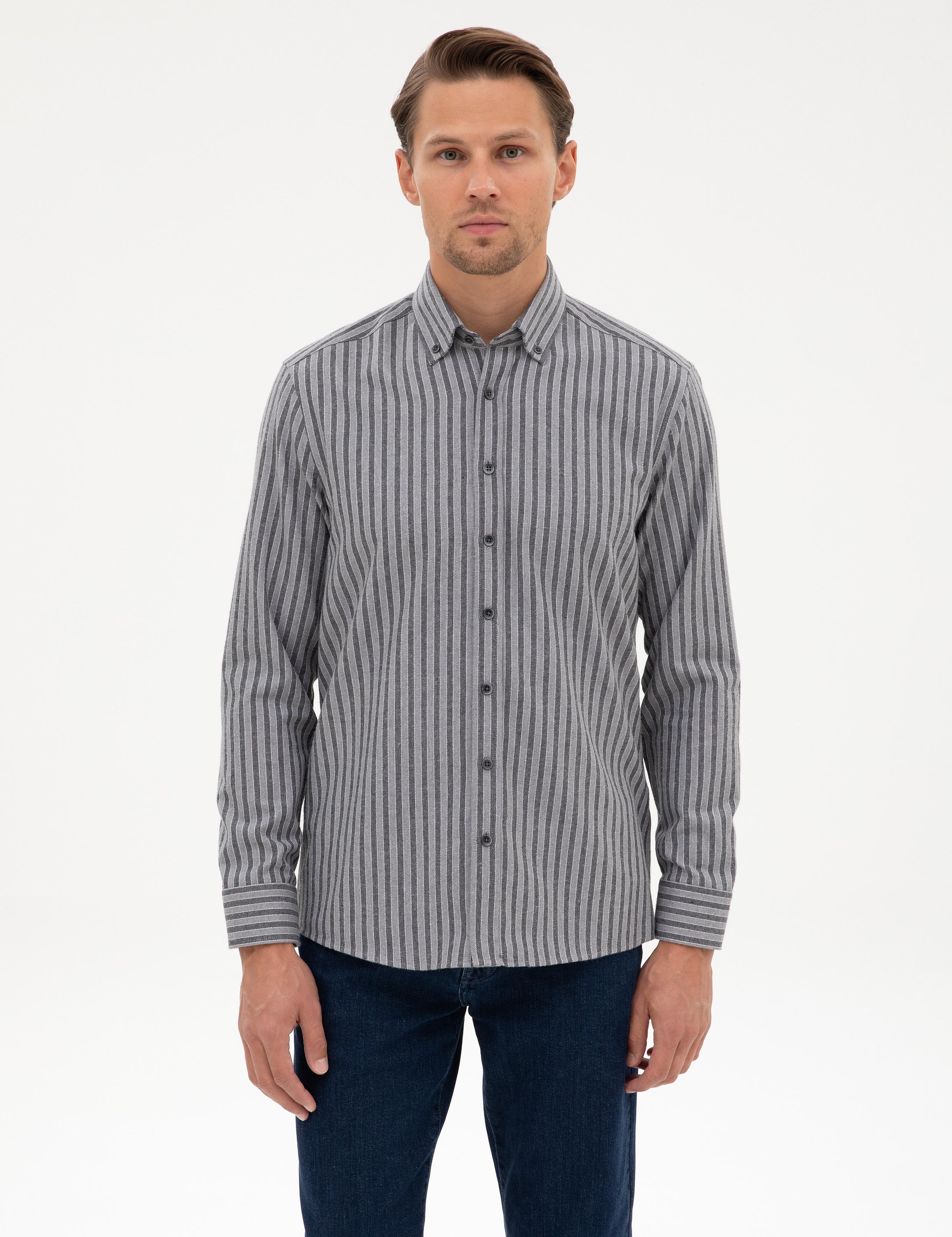 پیراهن آستین بلند راه راه خاکستری معمولی پیر کاردین