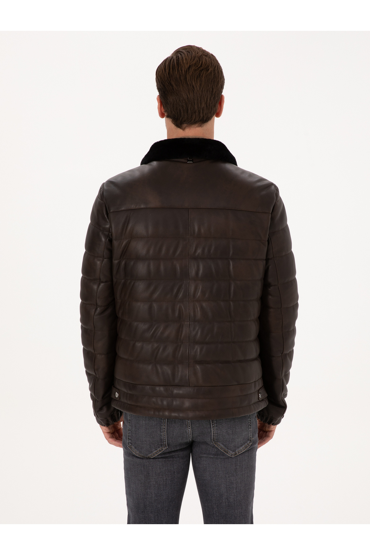 کاپشن چرم ۱۰۰٪ قهوه‌ای برند کاشارل کد:(50314566-VR029)