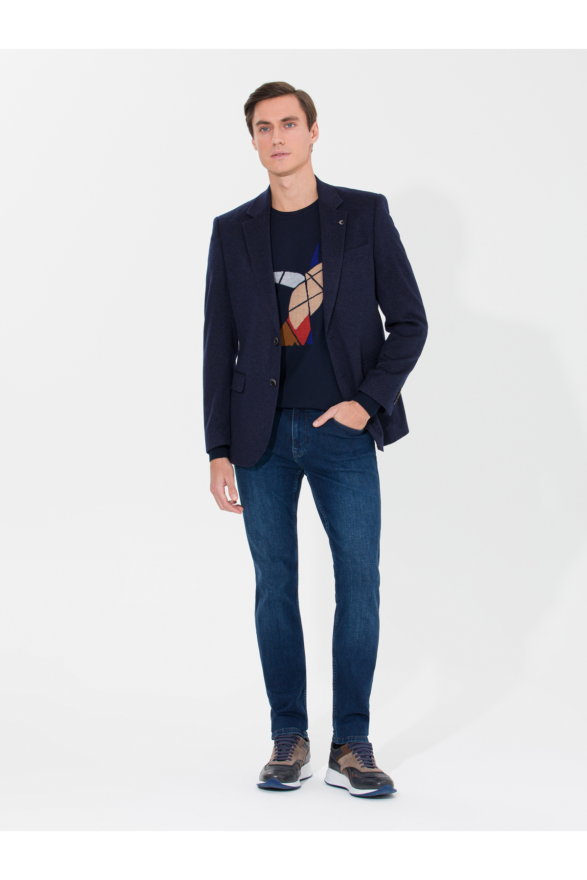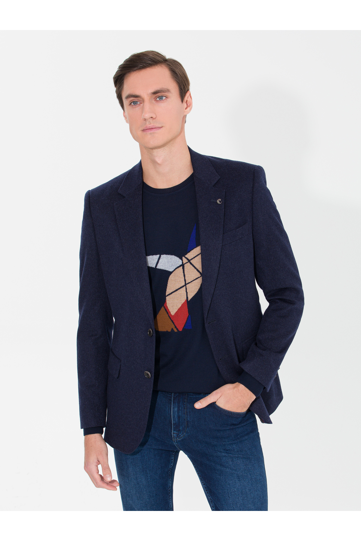 ژاکت کشمیر اسلیم فیت سرمه‌ای برند کاشارل کد:(50258856-VR033)