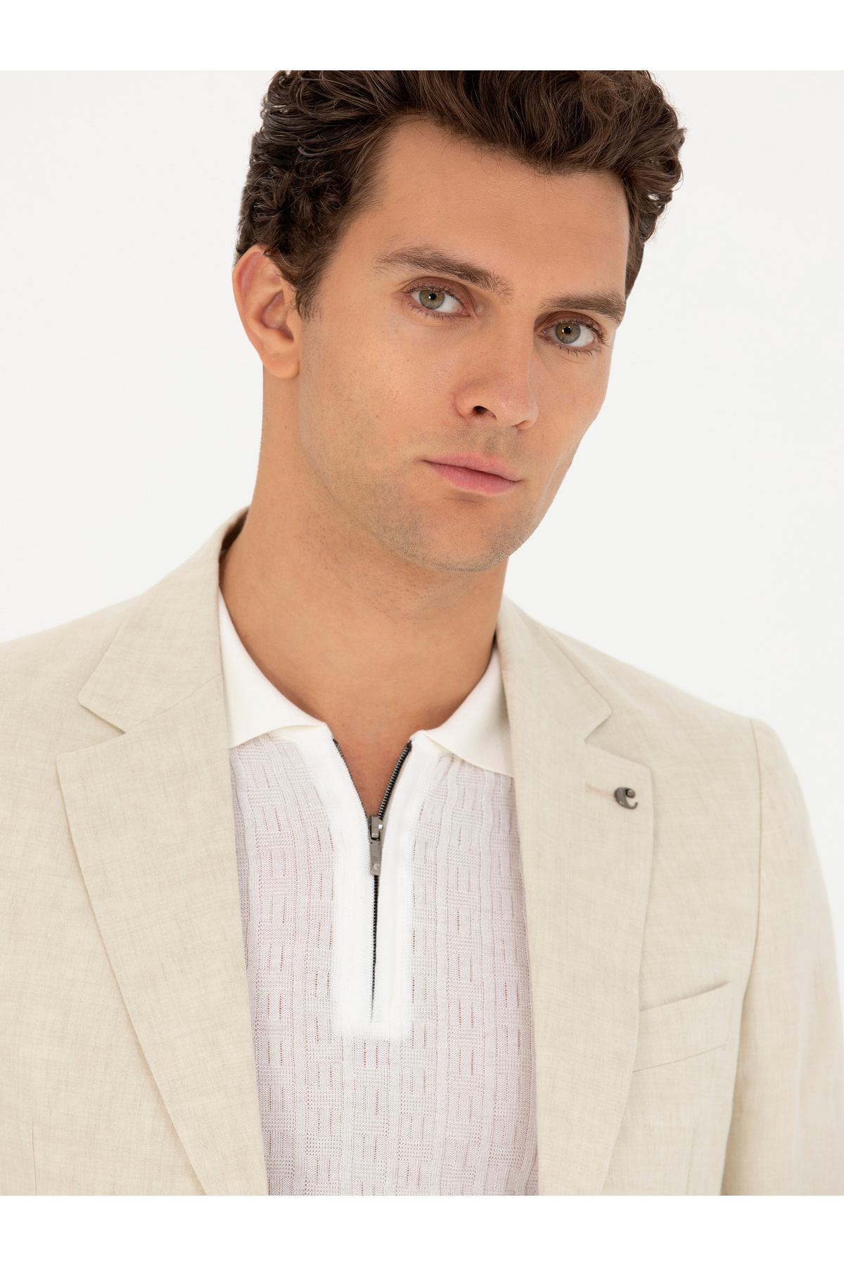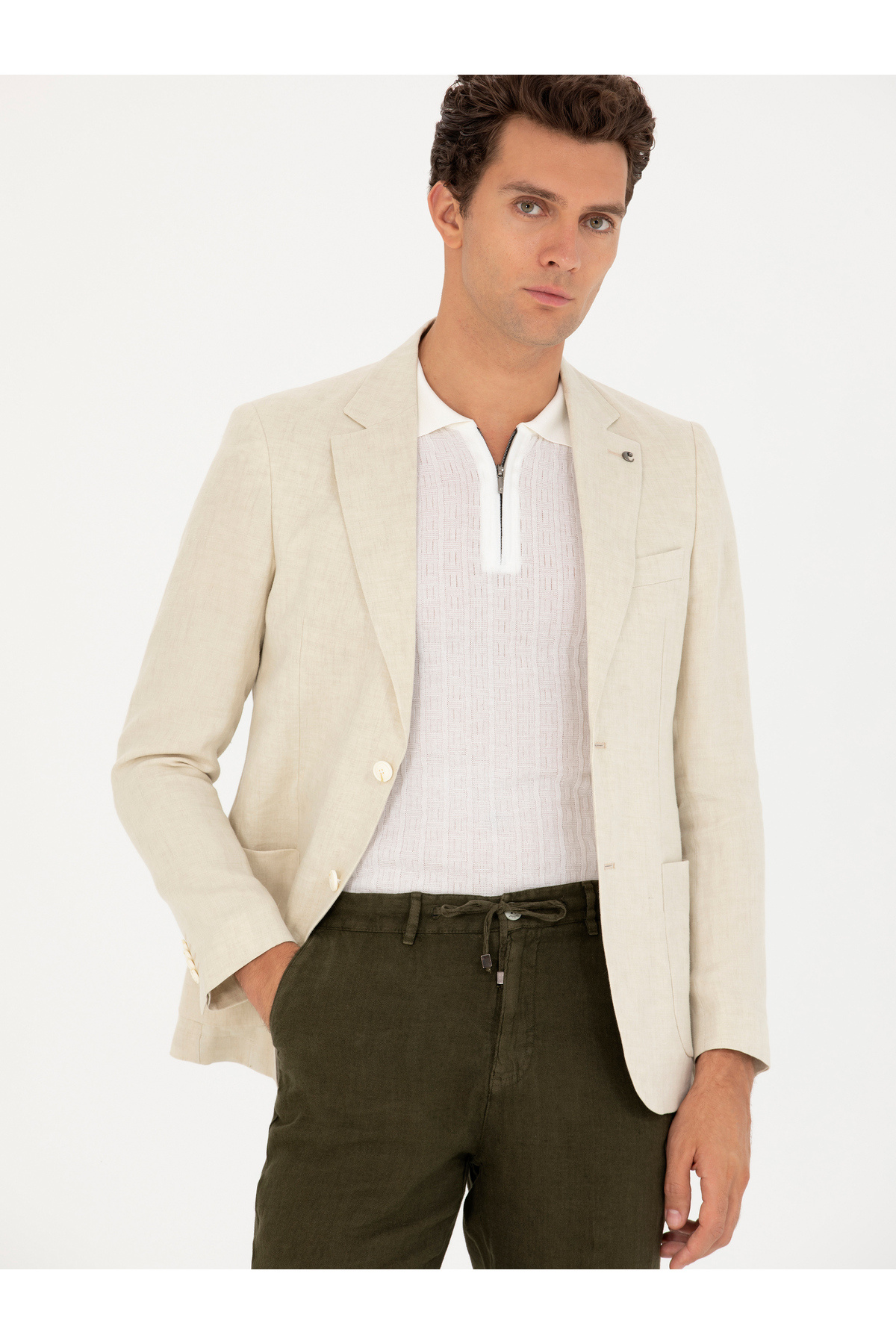کاپشن ۱۰۰٪ کتان بژ اسلیم فیت برند کاشارل کد:(50268891-VR011)