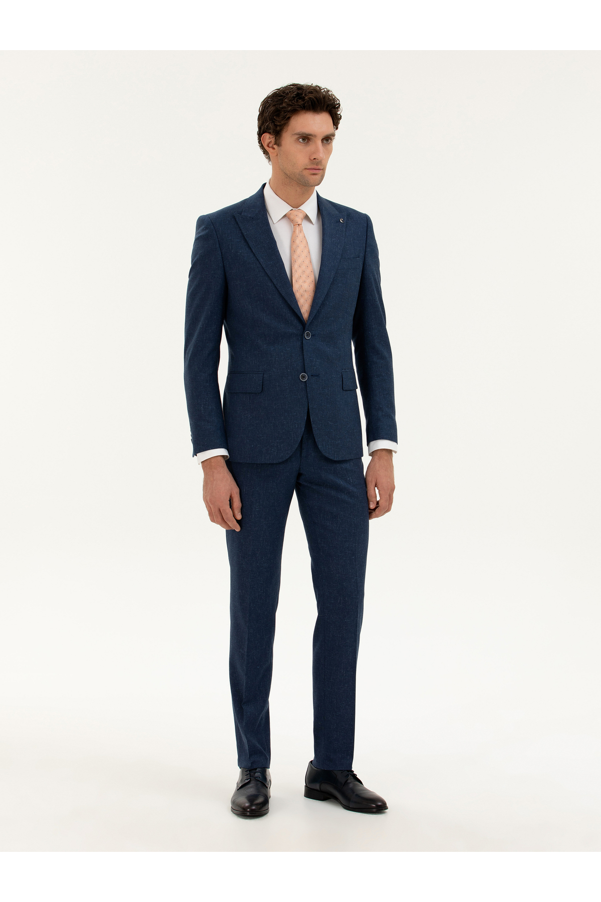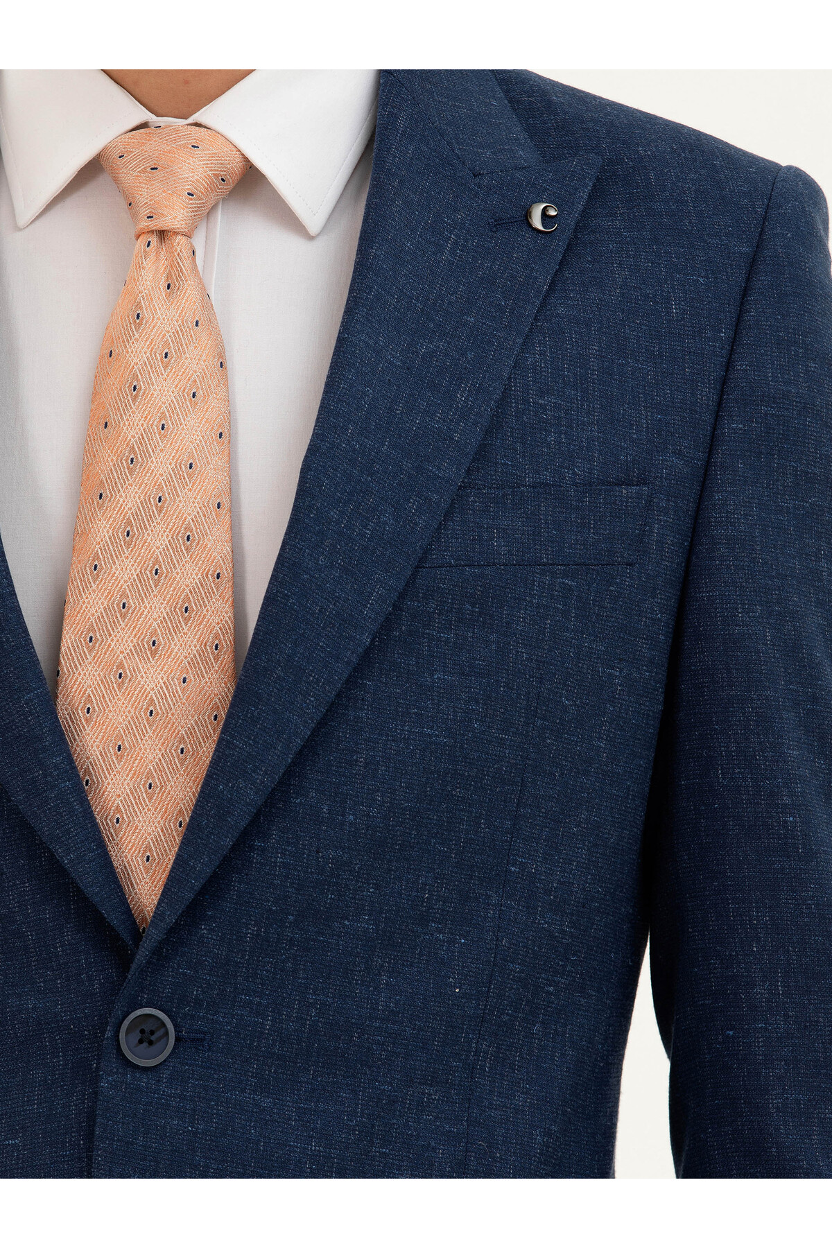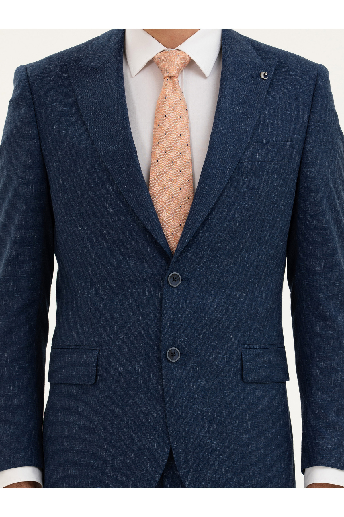 کت و شلوار کتان اسلیم فیت سرمهای ترکیبی برند کاشارل کد:(50284635-VR033)