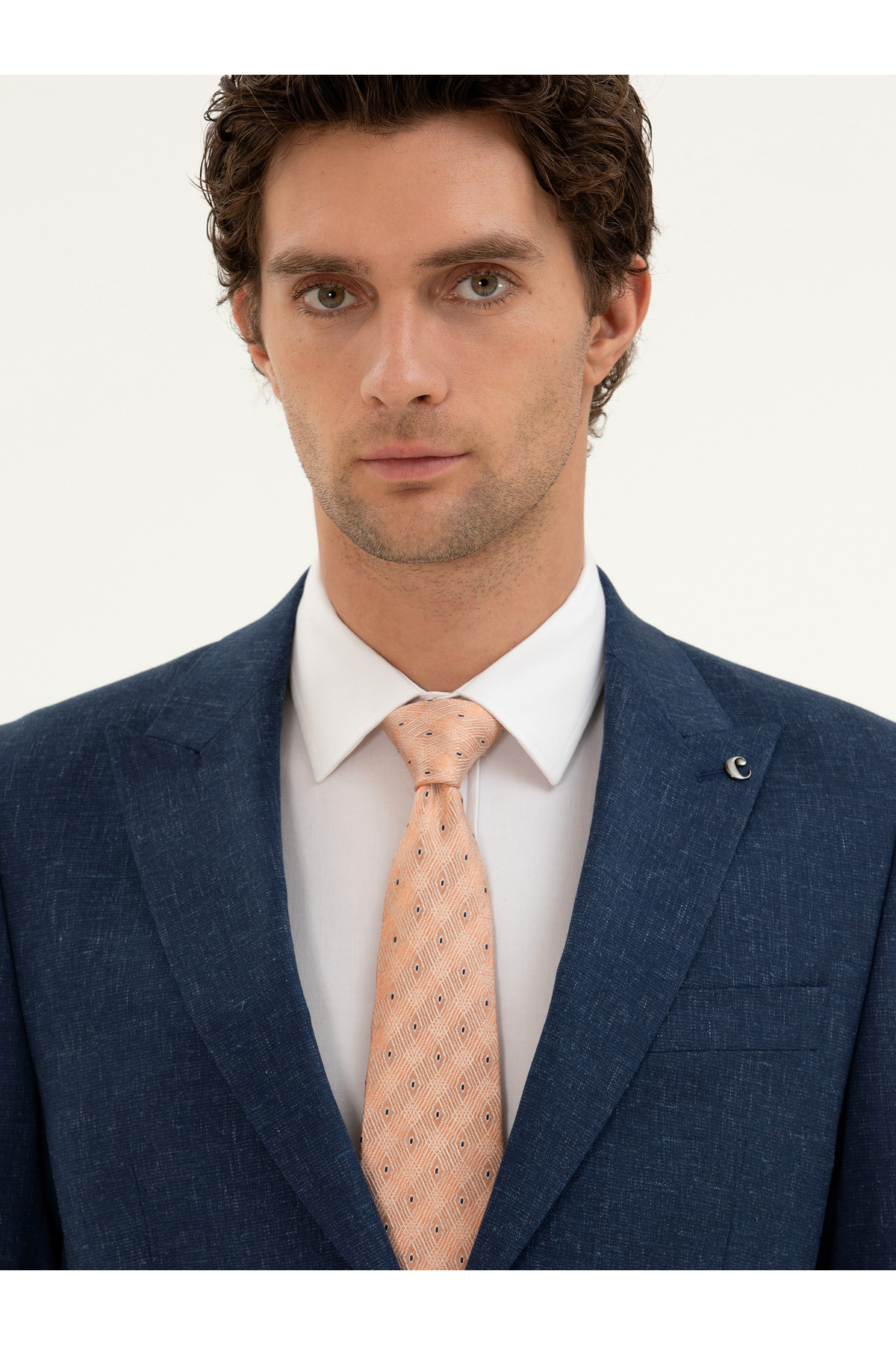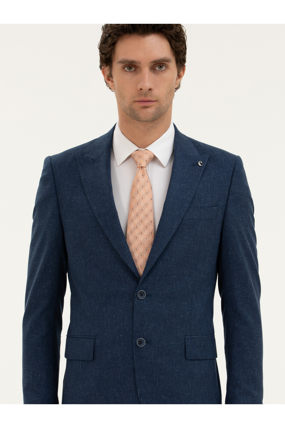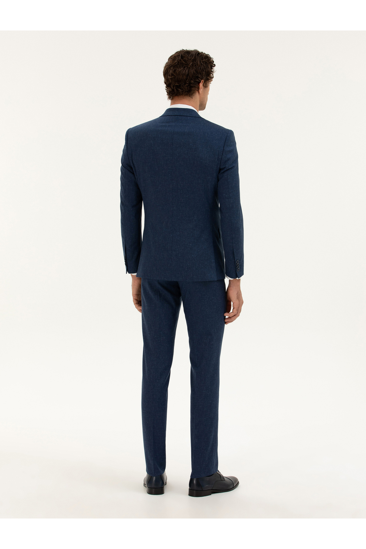 کت و شلوار کتان اسلیم فیت سرمهای ترکیبی برند کاشارل کد:(50284635-VR033)