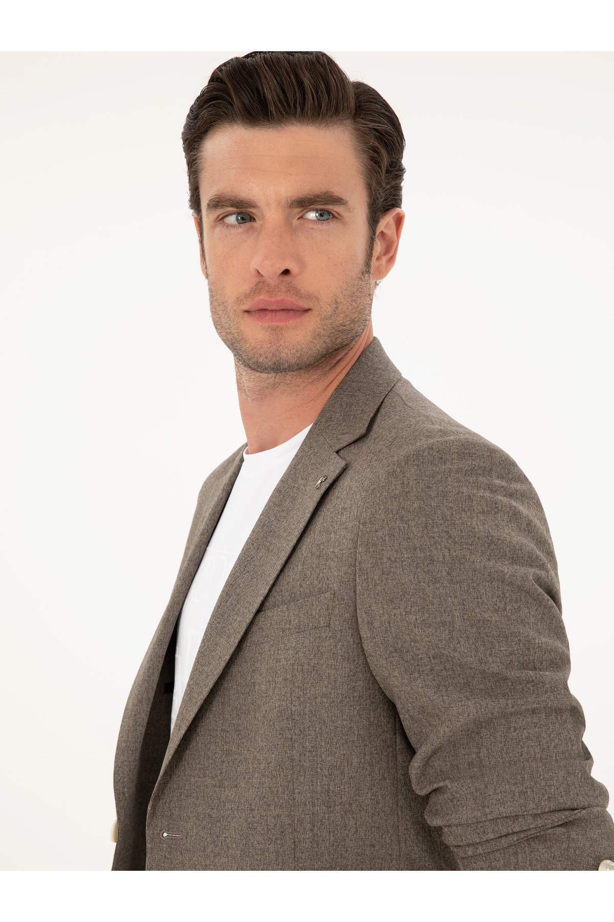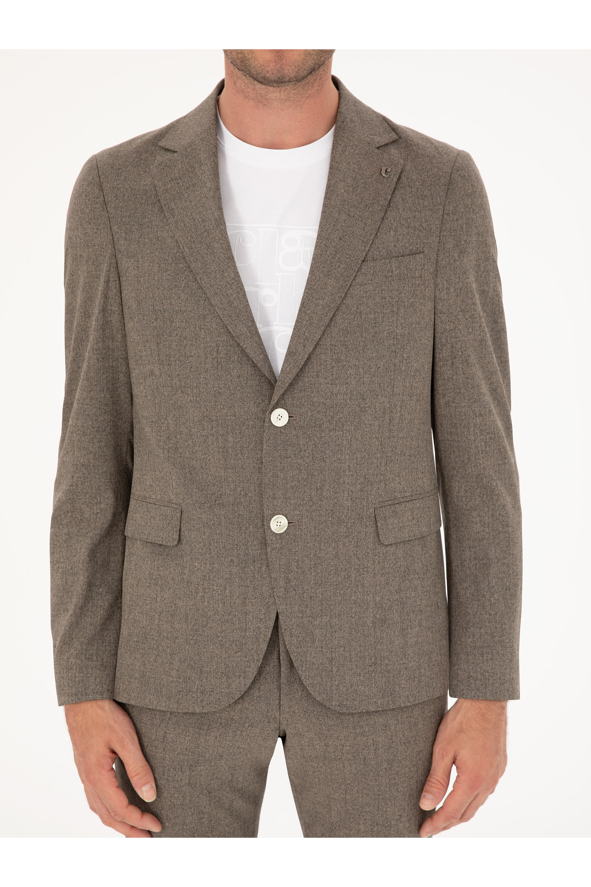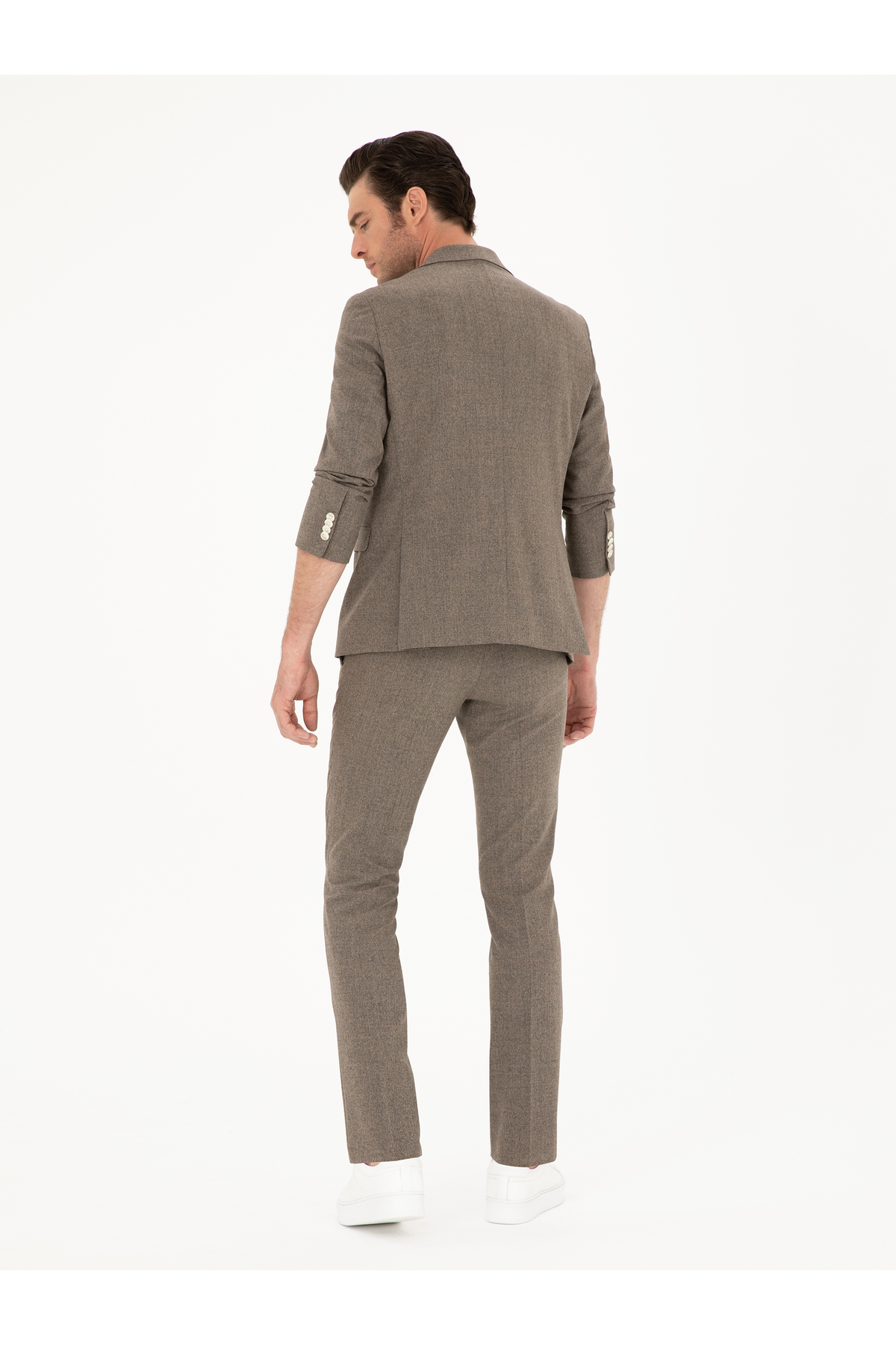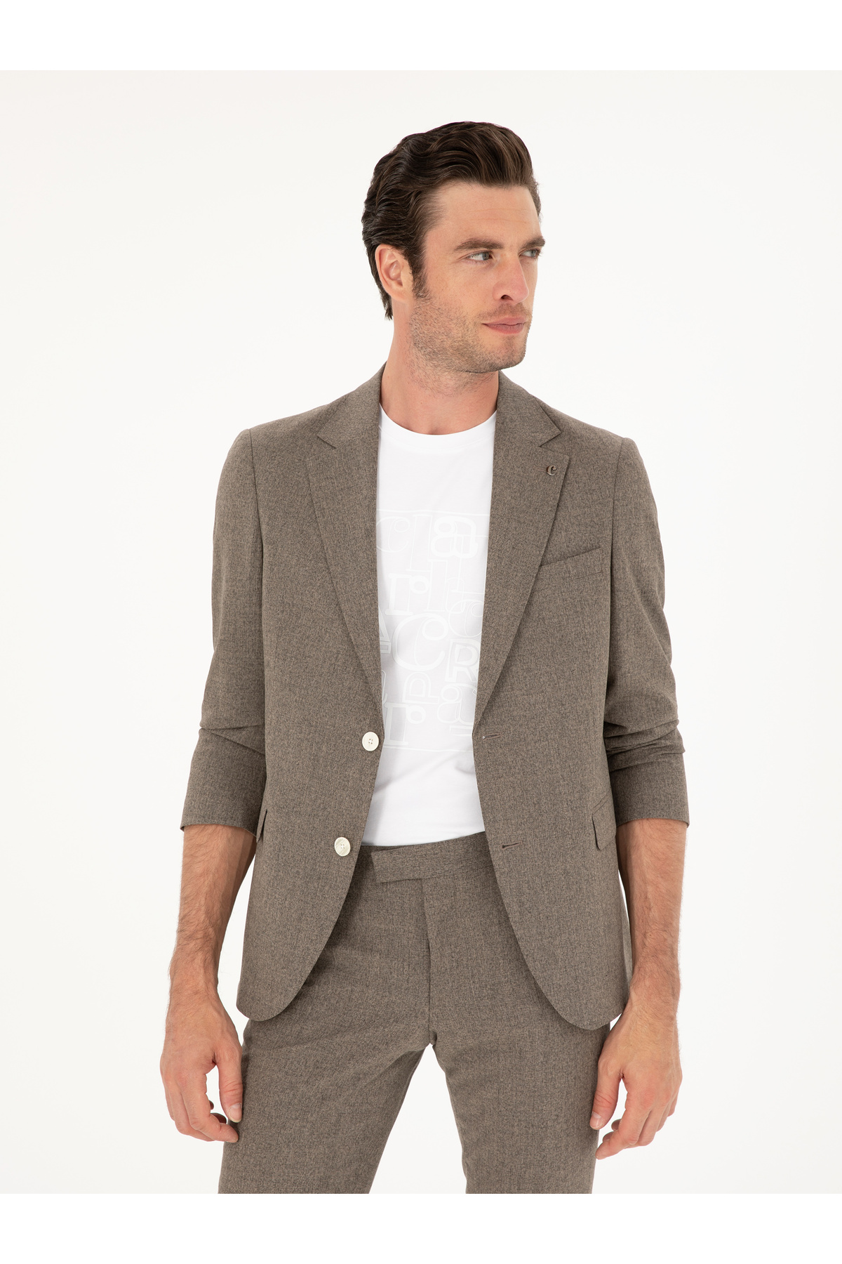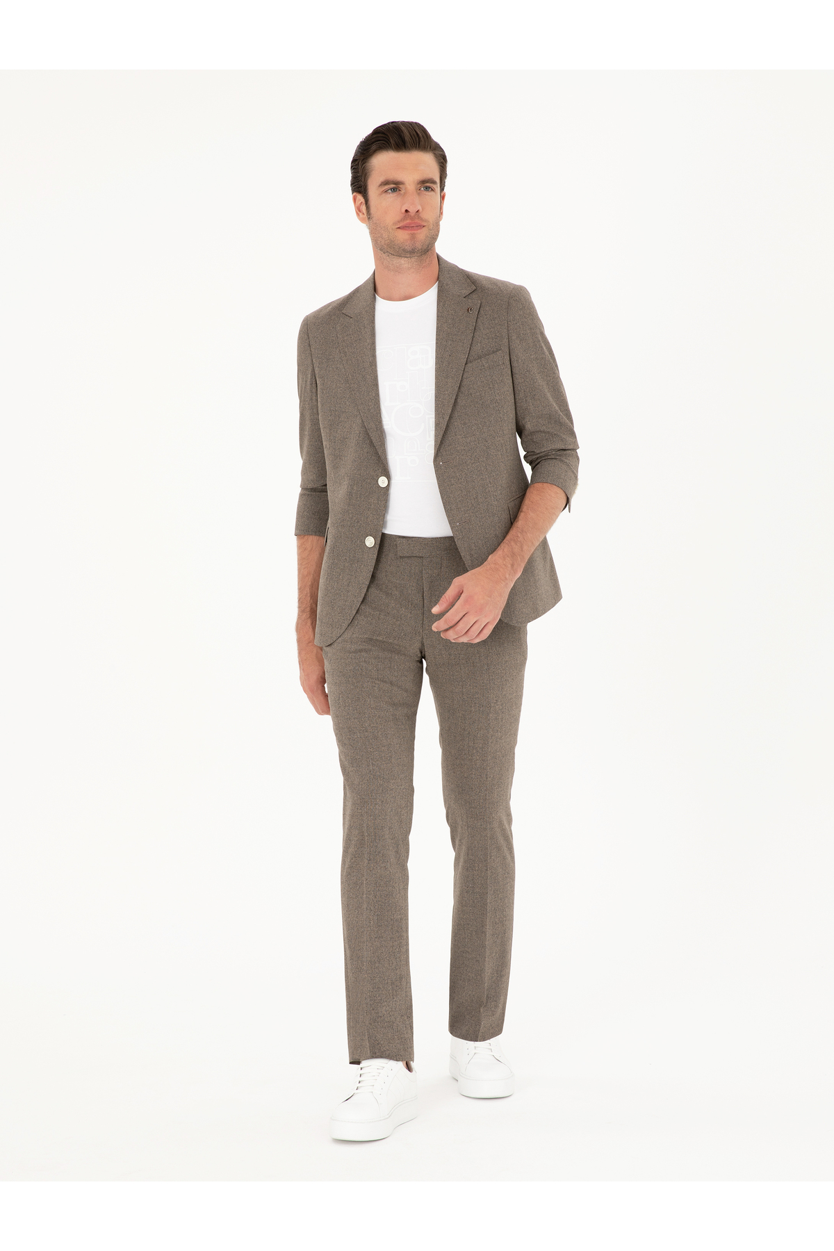 کت و شلوار پشمی قهوهای اسلیم فیت طرح ترکیبی برند کاشارل کد:(50284890-VR029)