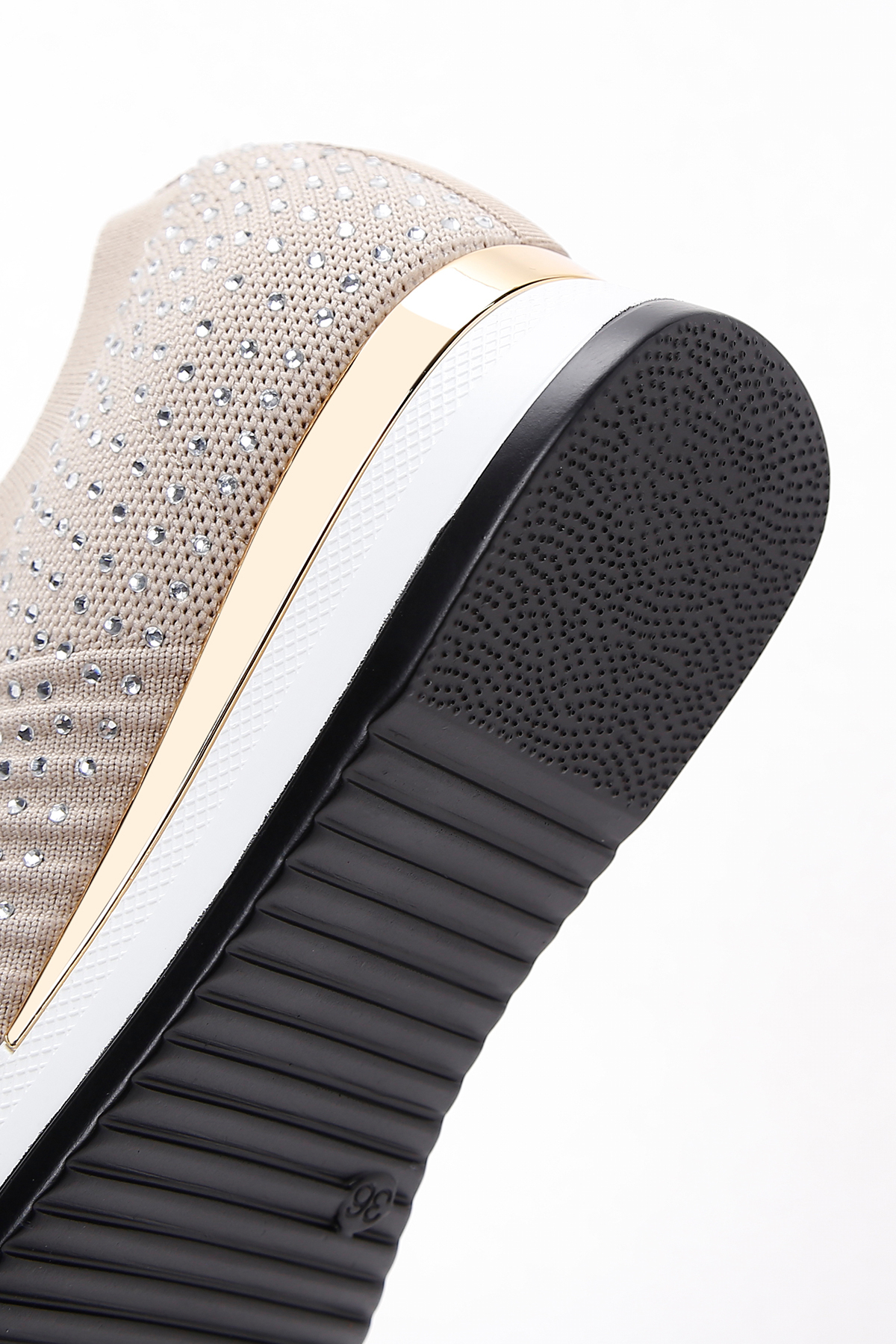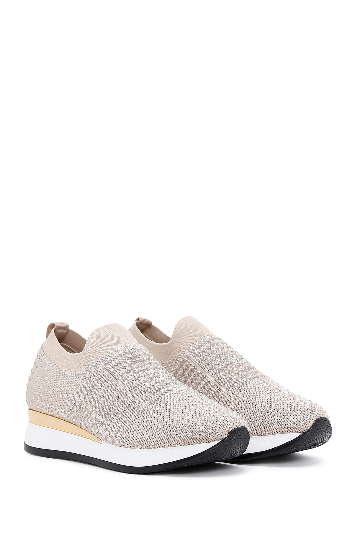 کفش کتانی زنانه Zero با کفی ضخیم و سنگ مصنوعی بژ، کد 25SFD43006F