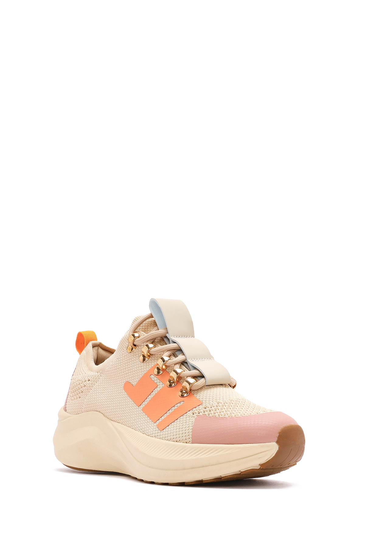 کفش کتانی زنانه زیرو، بژ، کف ضخیم، توری، پارچهای، کد 25SFD43166F
