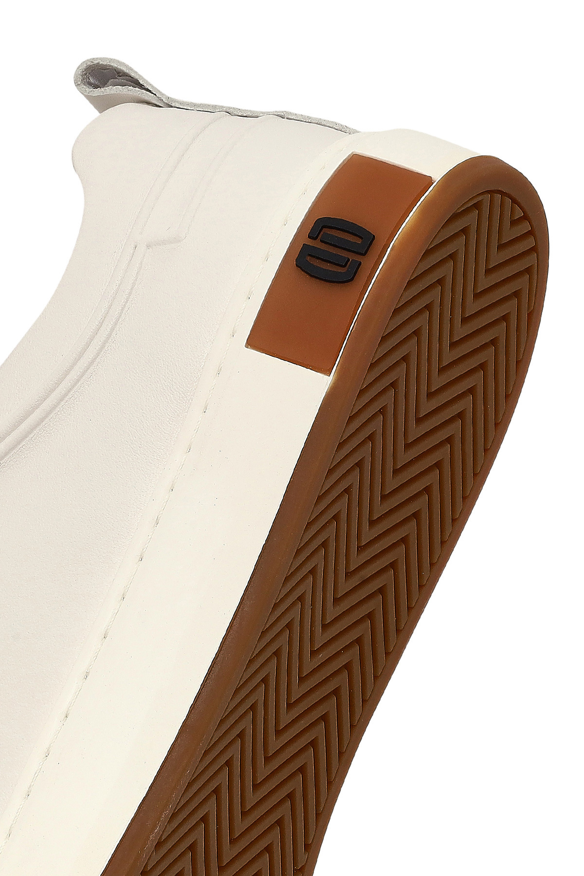 کفش کتانی مردانه چرم بنددار سفید حاوی چرم گاوی است.