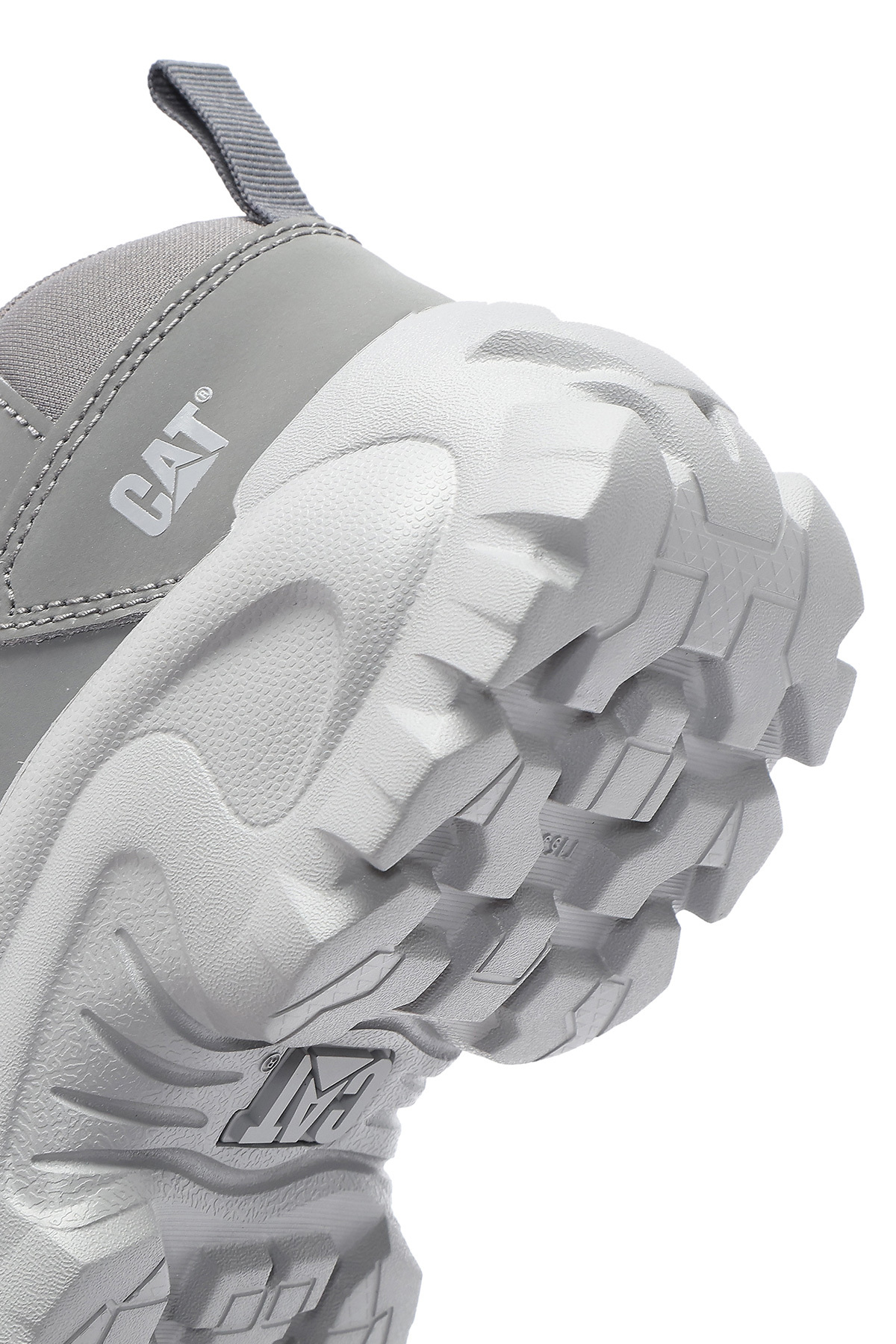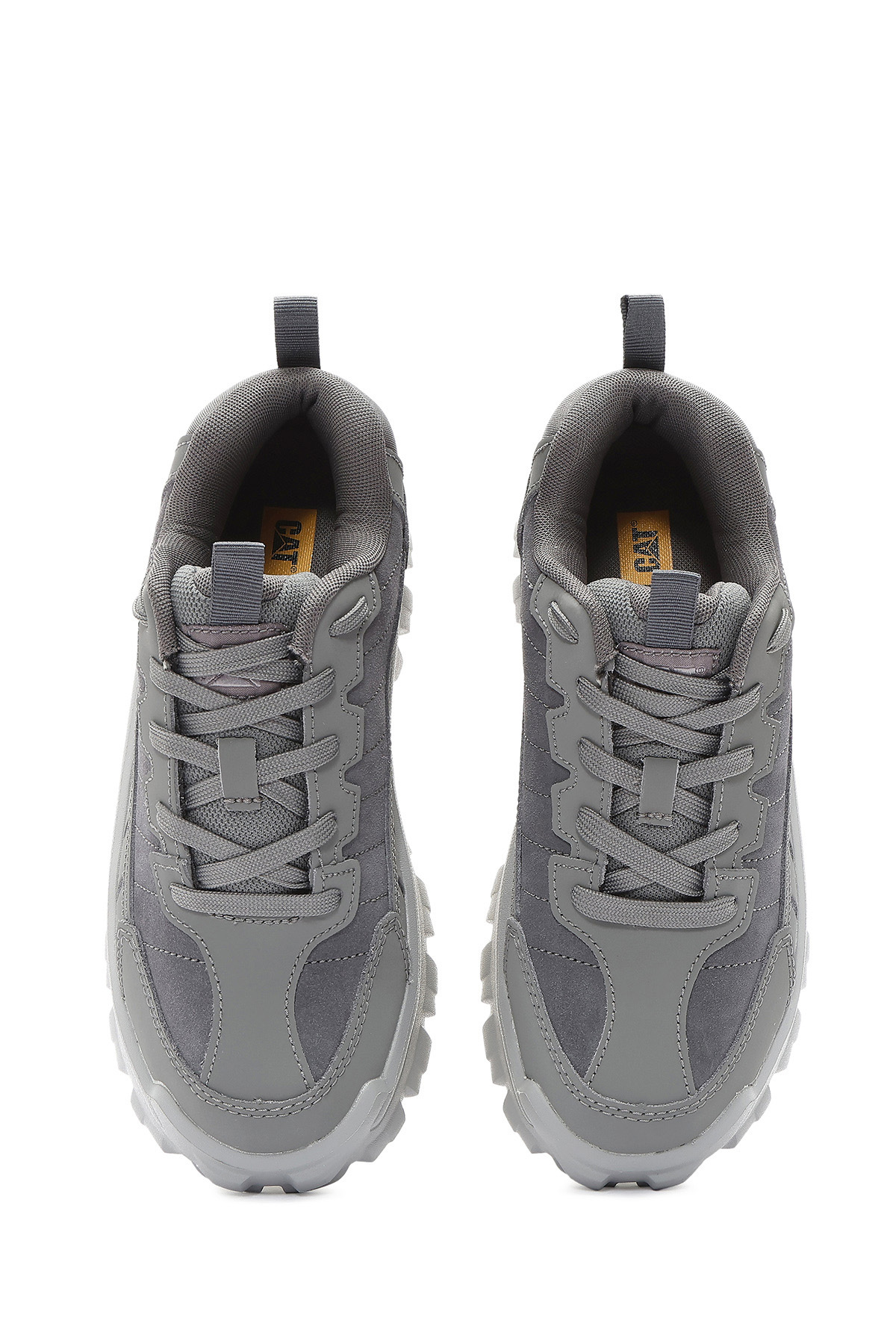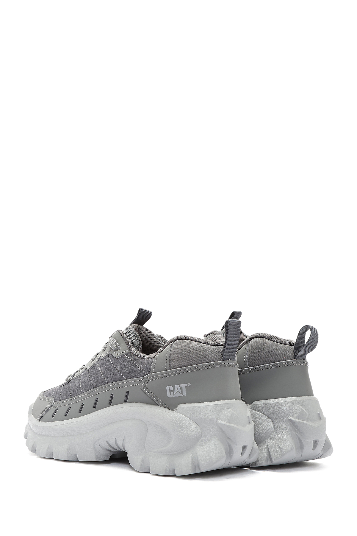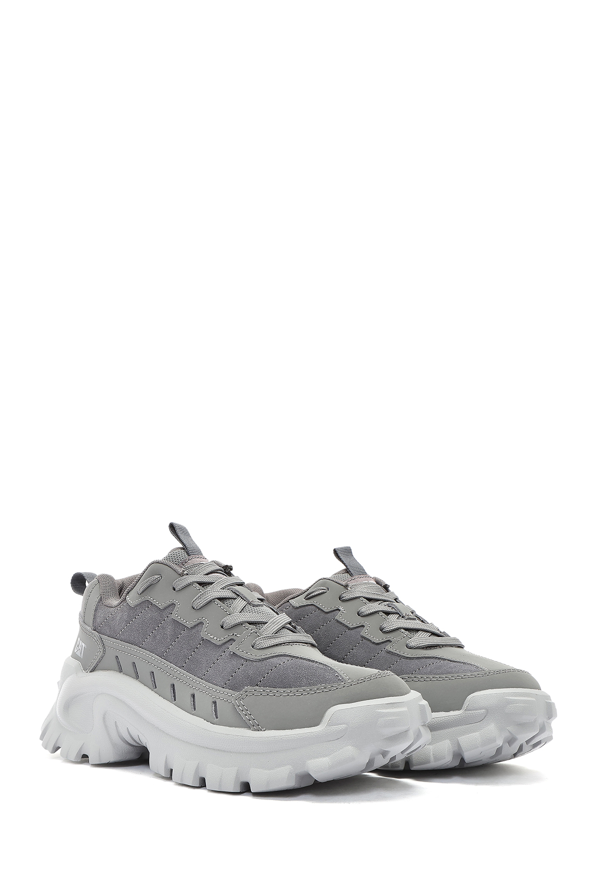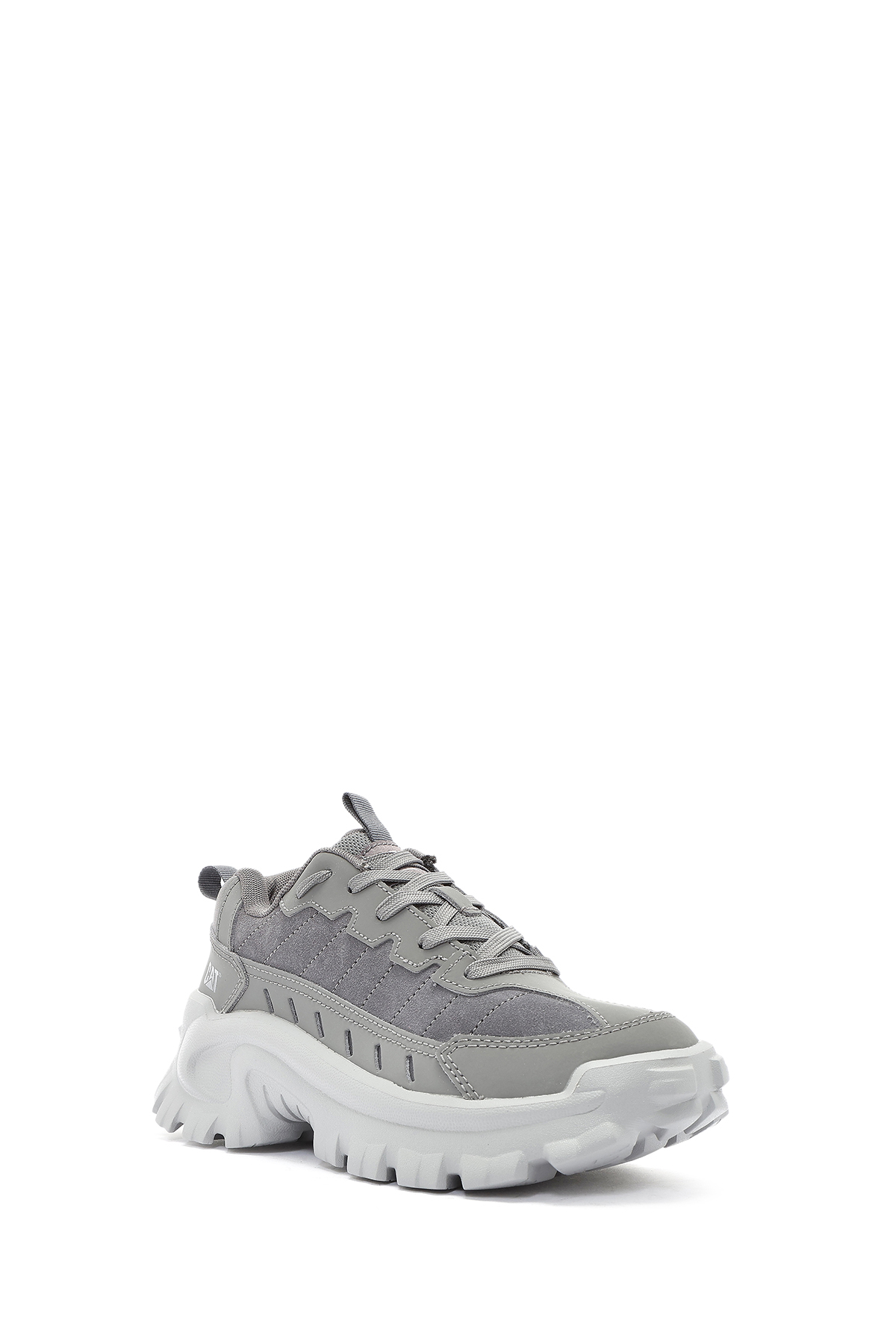 کفش کتانی مردانه کاترپیلار مدل Intruder Essential Lace-Up Leather Chunky به رنگ خاکستری، دارای چرم گاوی است.
