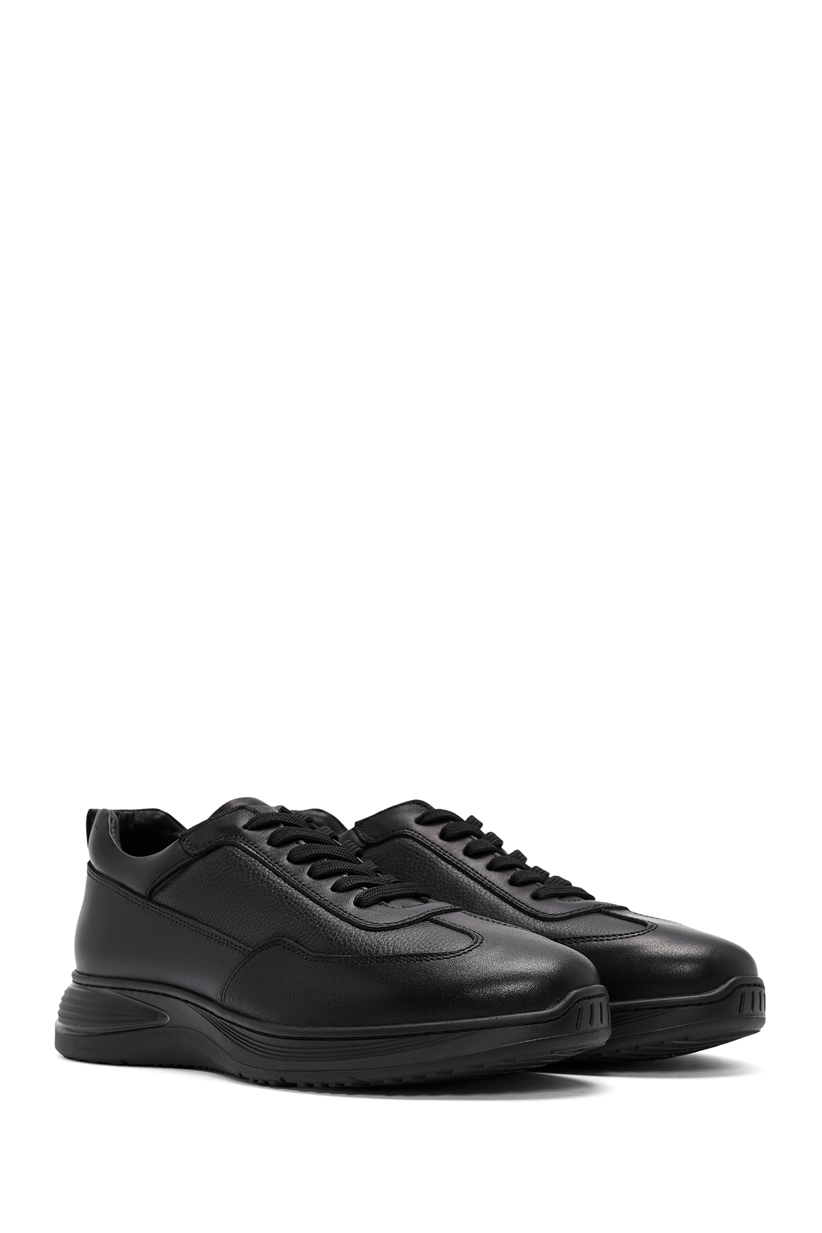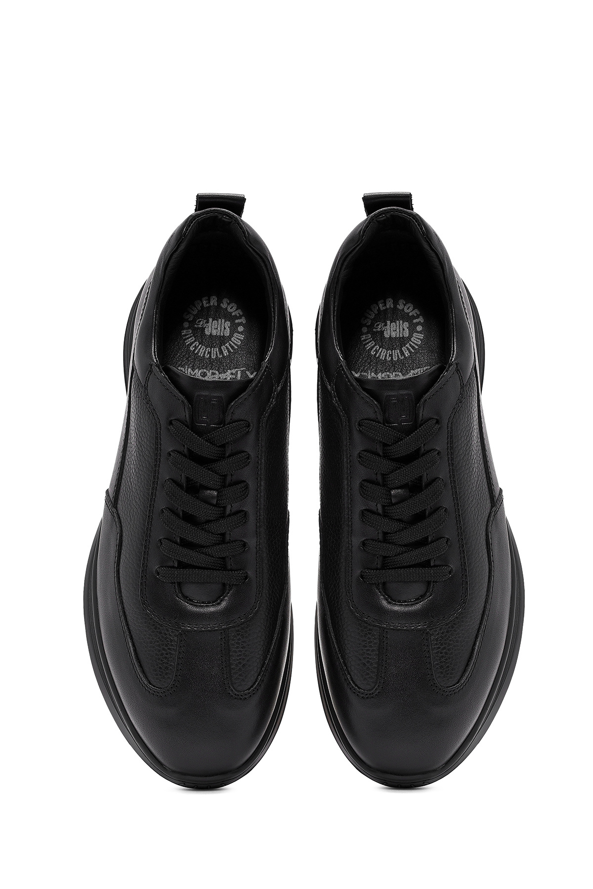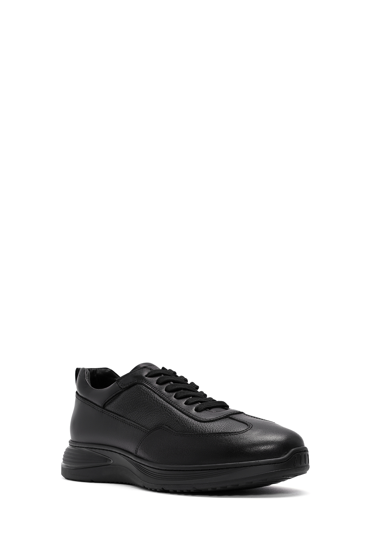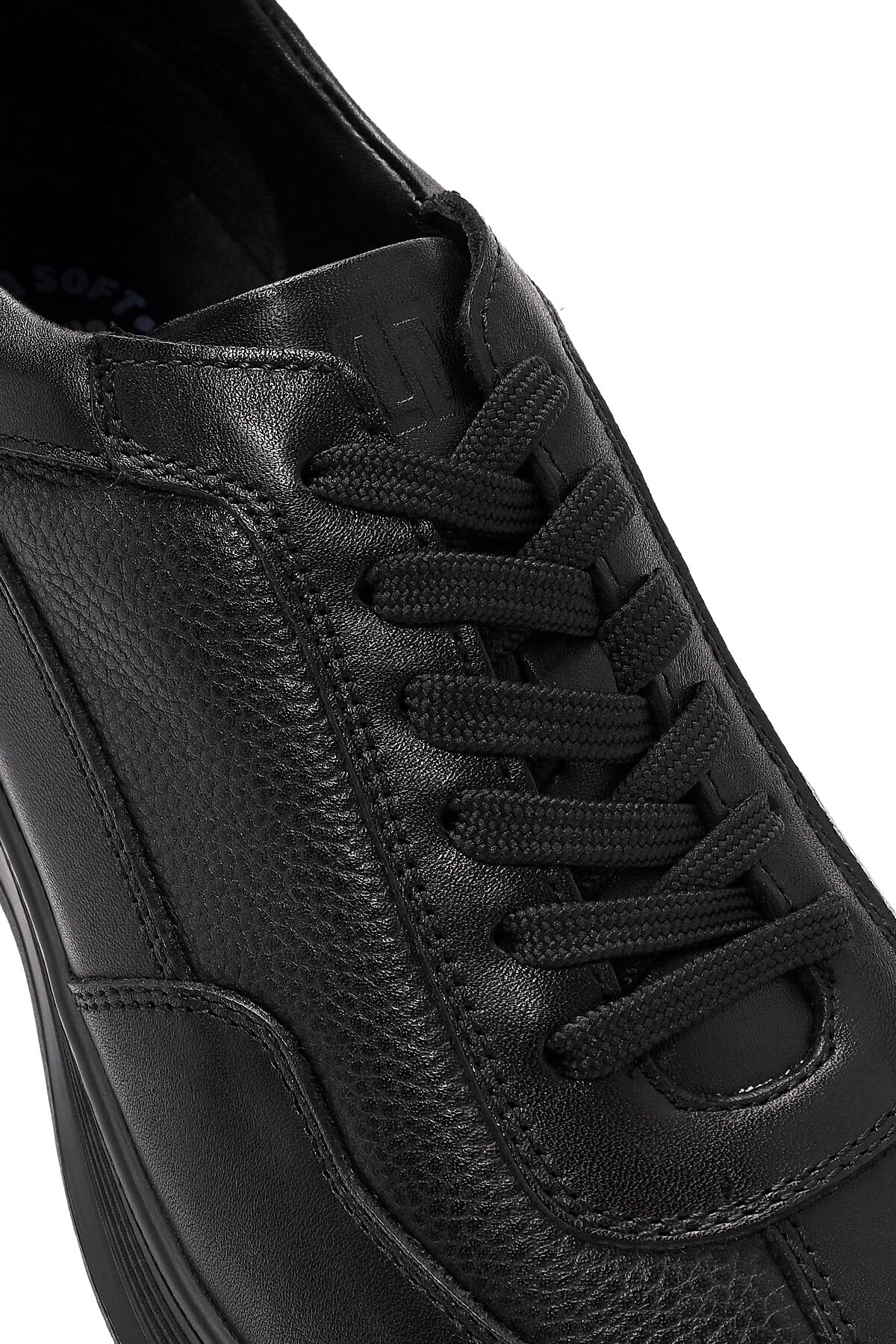 کفش کتانی مردانه چرم طبیعی مشکی بنددار کد ۲۴WFD۶۷۶۹۱۴