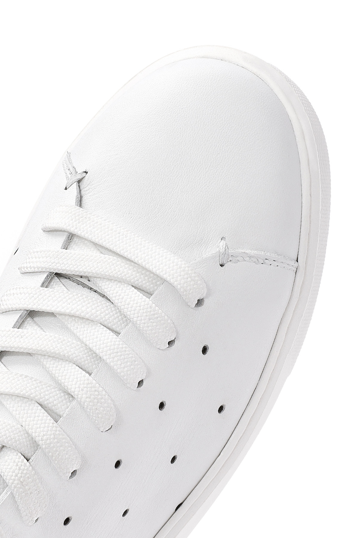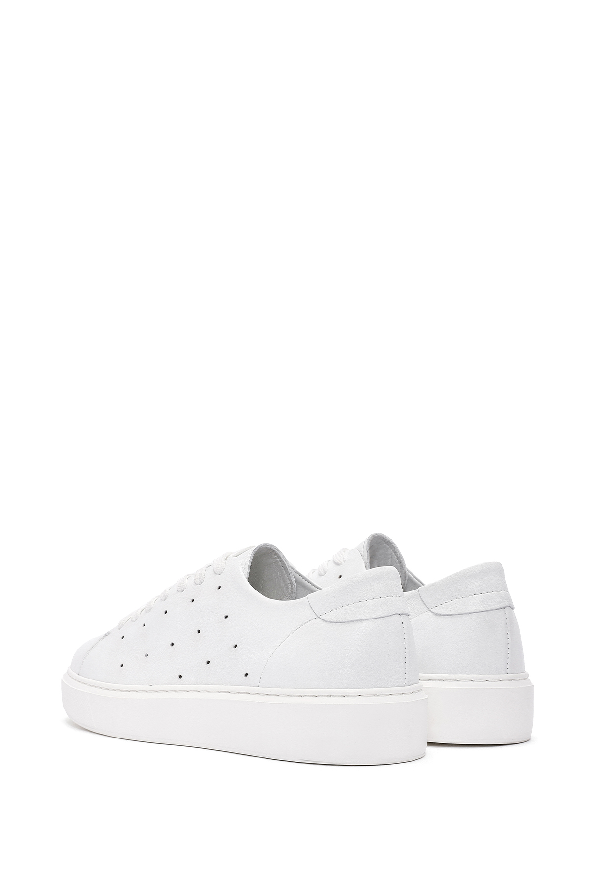 کفش کتانی مردانه چرم سفید بنددار با کفی ضخیم، دارای چرم گاوی.