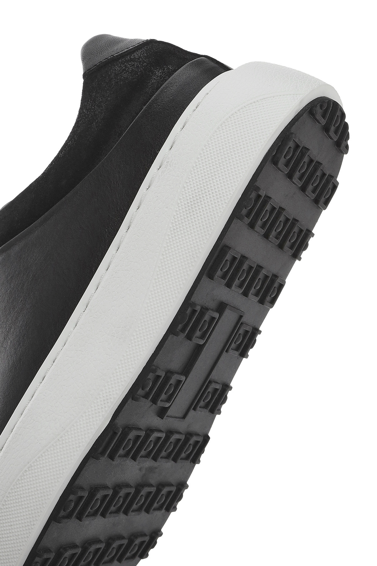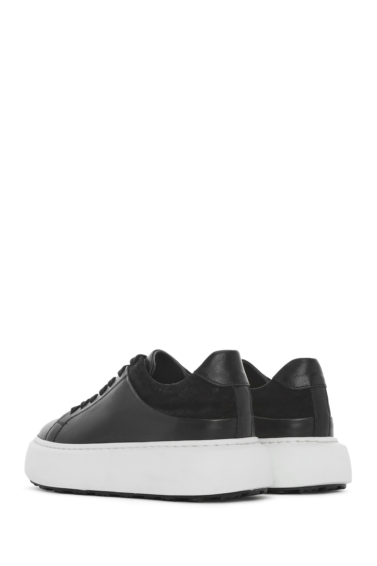 این کفش کتانی مردانه مشکی بنددار و چرمی با کفی ضخیم، دارای چرم گاوی است.
