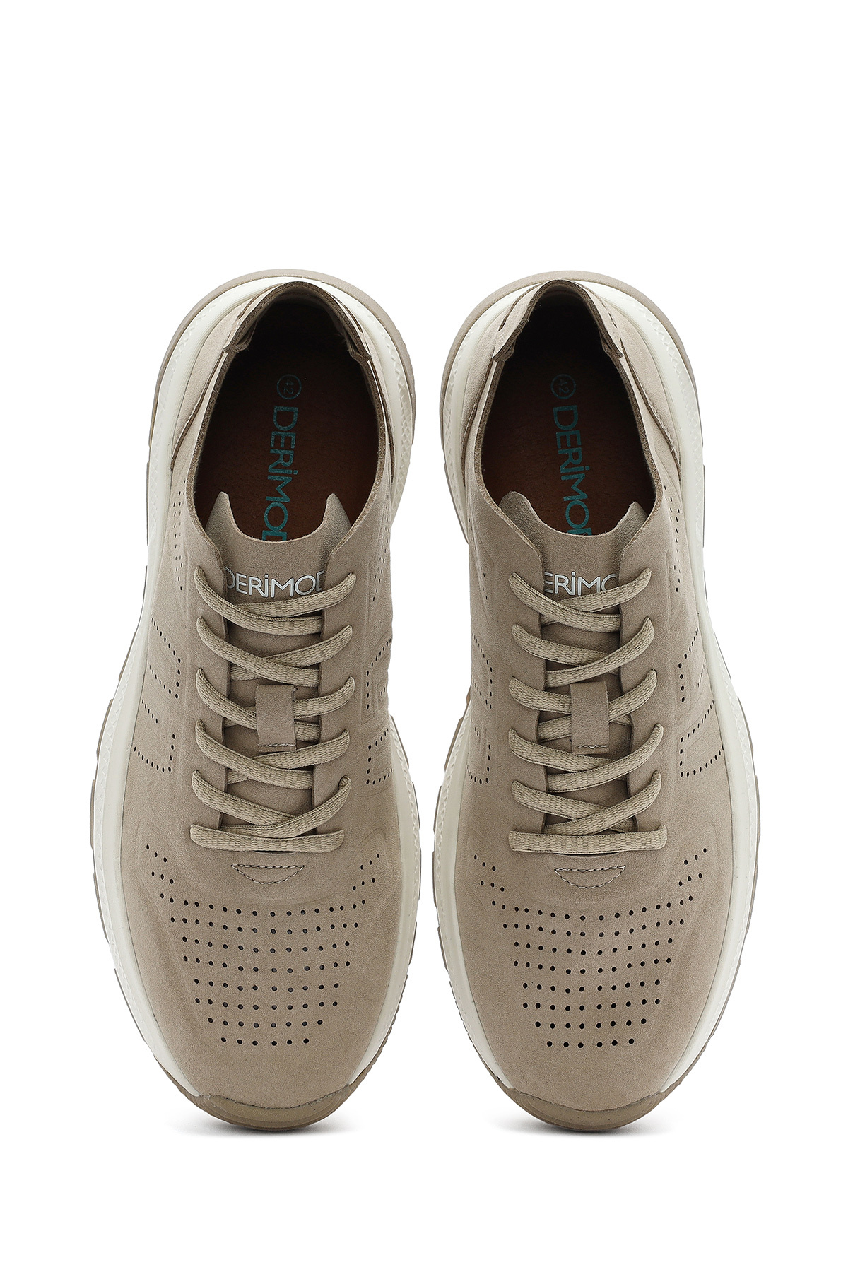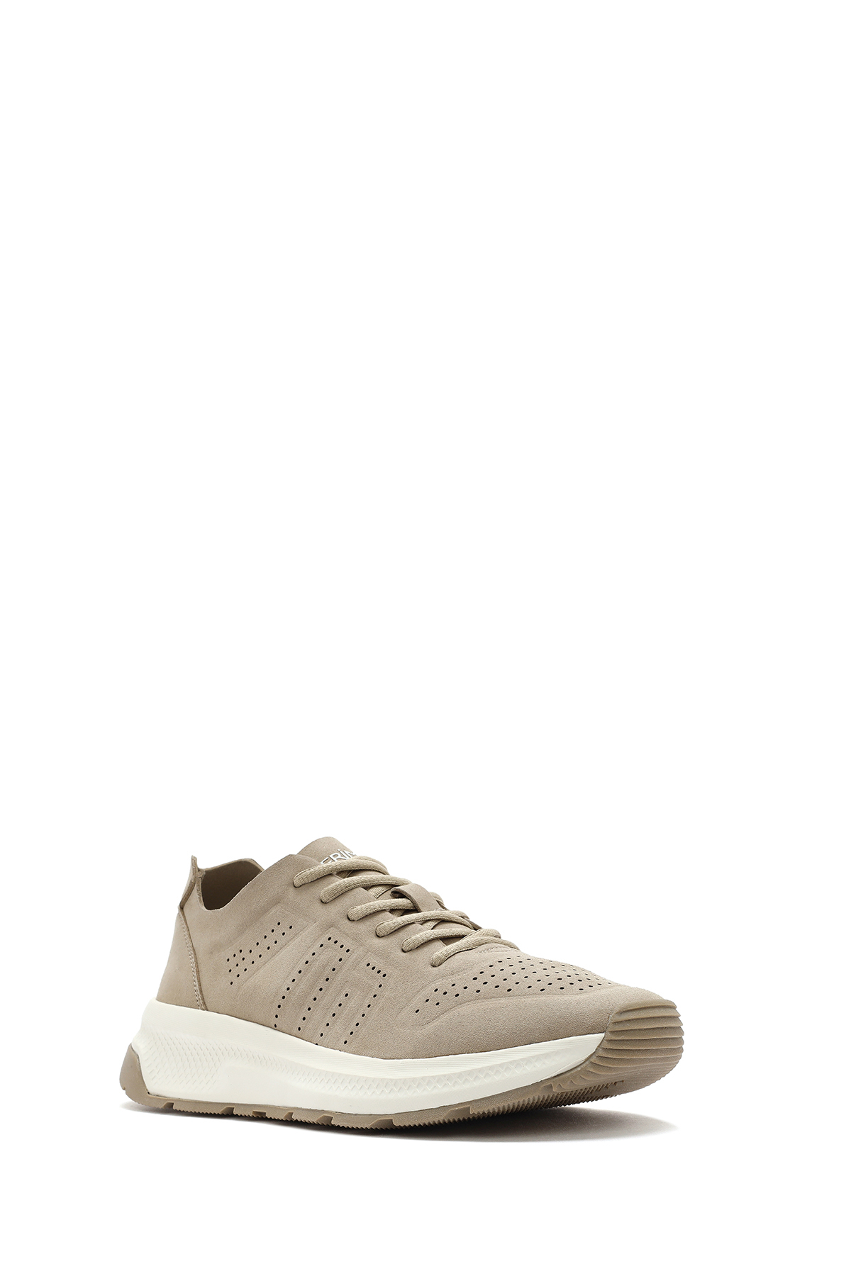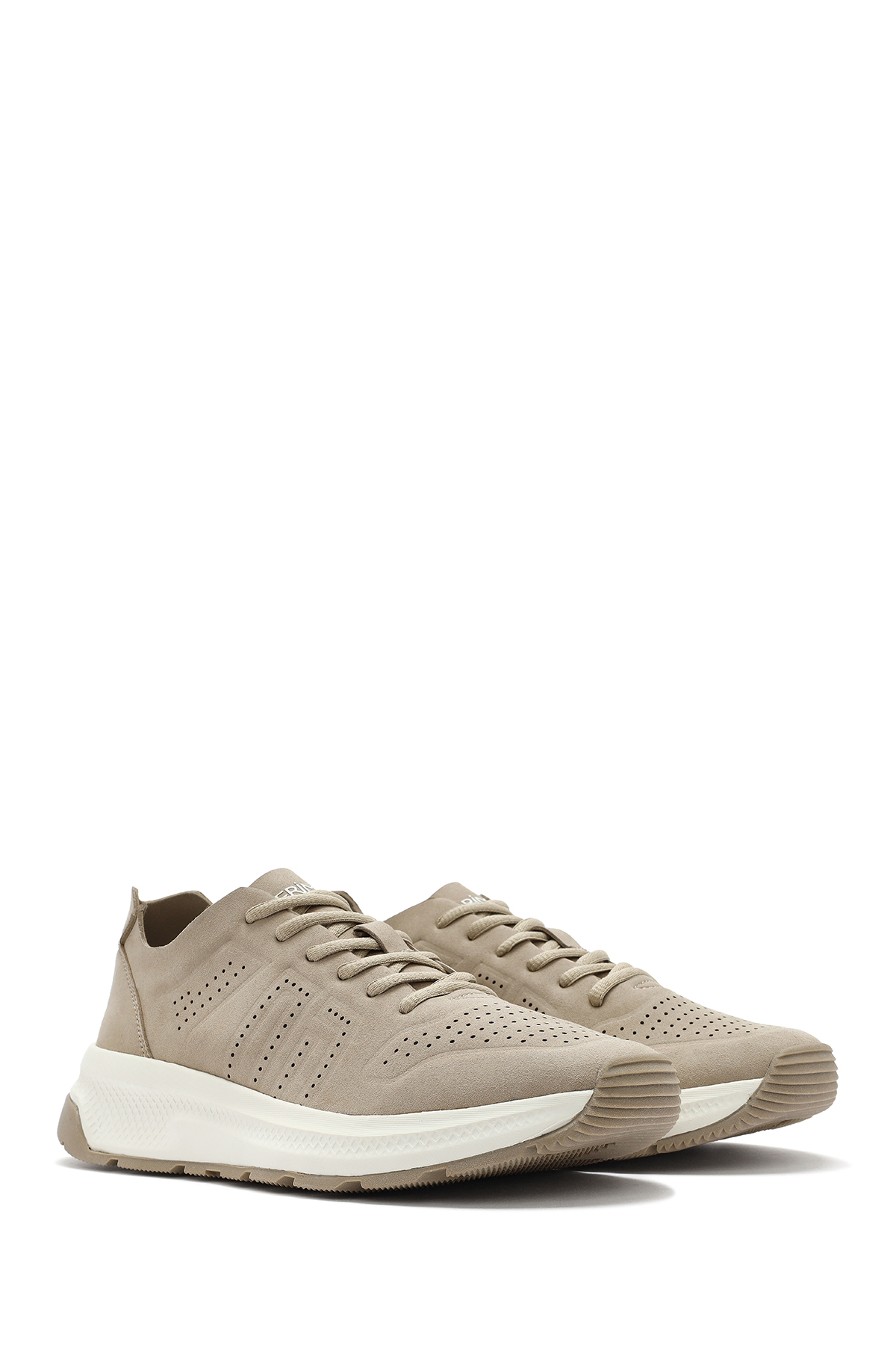 کفش کتانی مردانه چرم نبوک بنددار بژ کد 25SFD7600V3