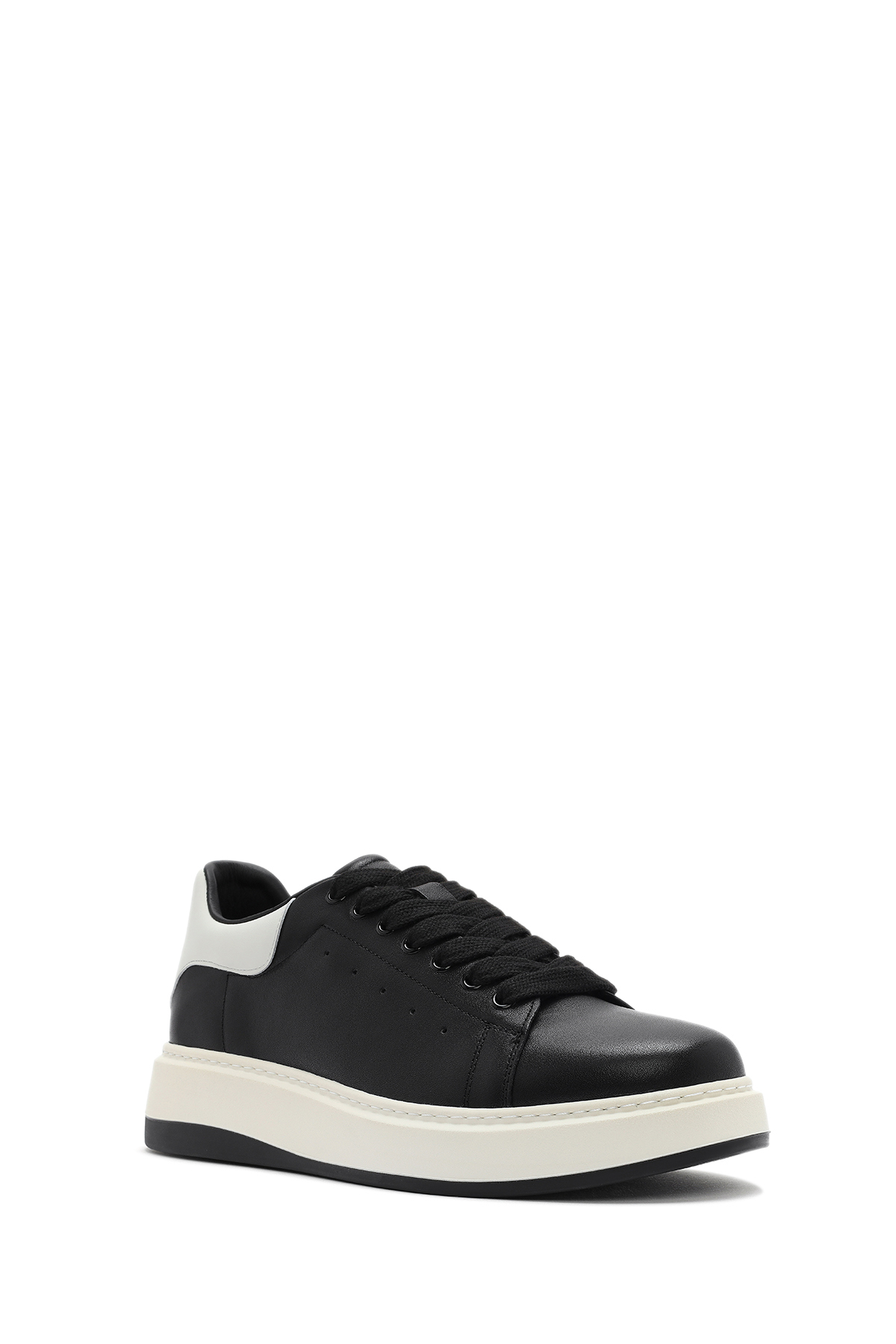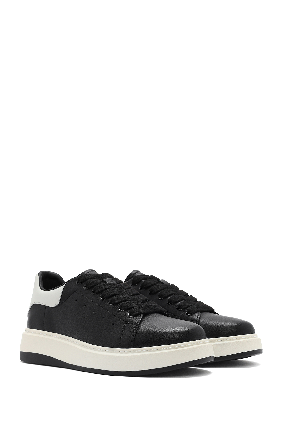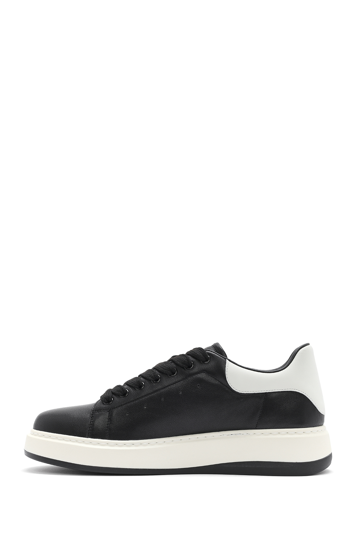 کفش کتانی مردانه چرم مشکی بنددار 25SFD691818
