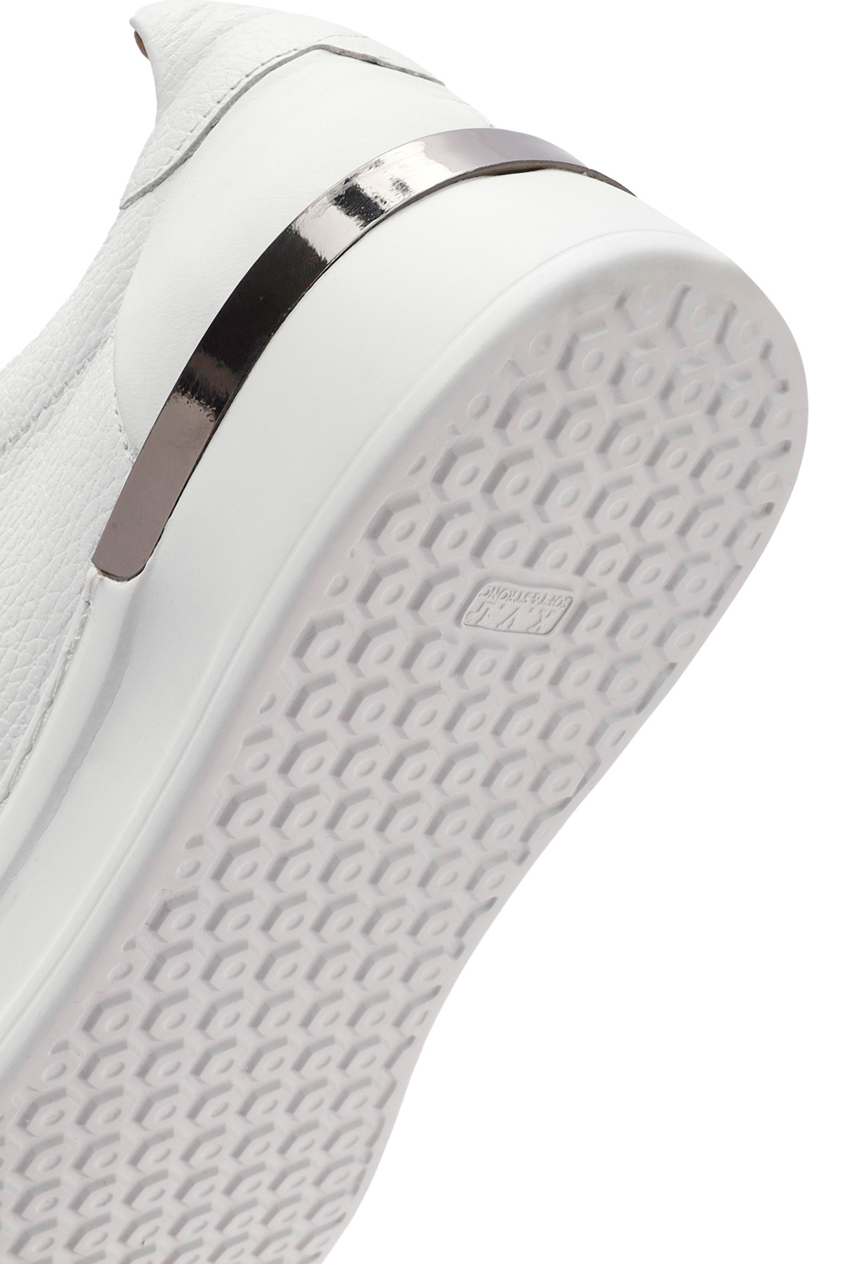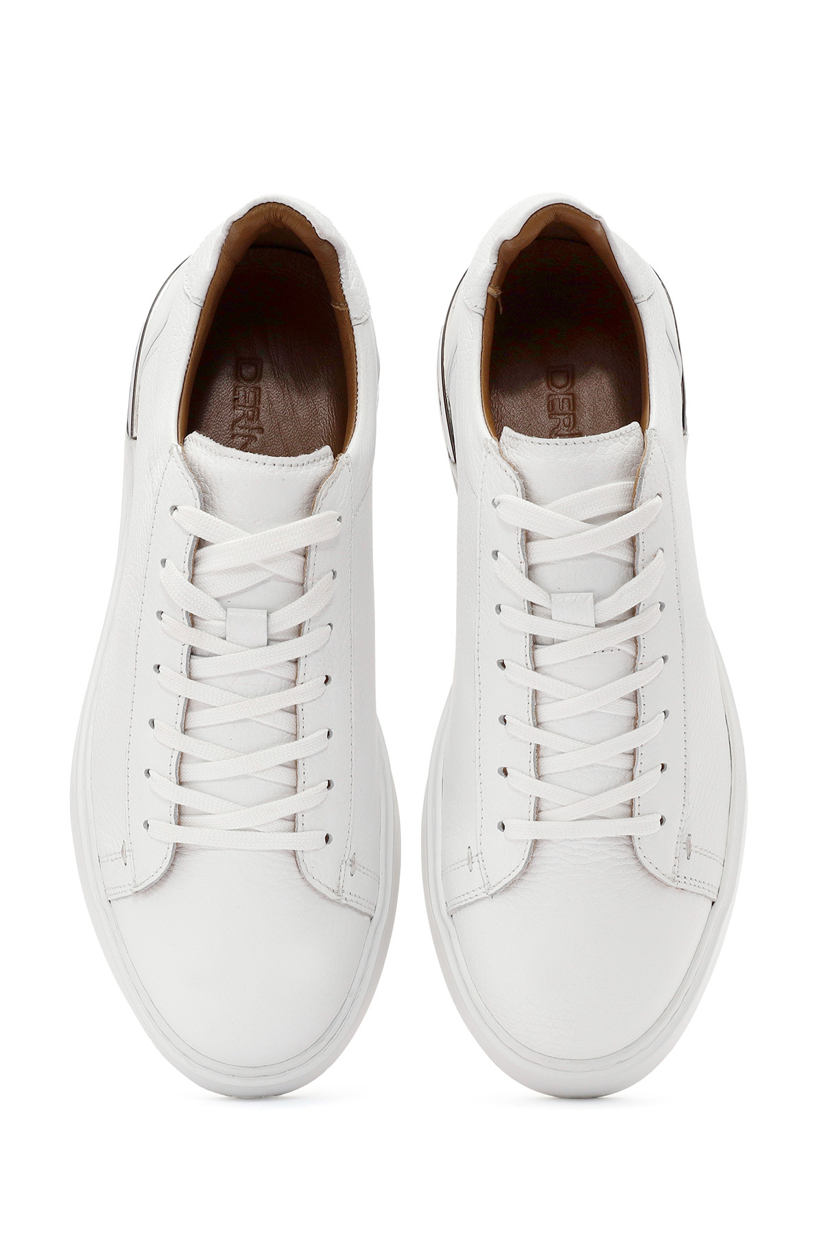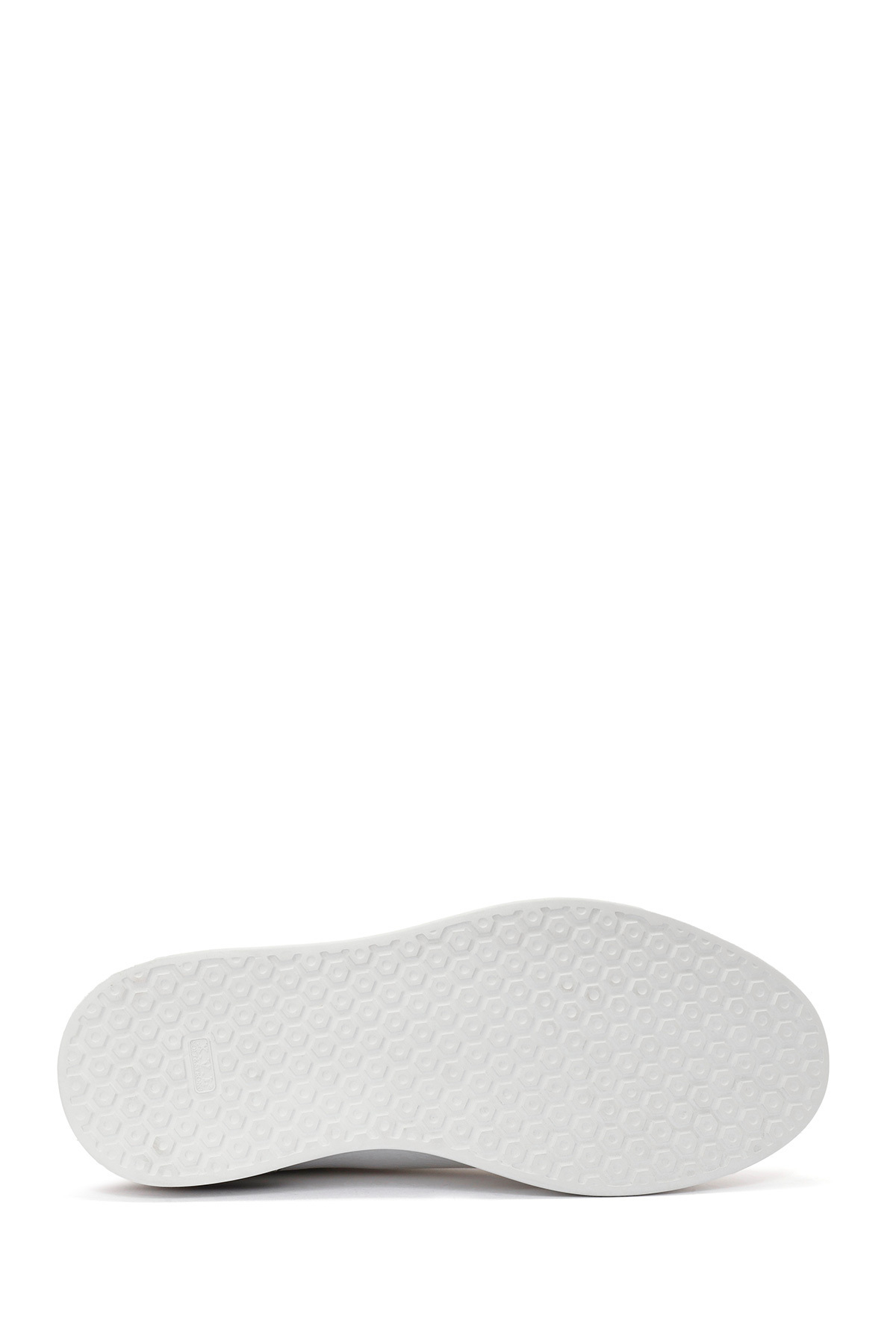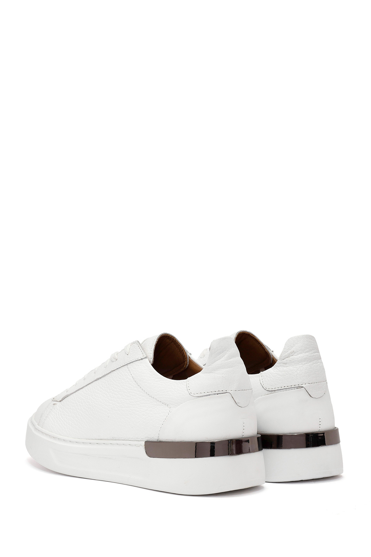 کفش کتانی مردانه چرم سفید بنددار با کفی ضخیم، دارای چرم گاوی.