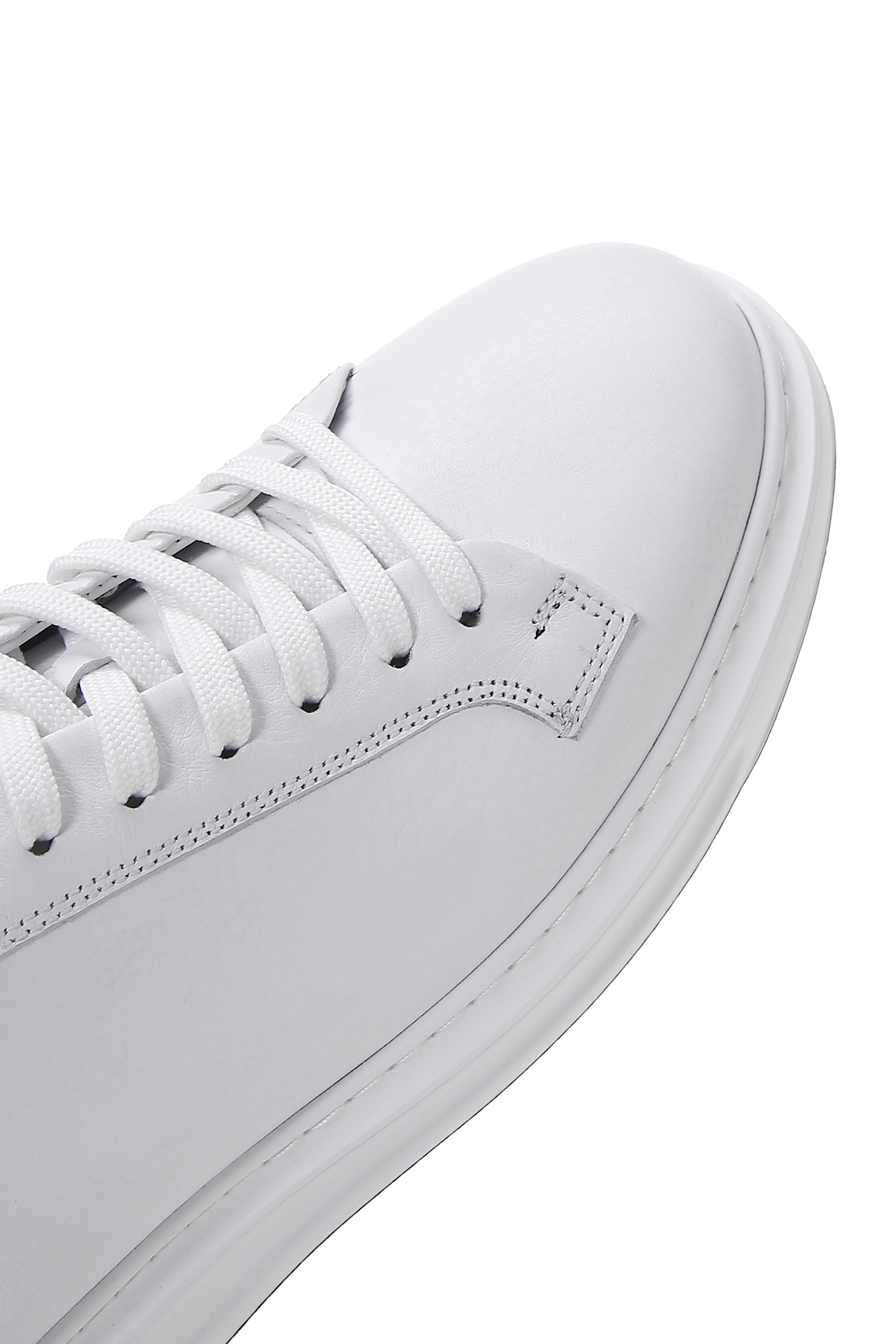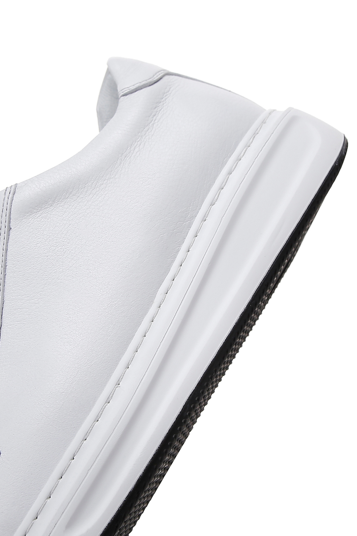 کفش کتانی مردانه چرم بنددار سفید حاوی چرم گاوی است.
