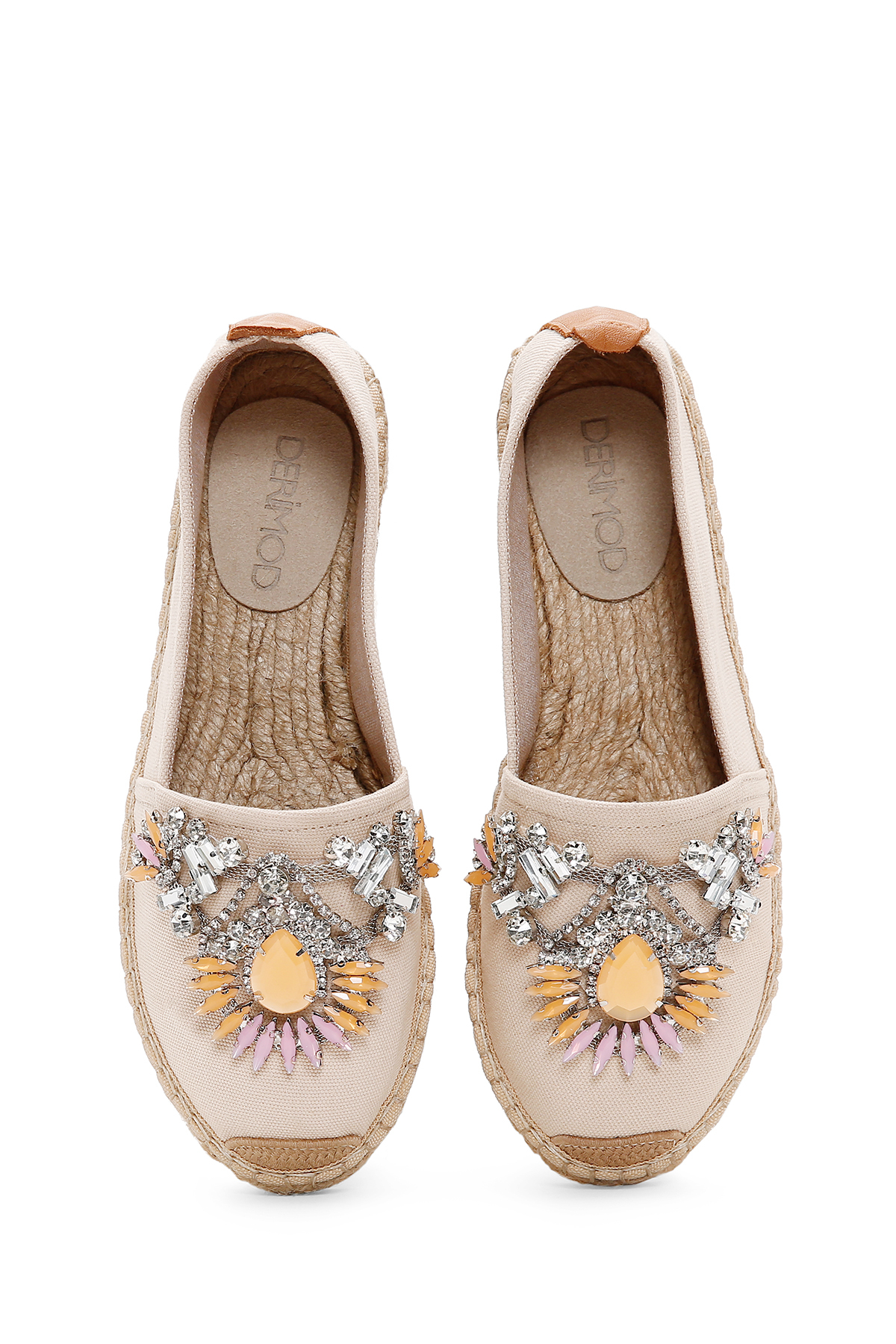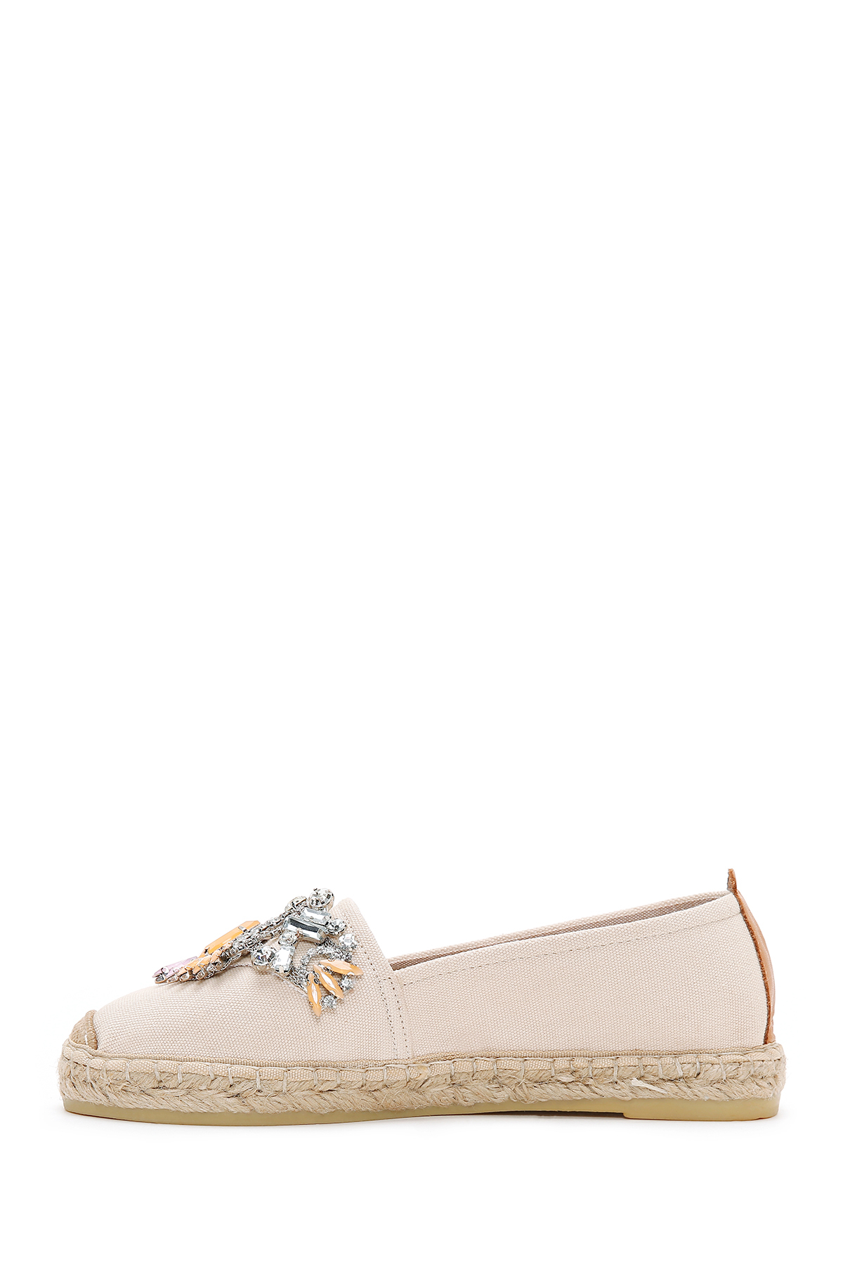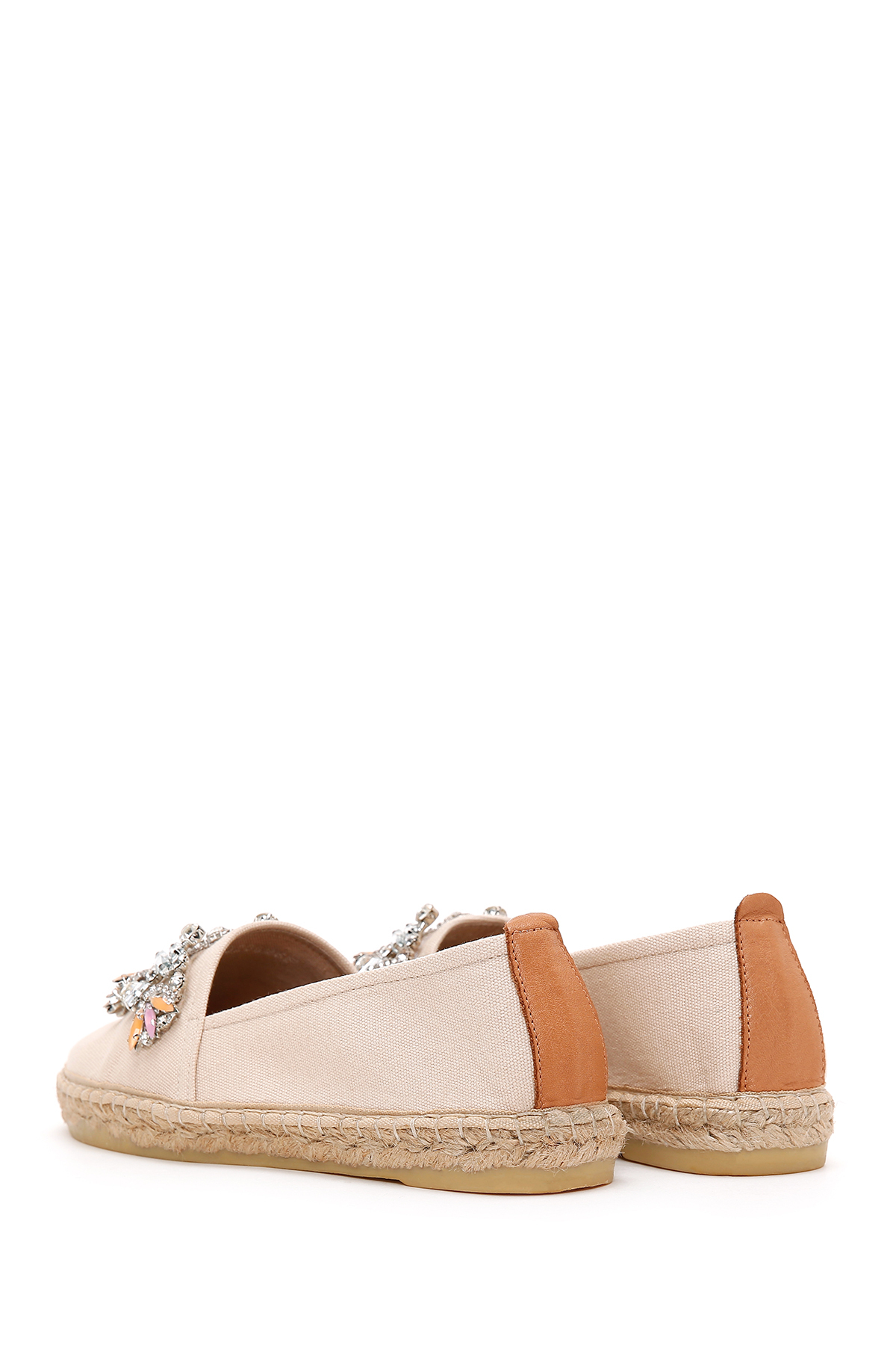 کفشهای چرمی زنانه بژ با تزئینات سنگی 25SFD20546F
