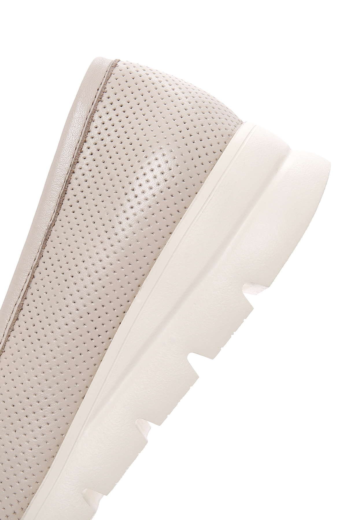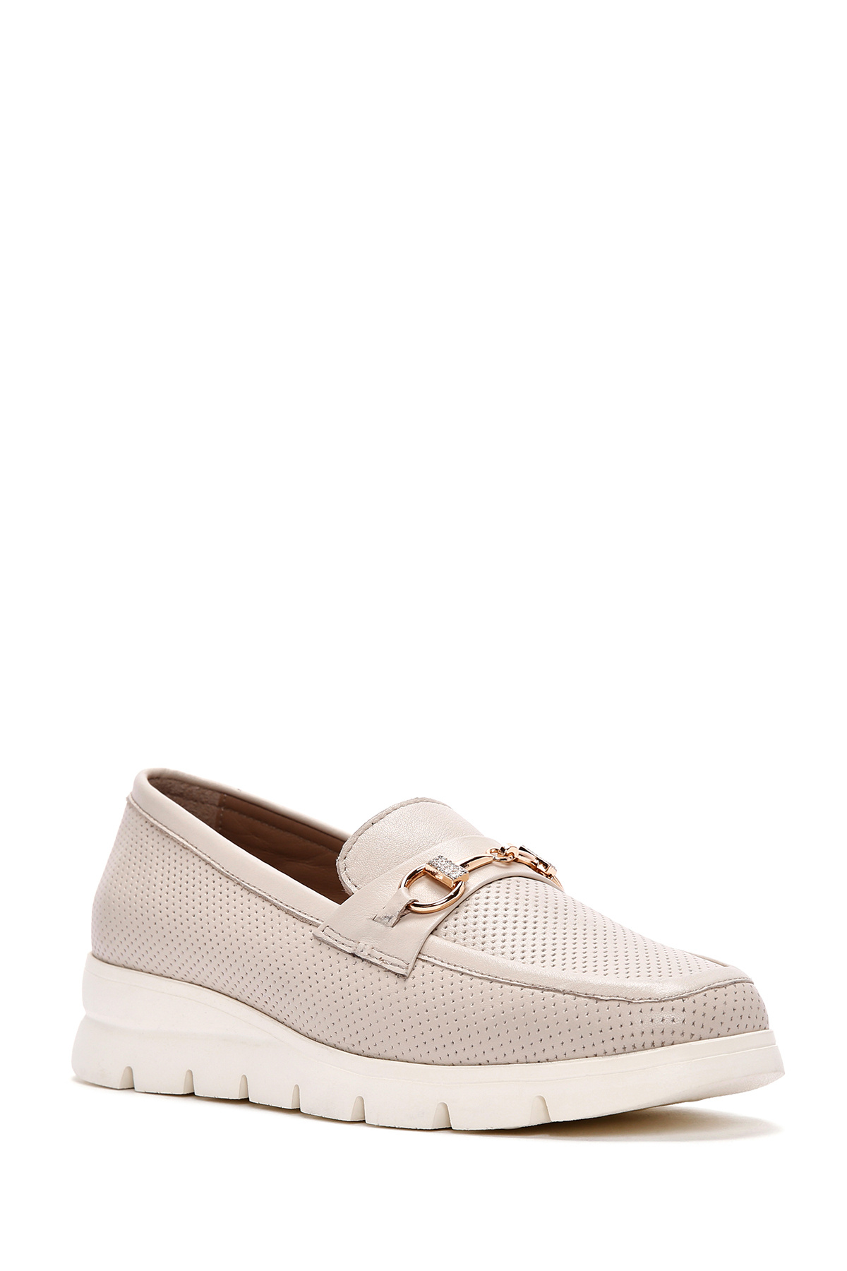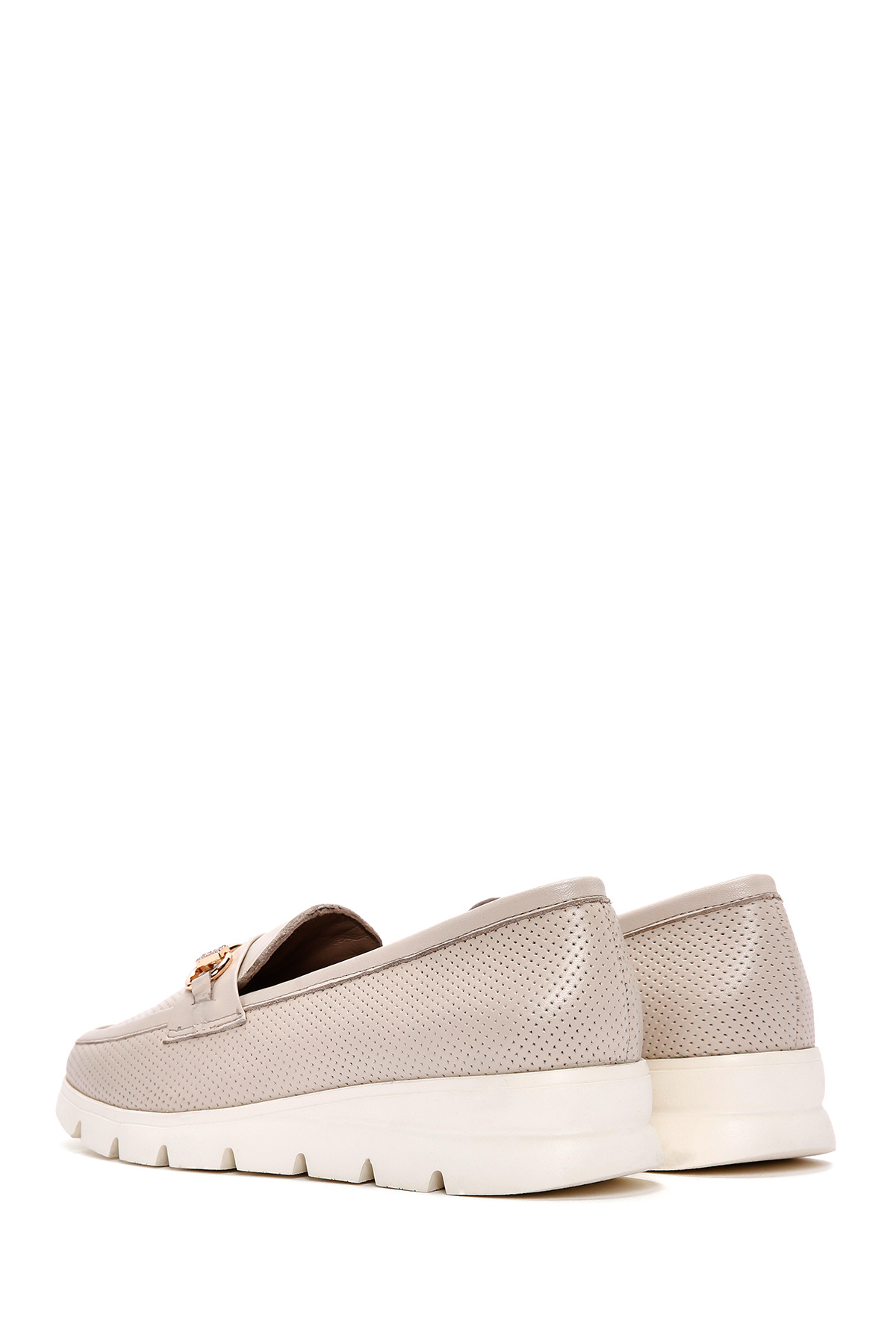 کفش راحتی زنانه چرم مدل لژدار سگک دار به رنگ کرم، از چرم گاوی ساخته شده است.
