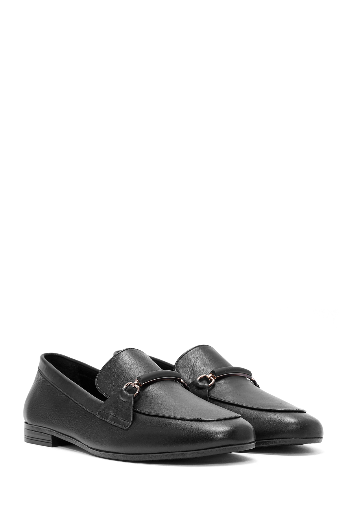 کفش راحتی مردانه چرم مشکی زنانه با جزئیات سگکدار