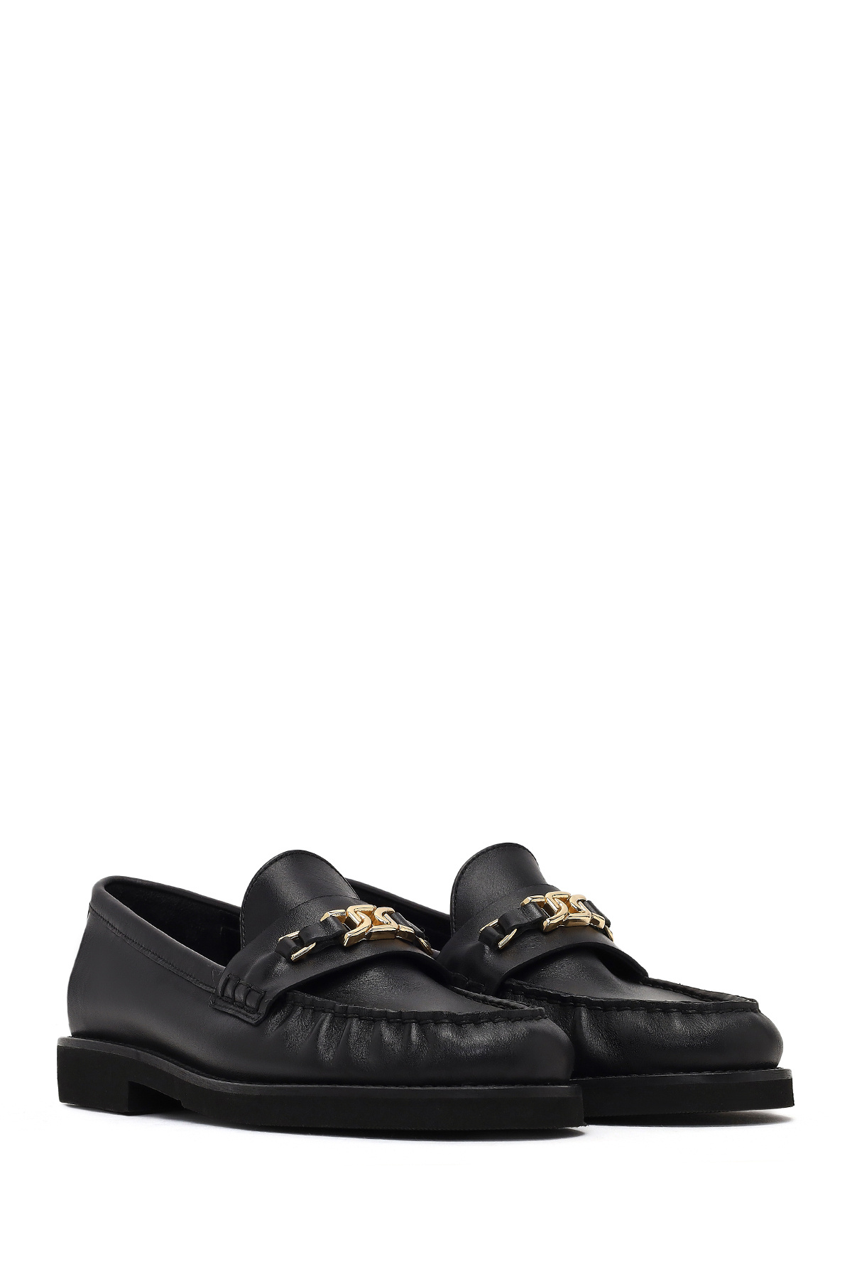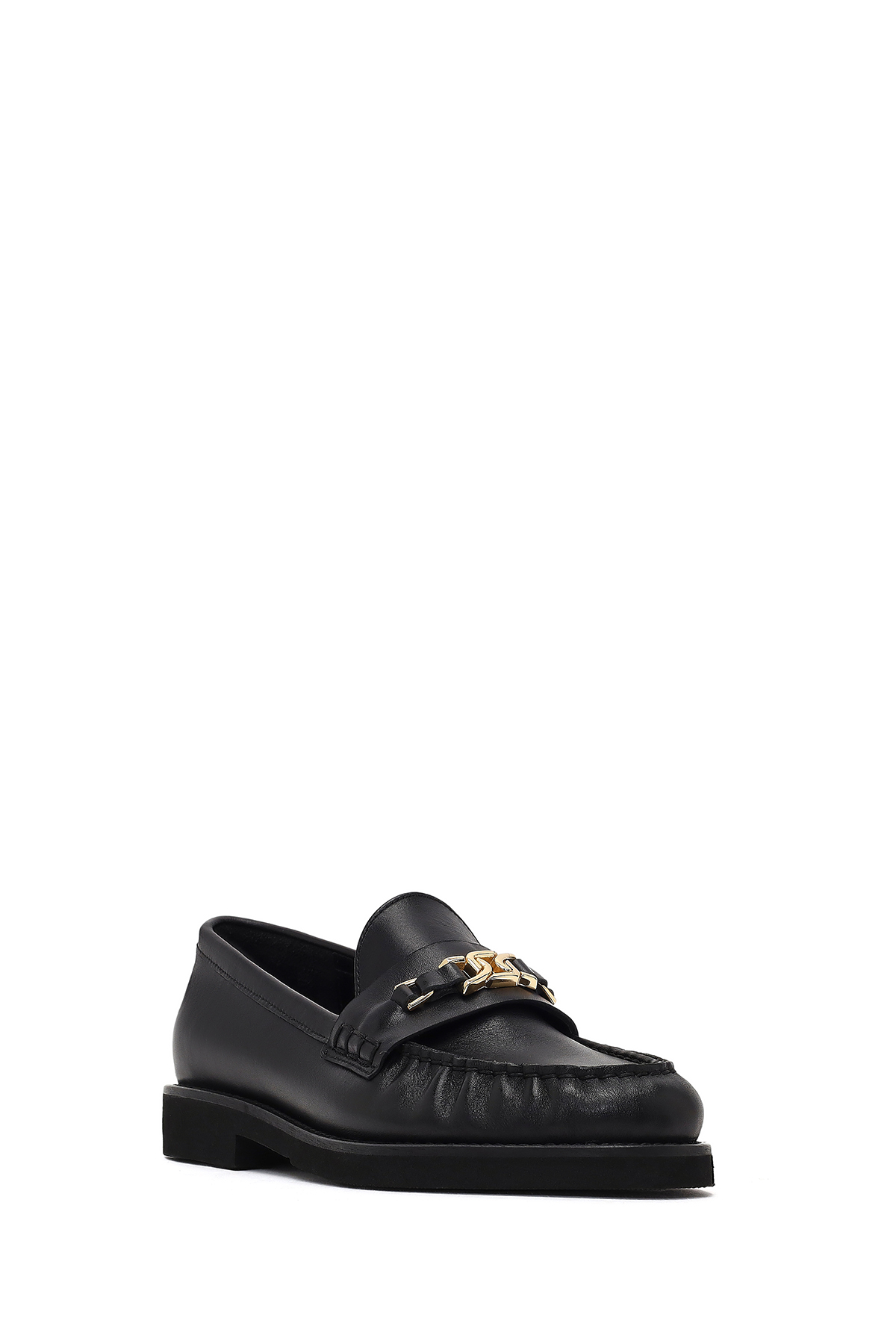 کفش راحتی زنانه چرم سگکدار مشکی دارای چرم گاوی است.