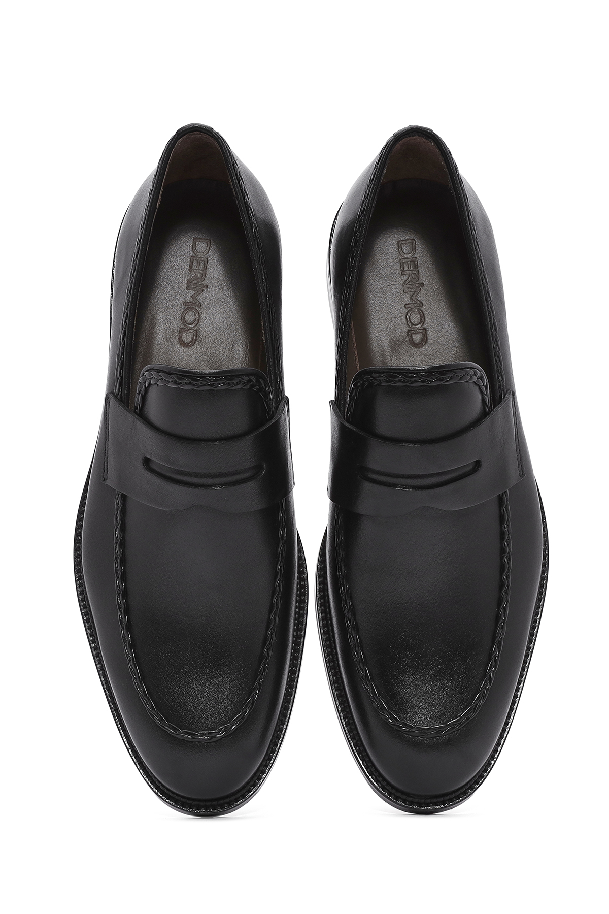 کفش راحتی مردانه چرم مشکی کلاسیک دارای چرم گاوی است.