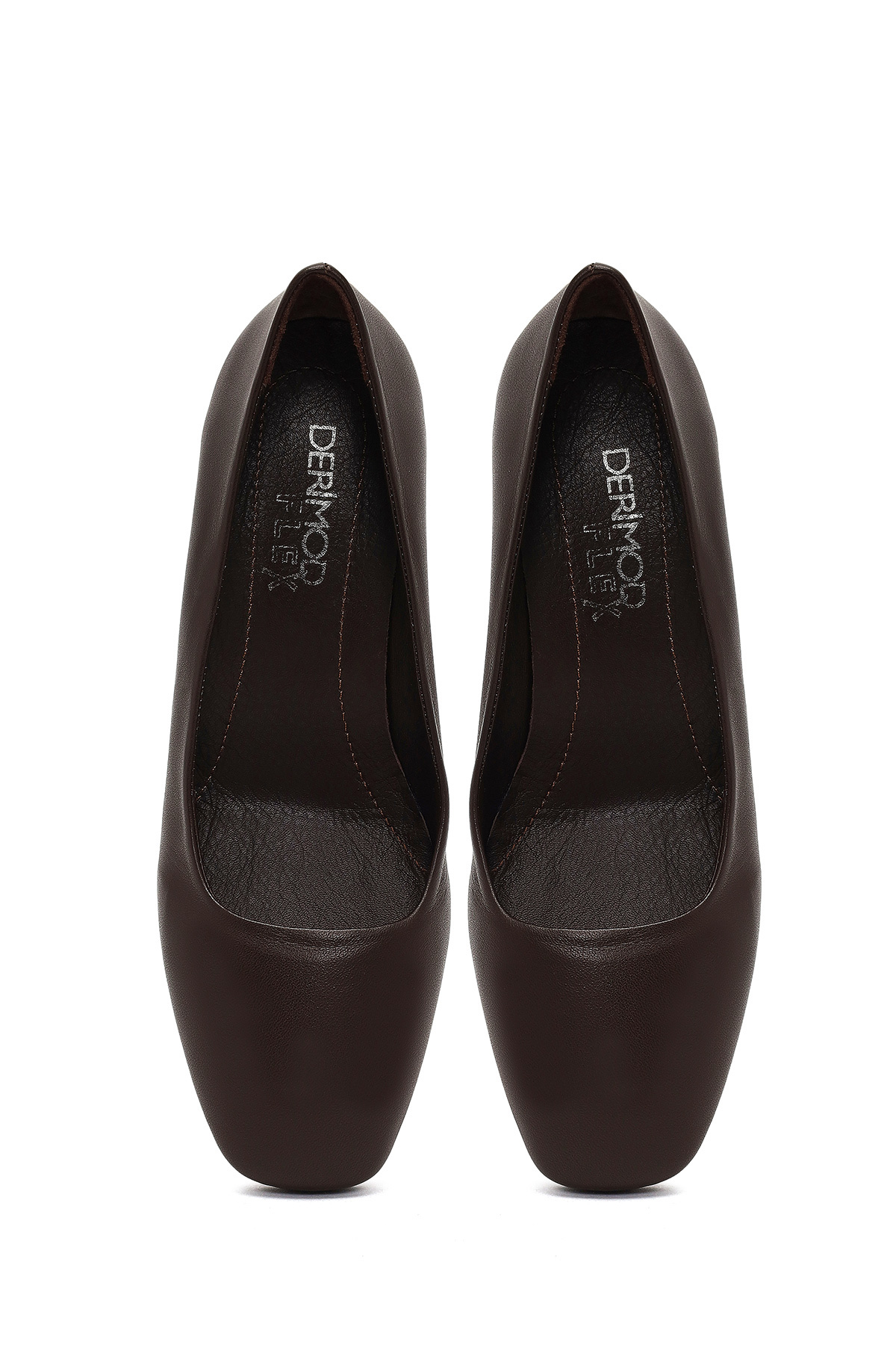 کفشهای چرمی پاشنه بلند قهوهای زنانهی دریمود فلکس حاوی چرم گاوی هستند.