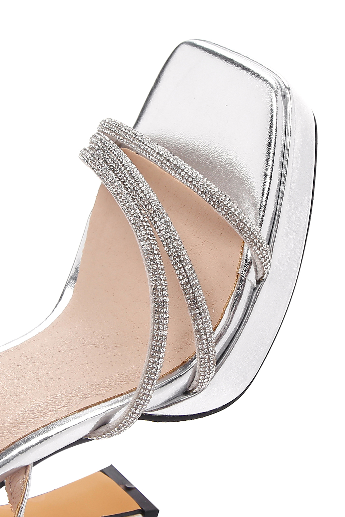 صندل مجلسی زنانه پاشنه بلند ضخیم با بند نقرهای مچ پا