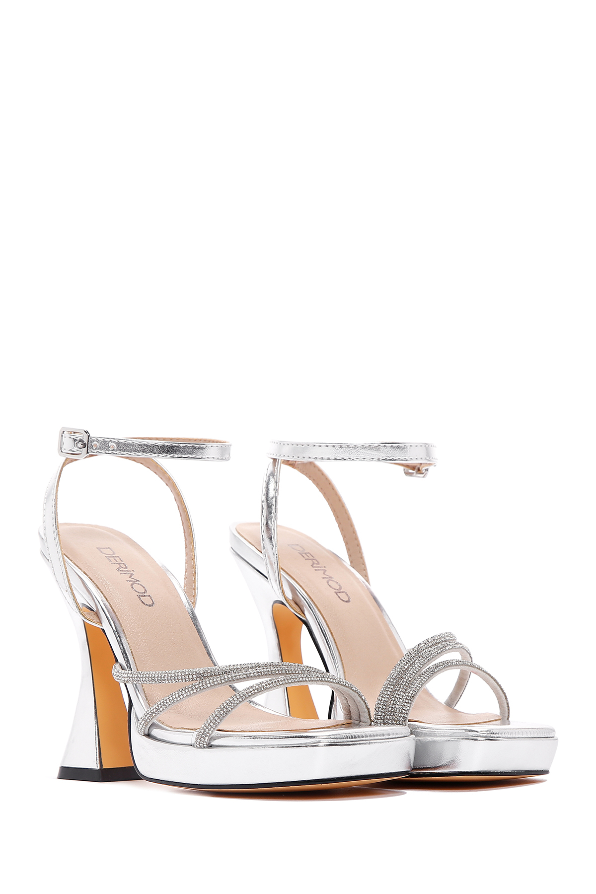 صندل زنانه پاشنه بلند نقرهای بنددار زنانه ۲۵sfd441014