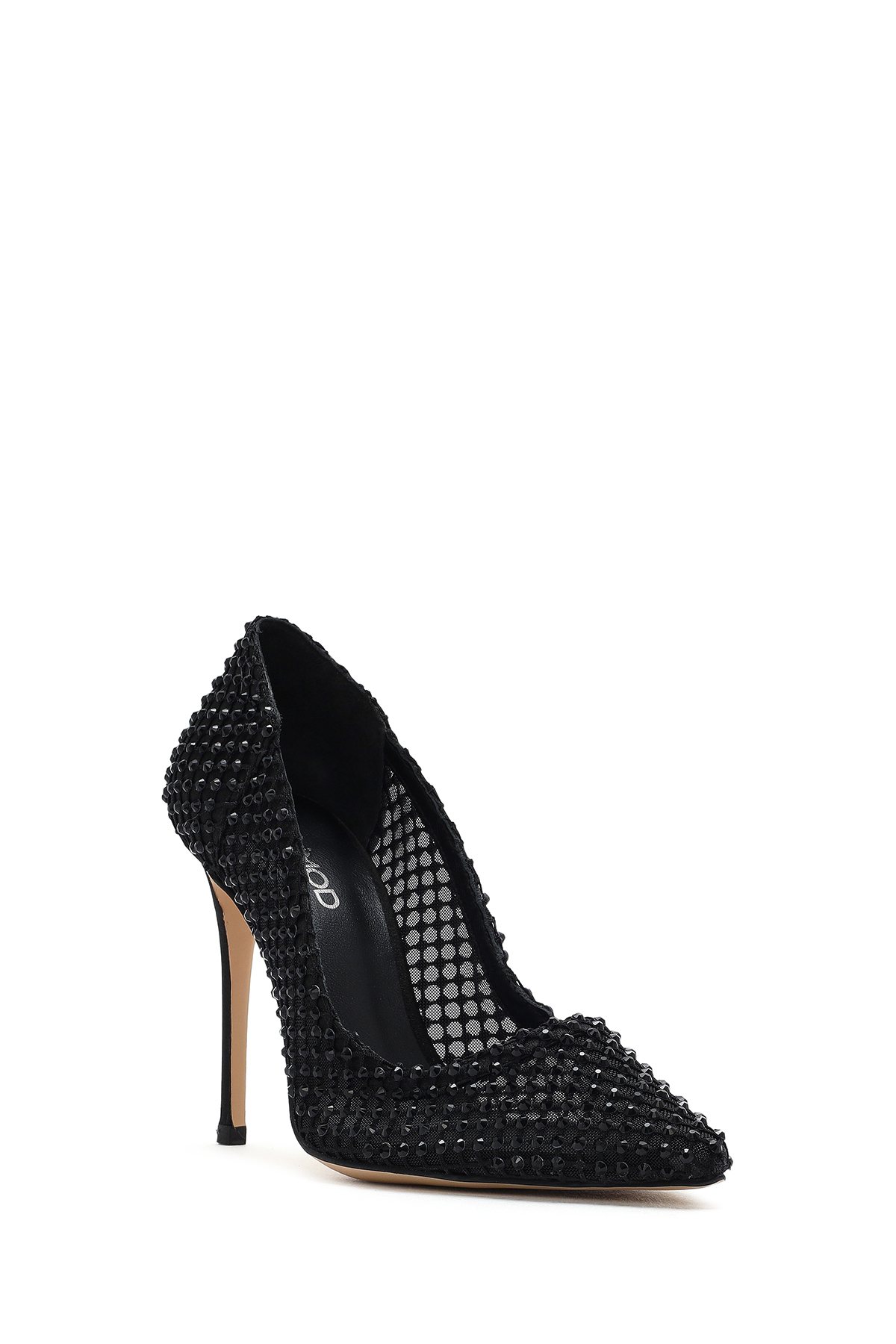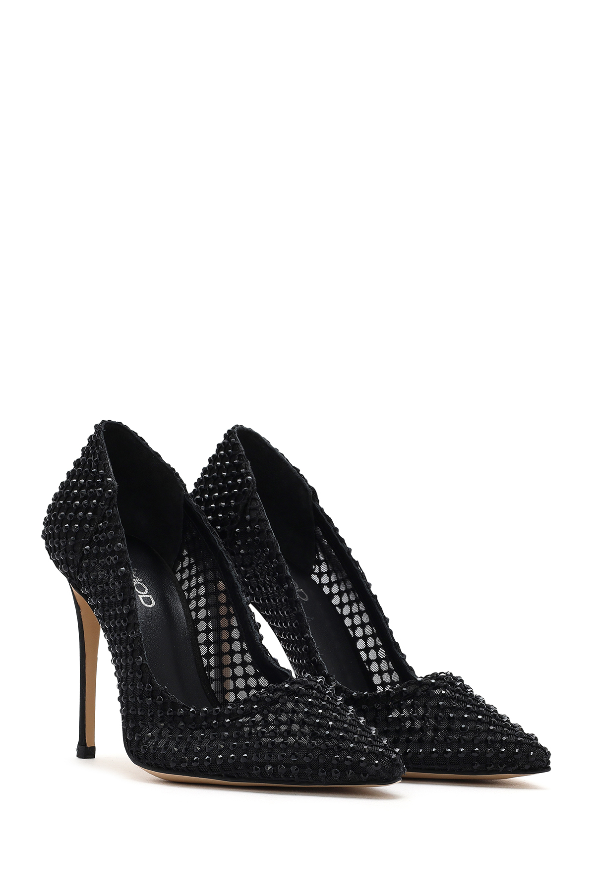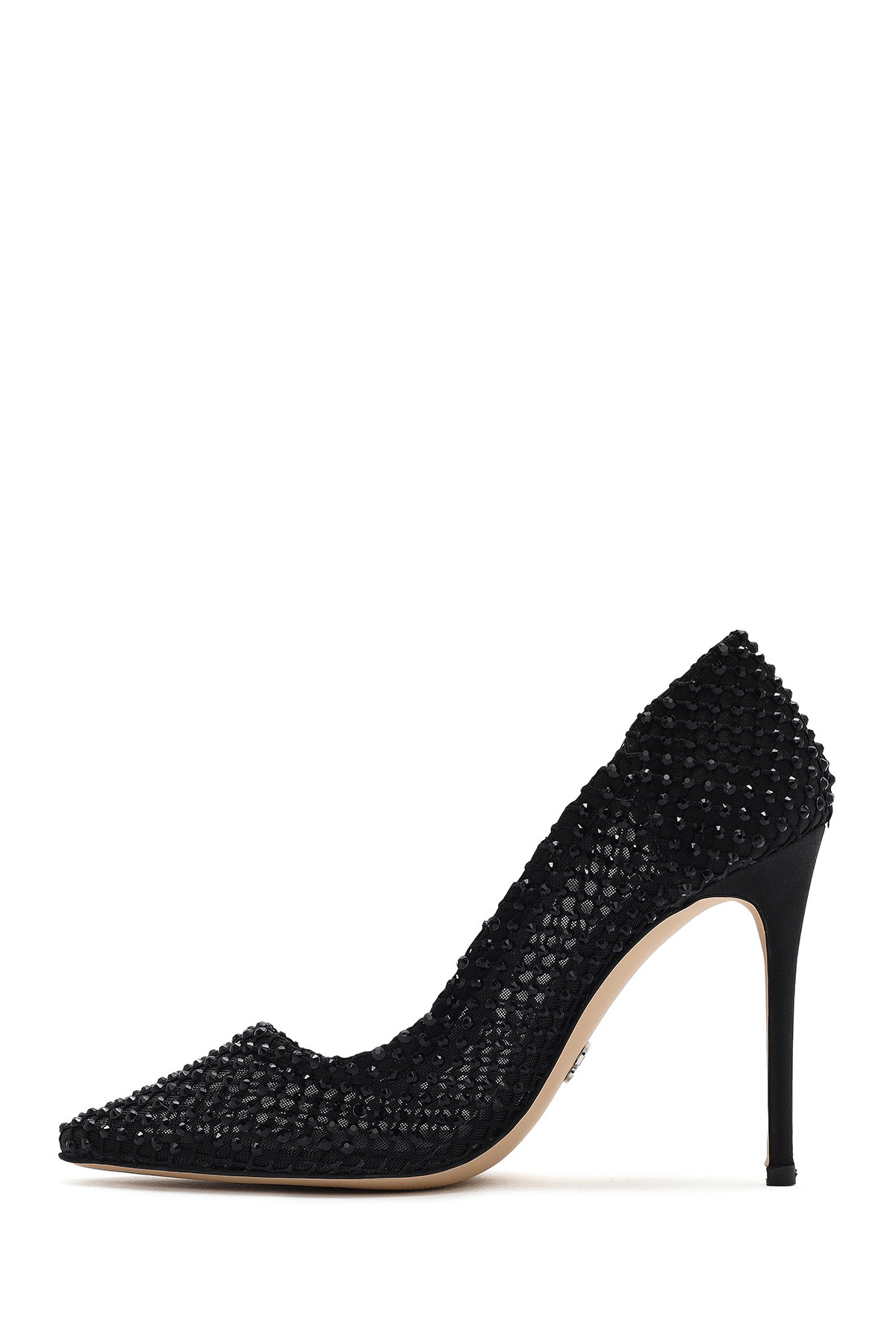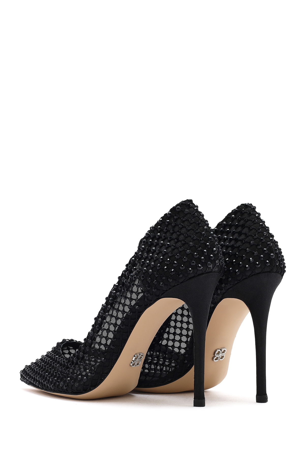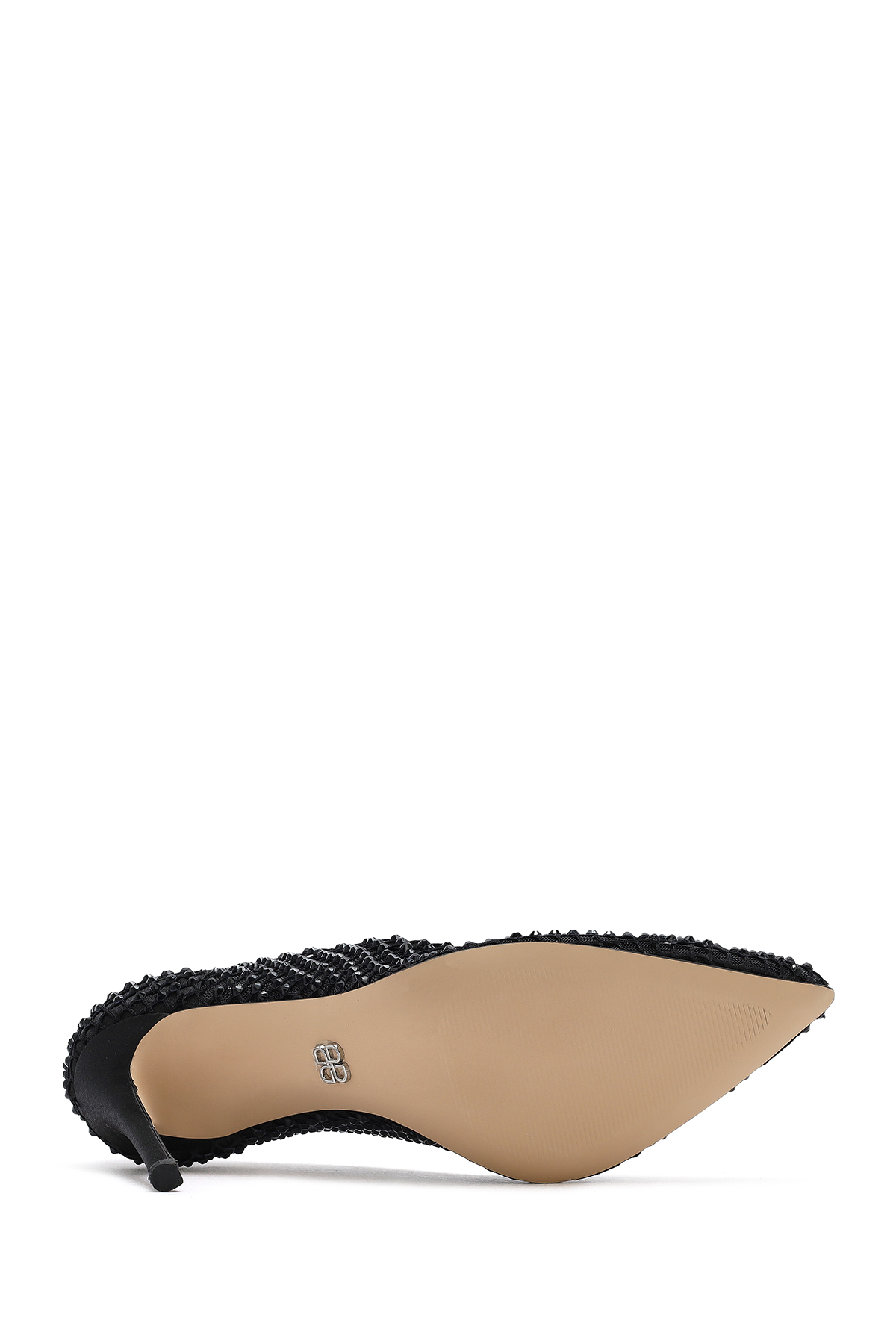 کفش پاشنه بلند زنانه چرم طبیعی مشکی طرح سنگ مصنوعی کد 25SFD1214TS