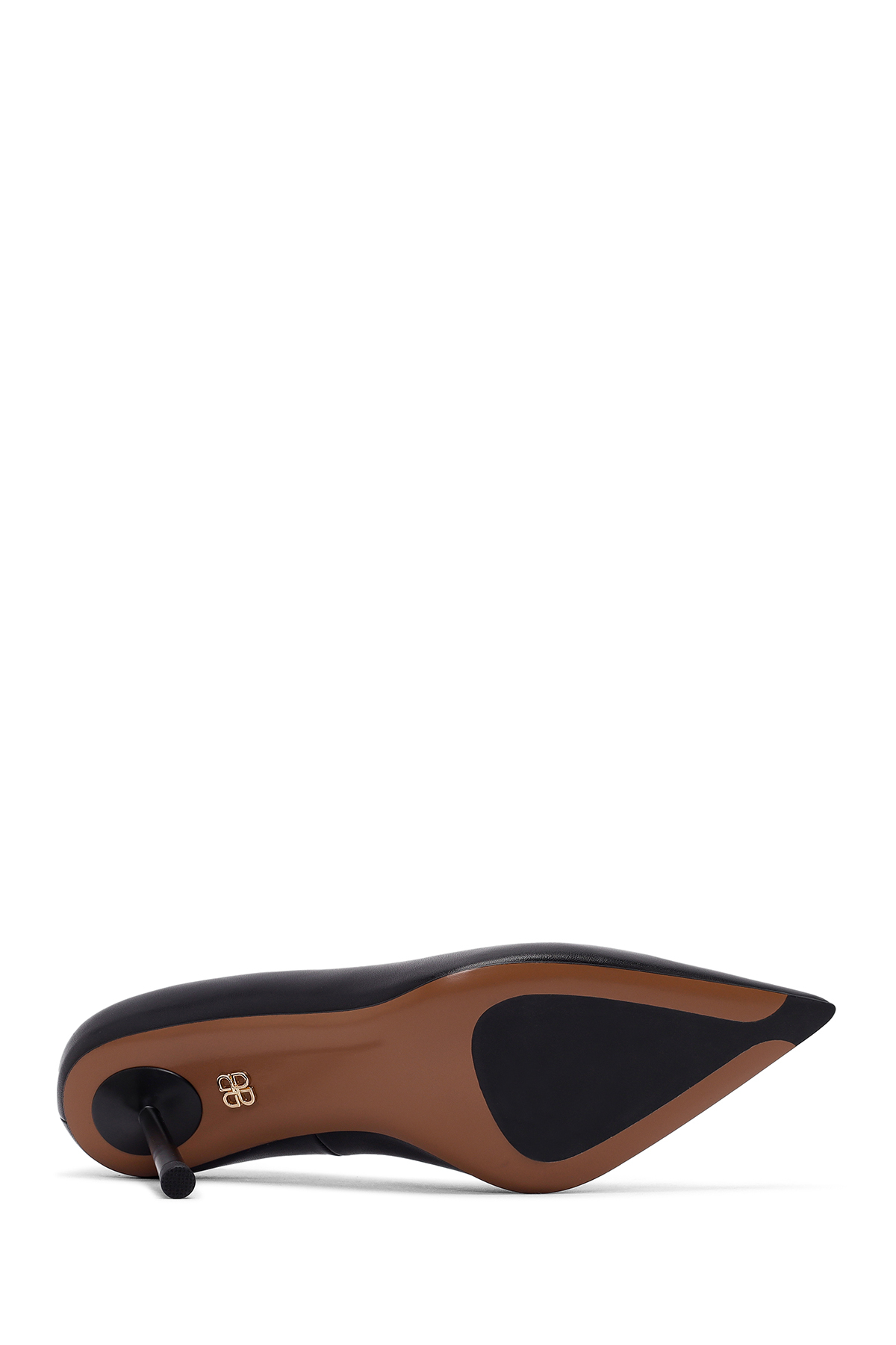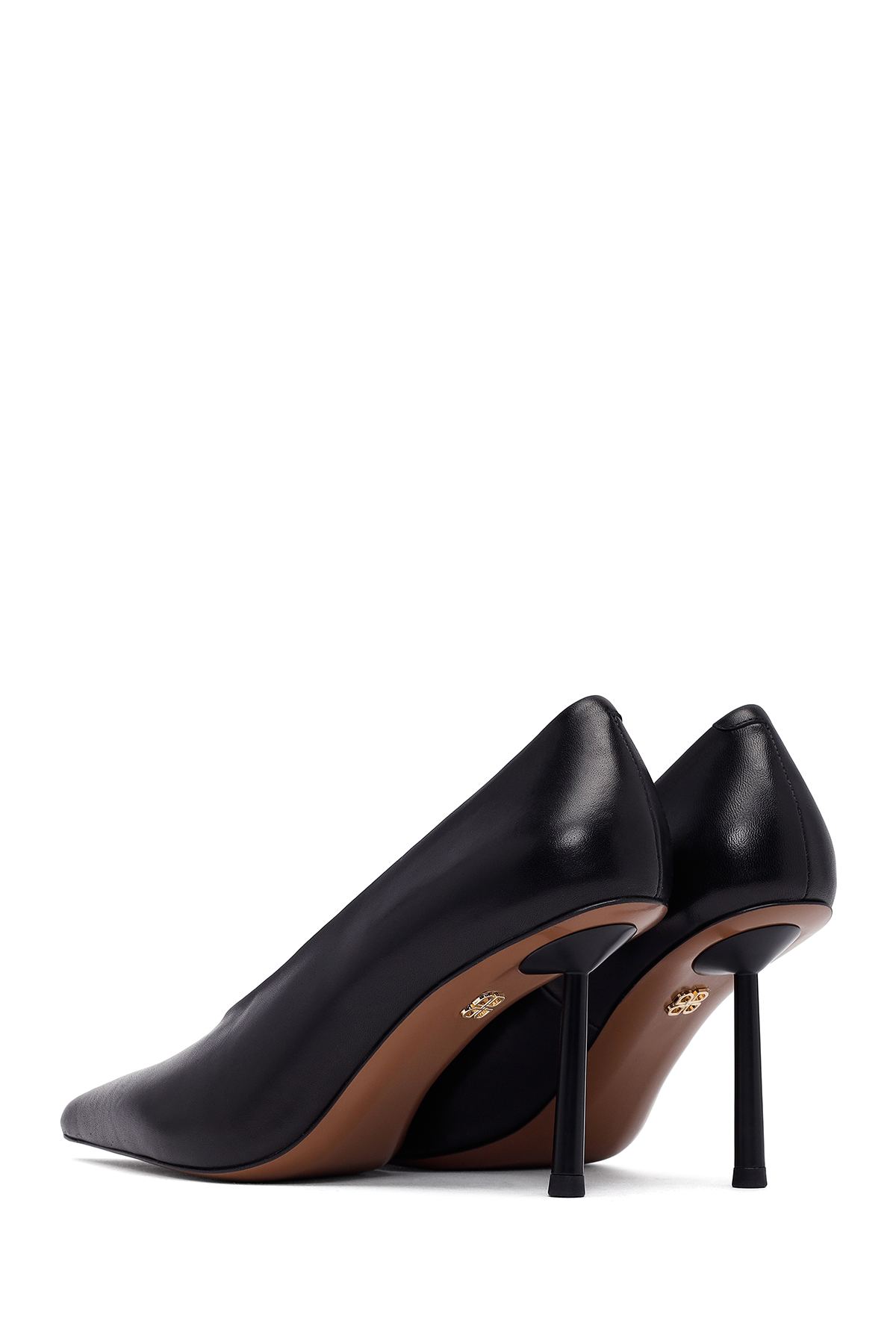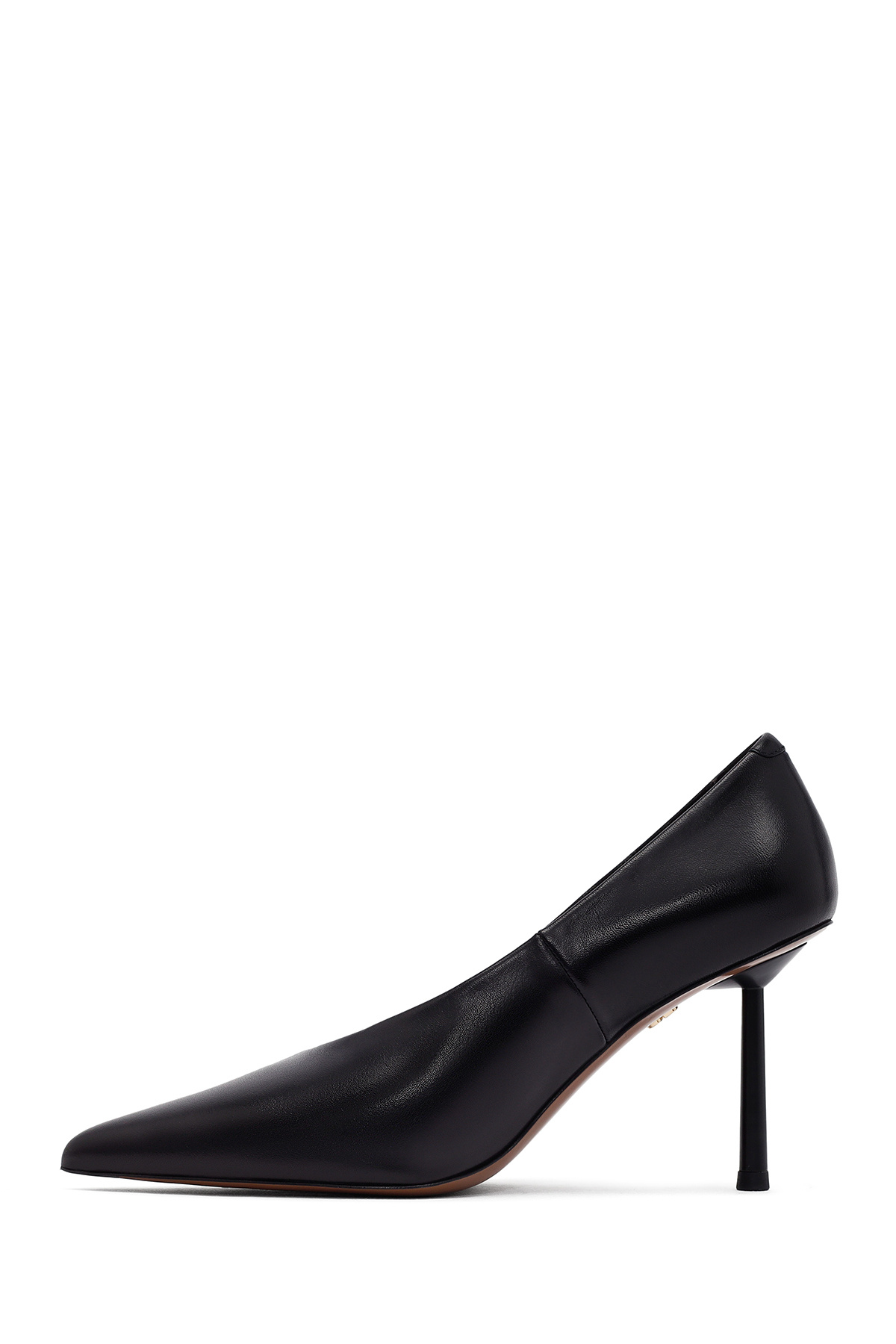 کفشهای پاشنه باریک زنانه مشکی چرمی، دارای چرم گاوی هستند.