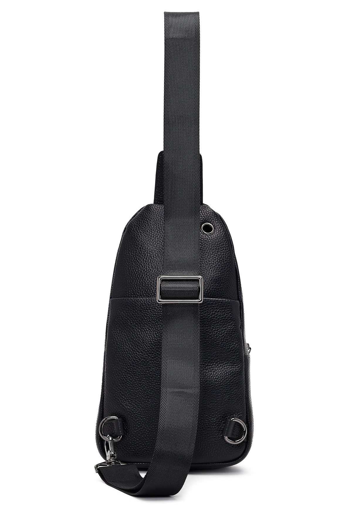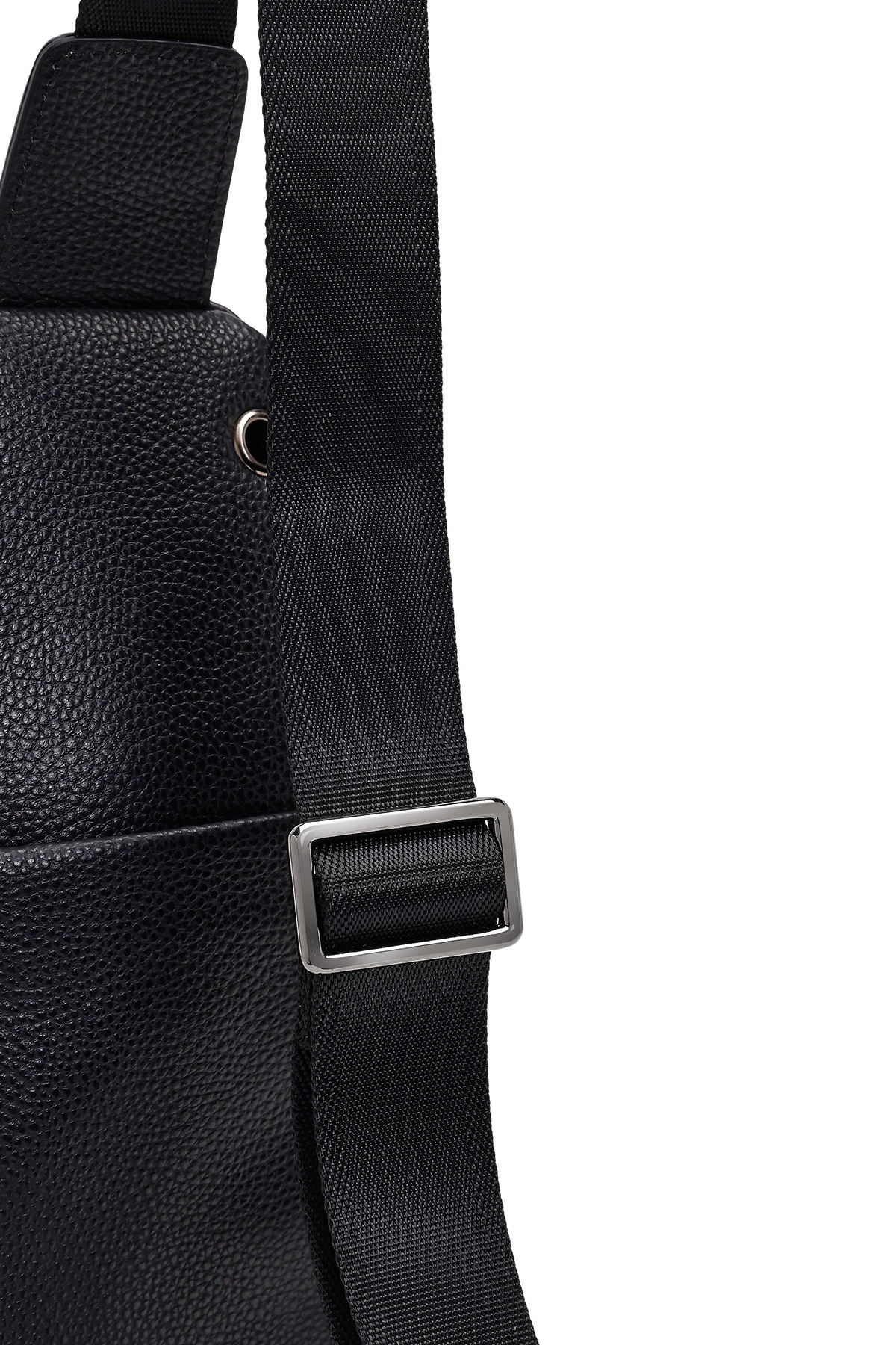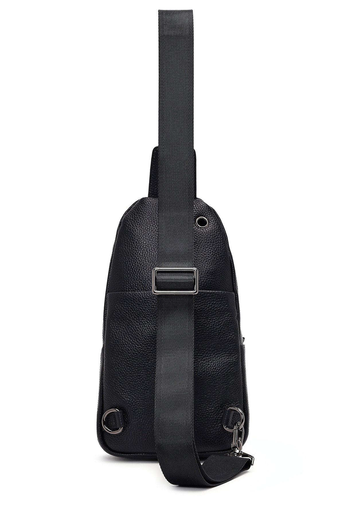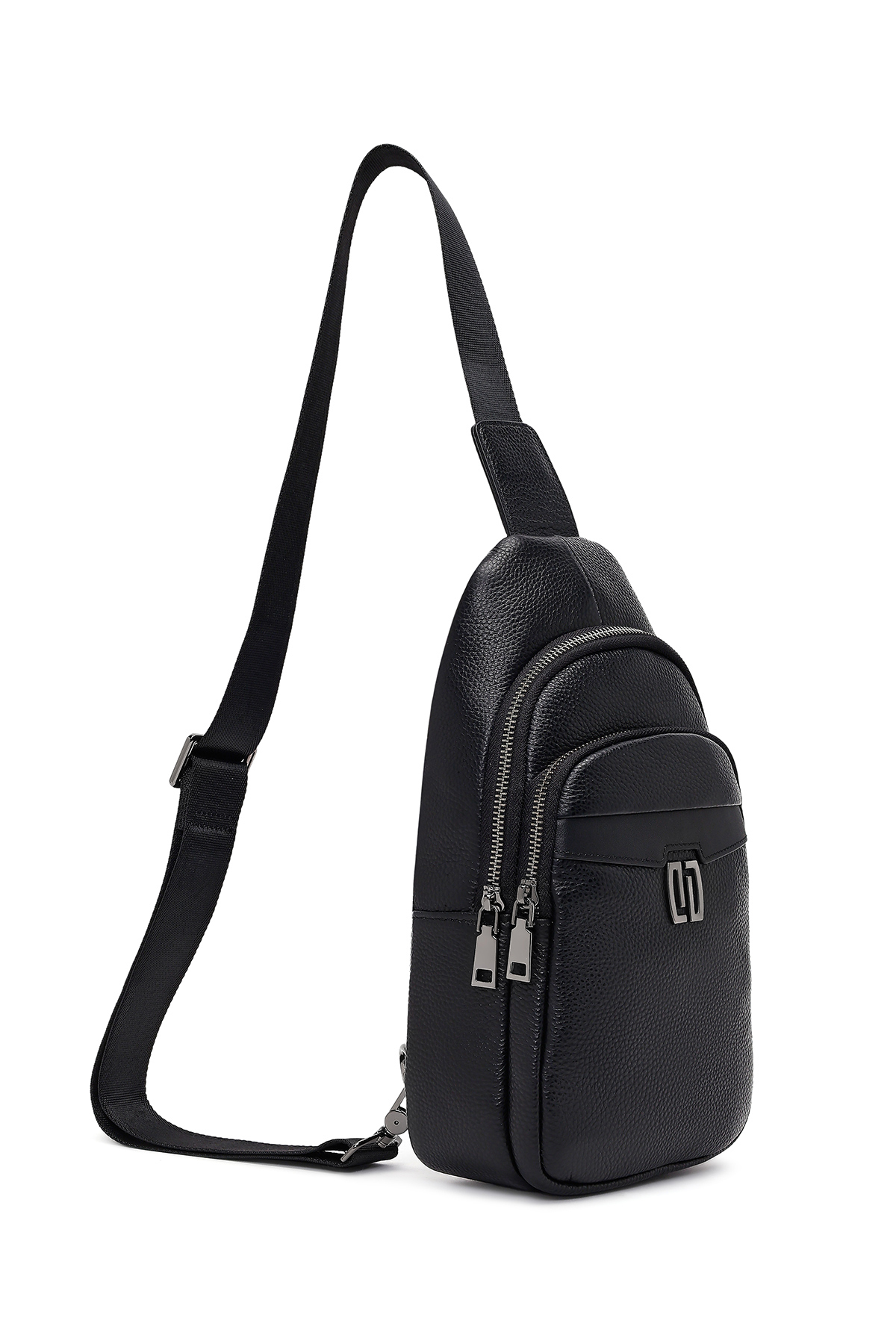 کیف رودوشی مردانه طرح چرم مشکی، از چرم گاوی ساخته شده است.