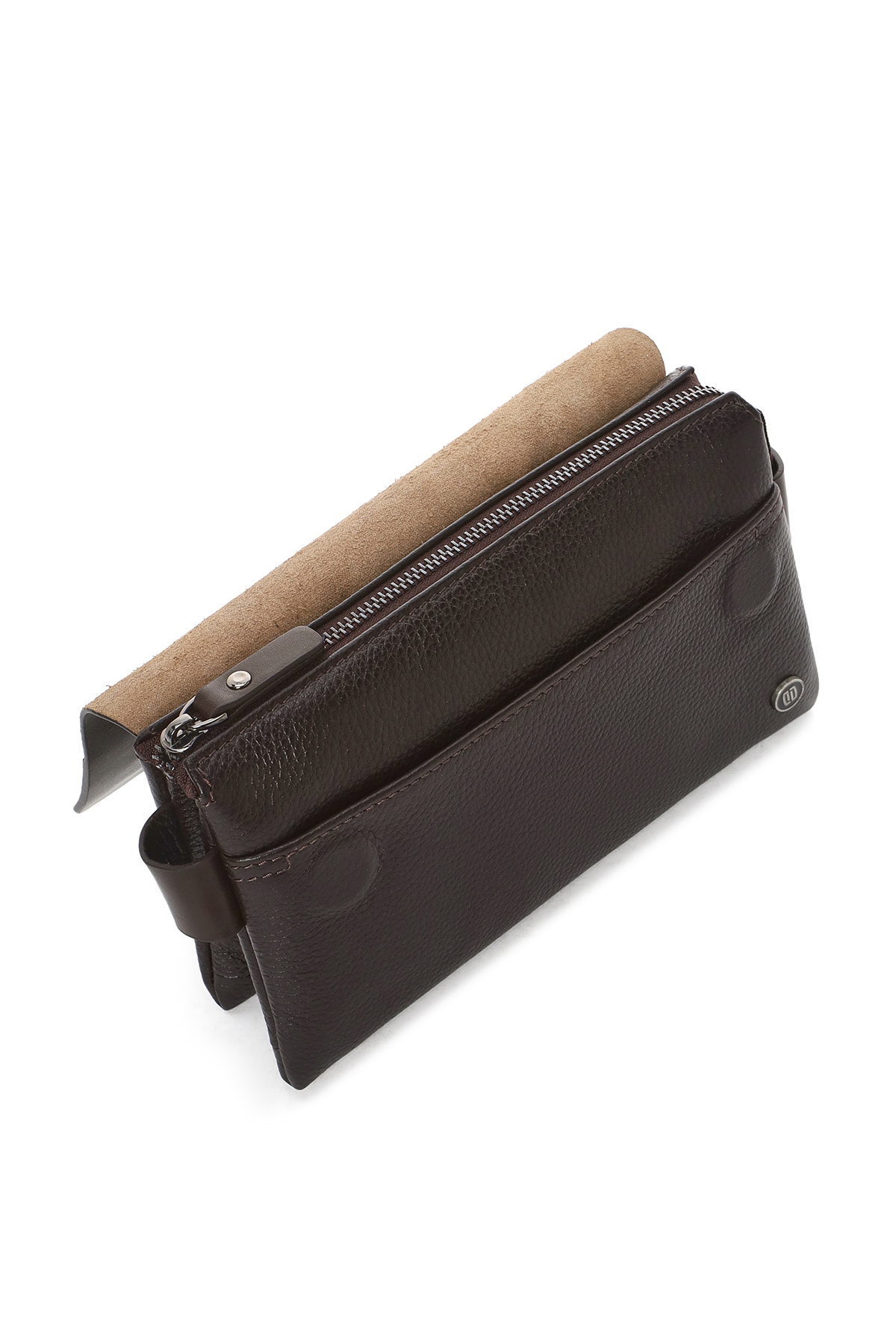 این کیف دستی مردانه چرم قهوهای حاوی چرم گاوی است.