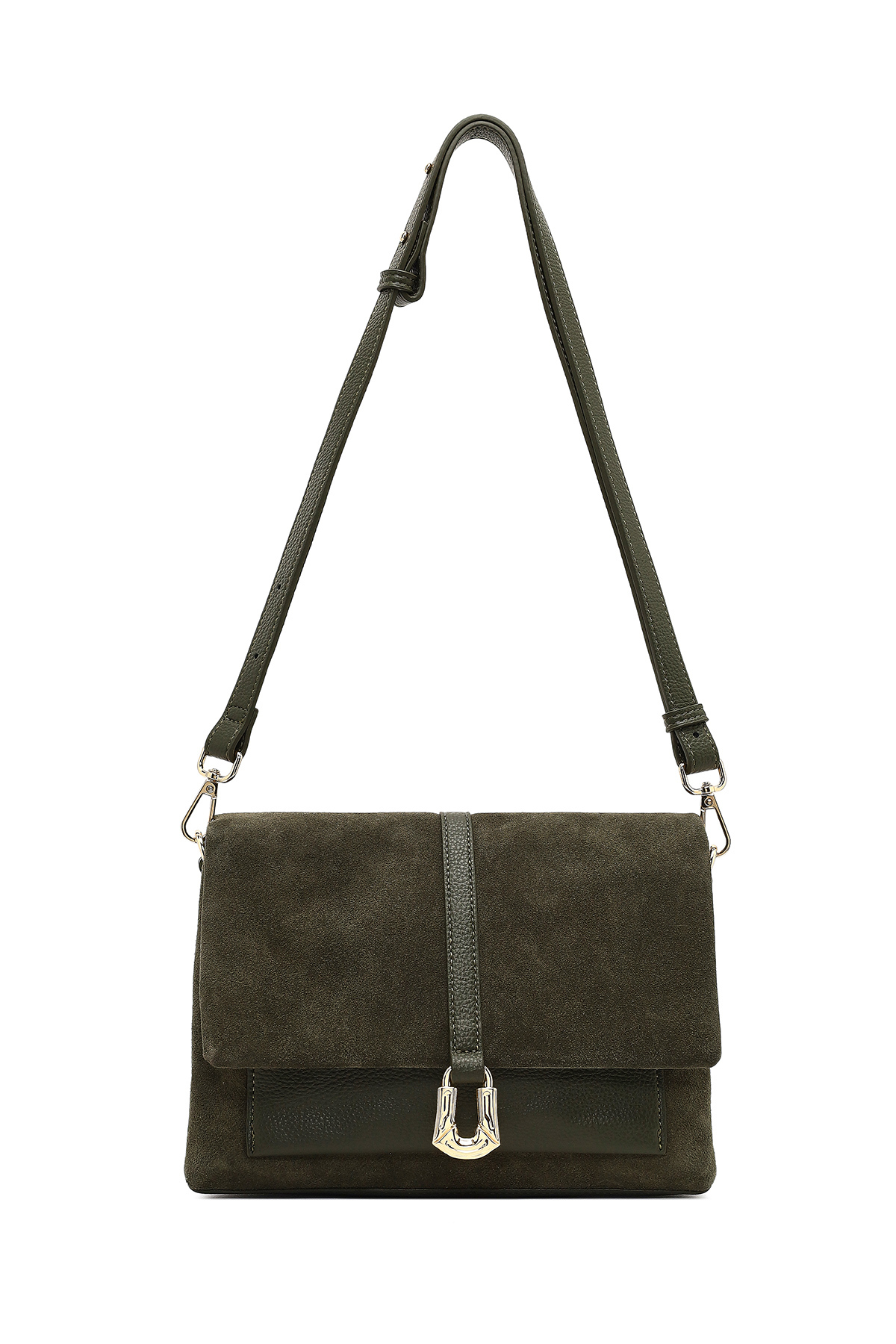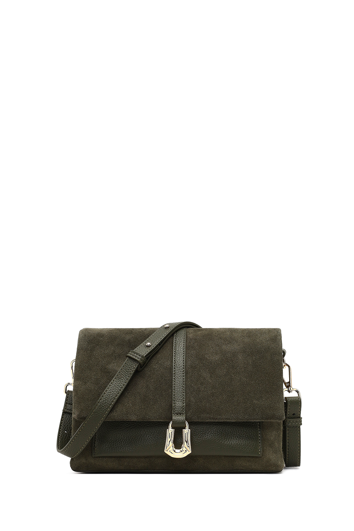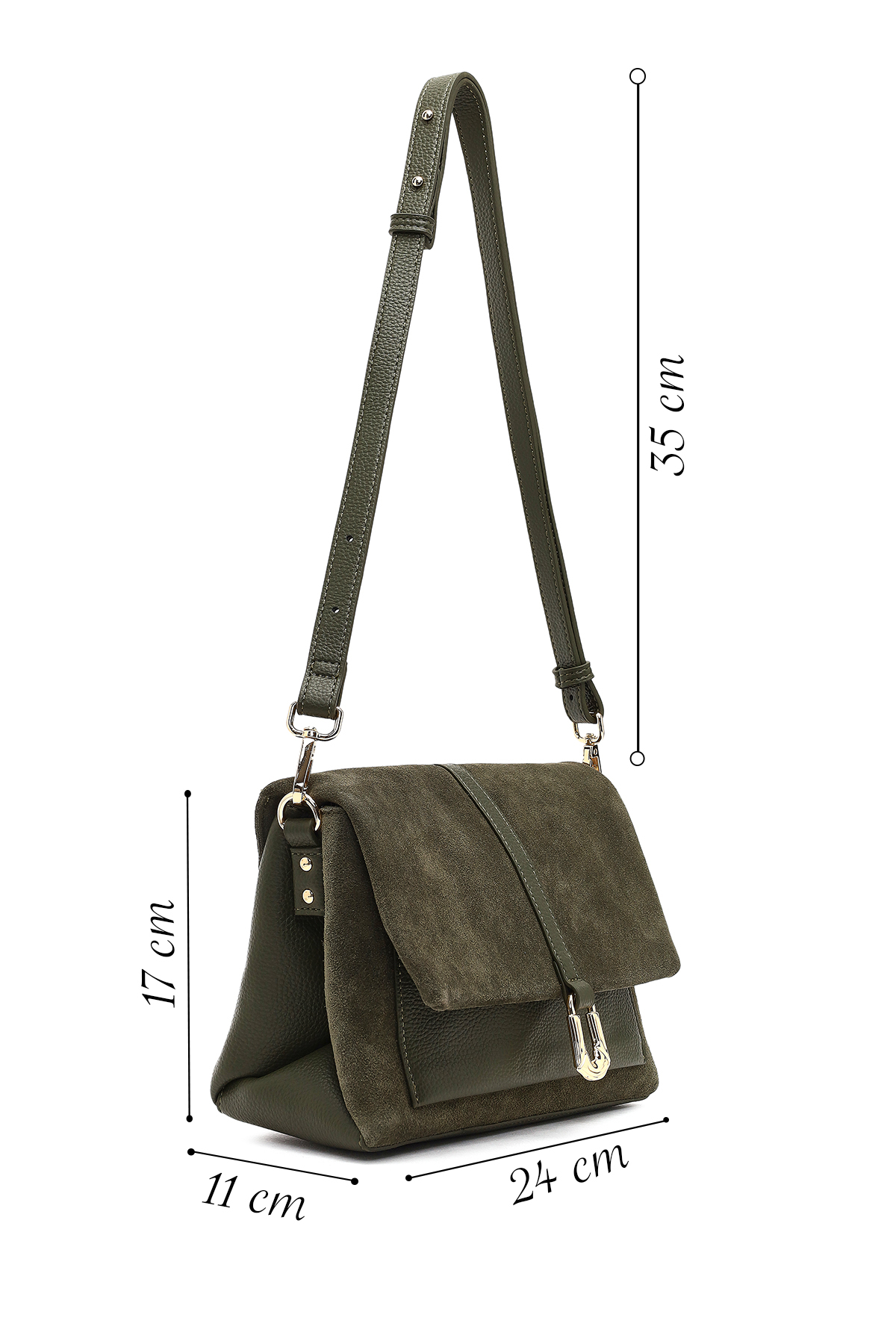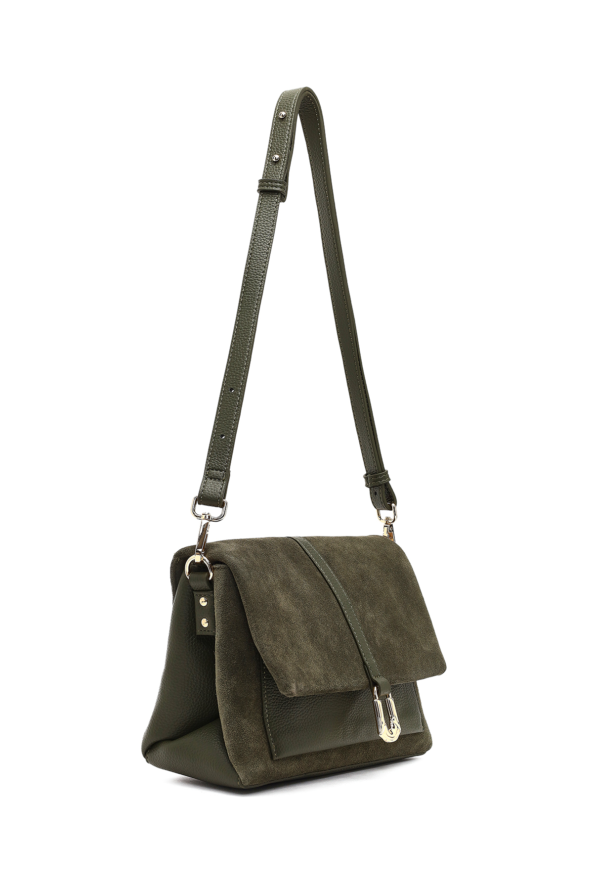 کیف رودوشی زنانه چرم جیر سبز بند بلند کد 25WBD252610
