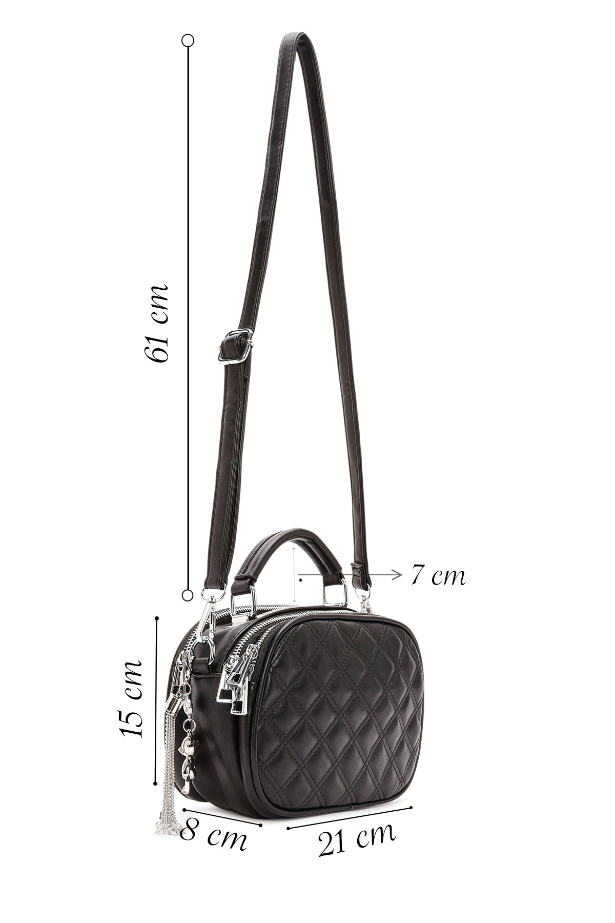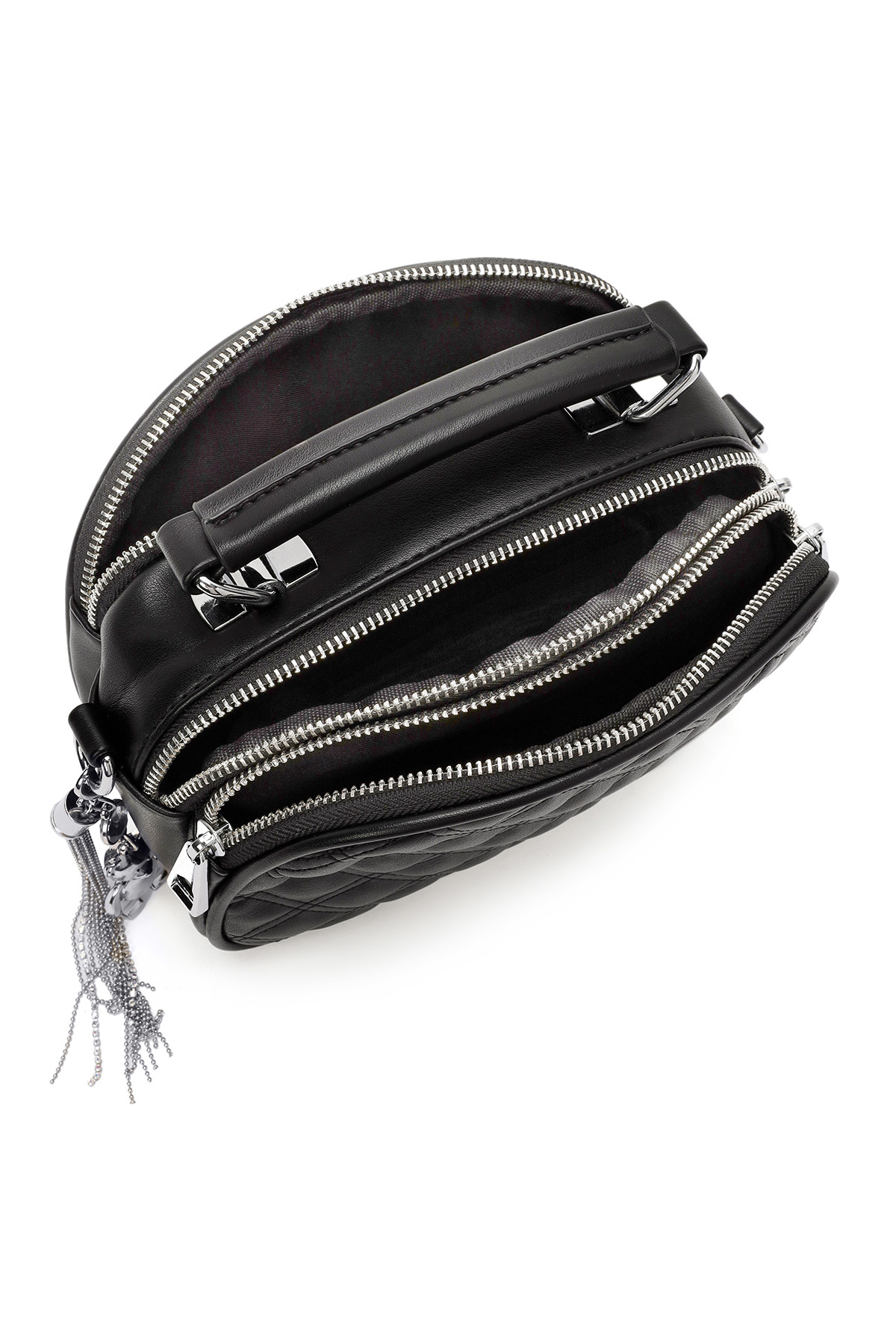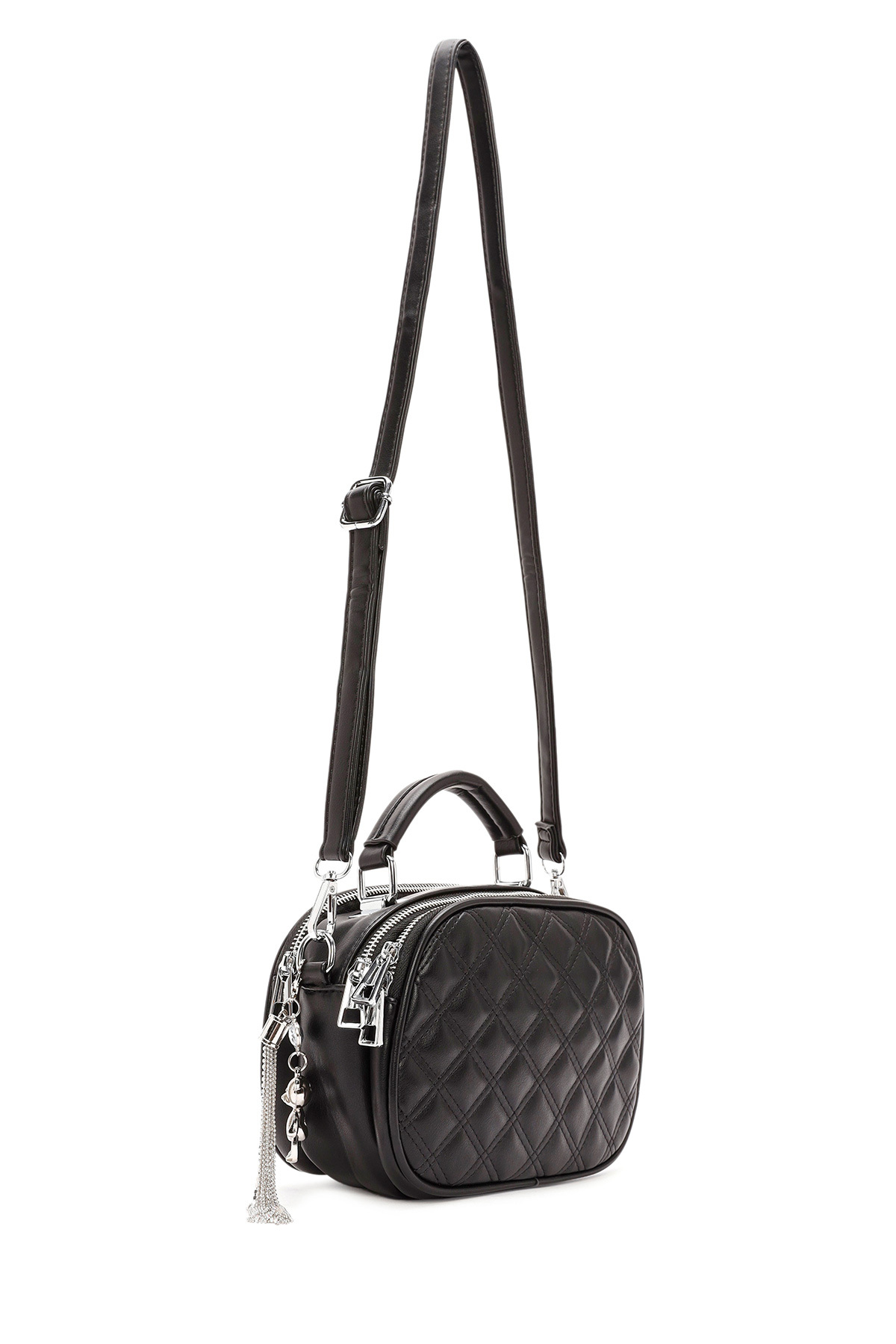 کیف رودوشی زنانه طرح دار مشکی بند بلند کد 25WBD2619KP