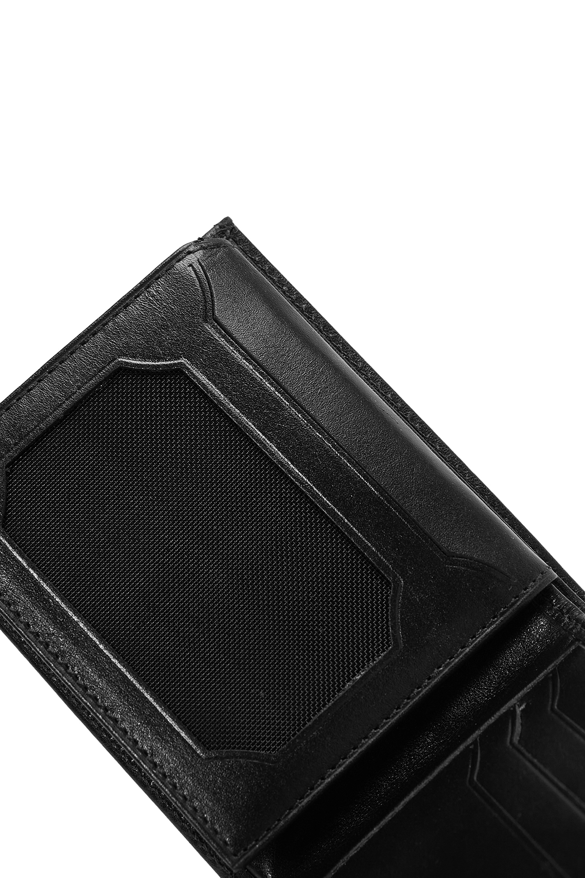 این کیف پول مردانه چرم مشکی حاوی چرم گاوی است.