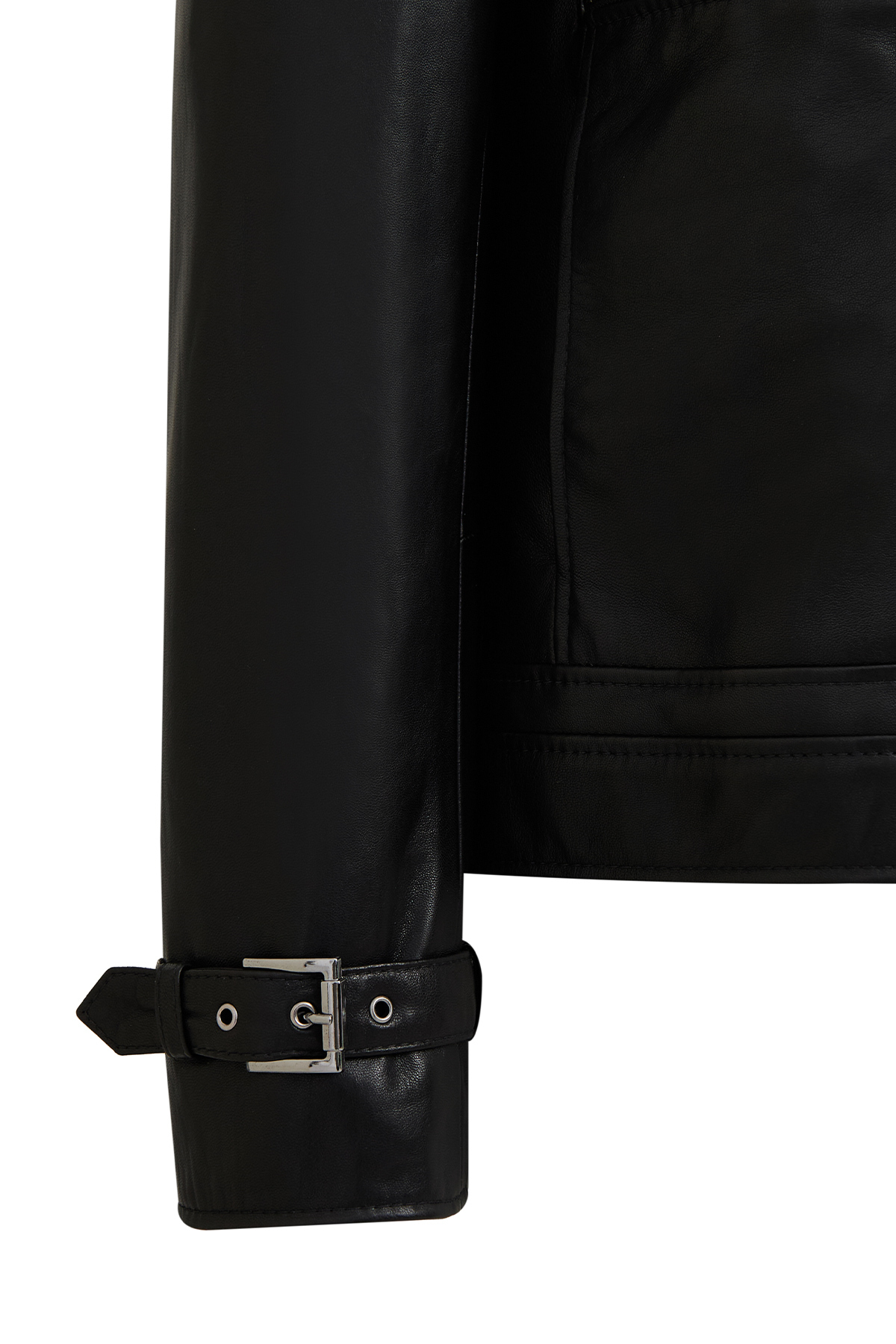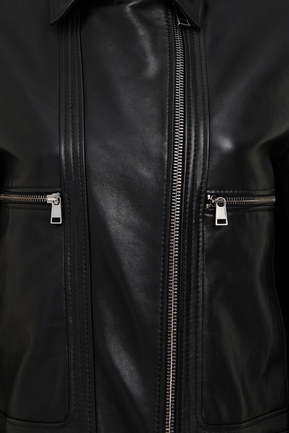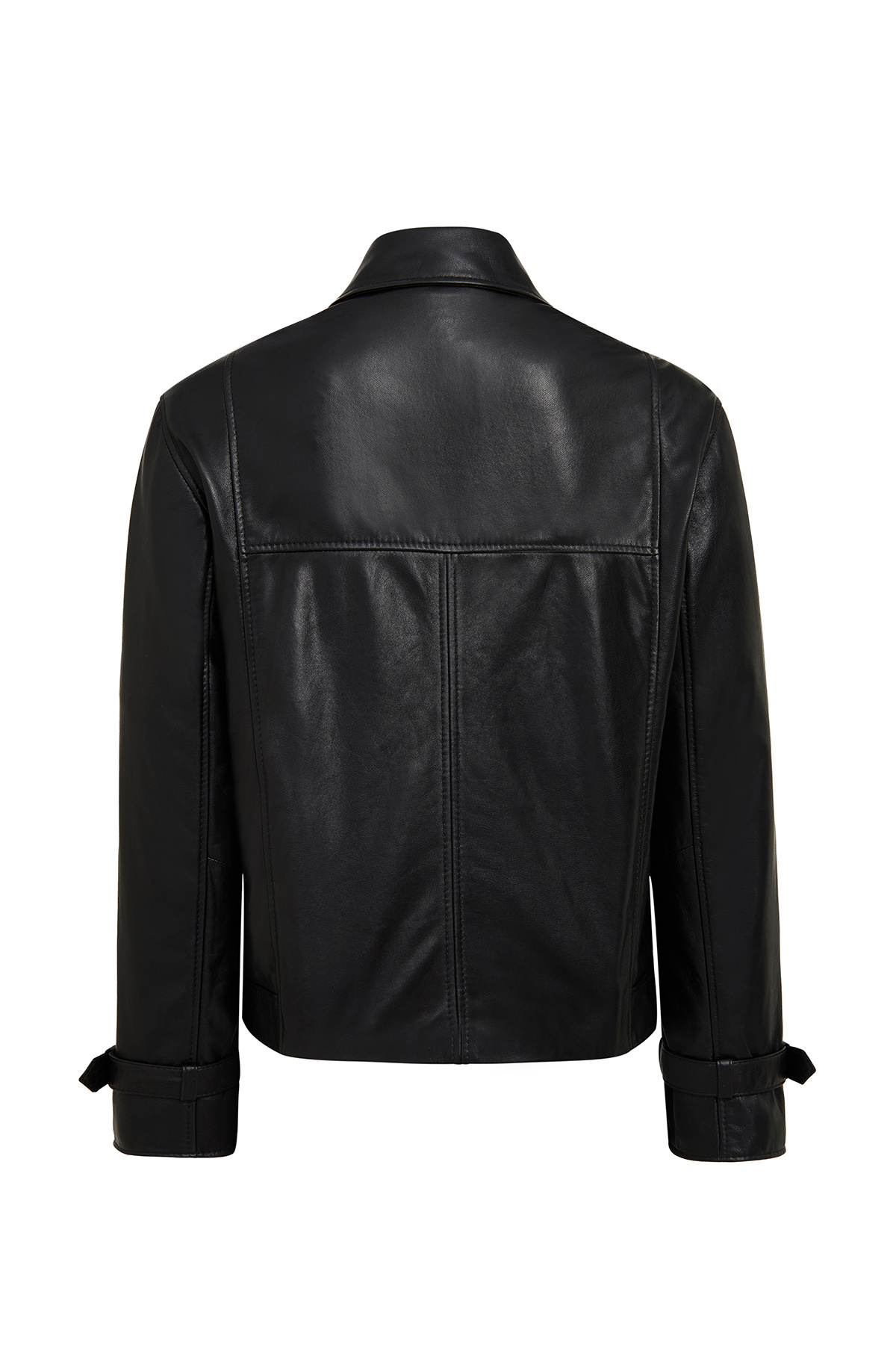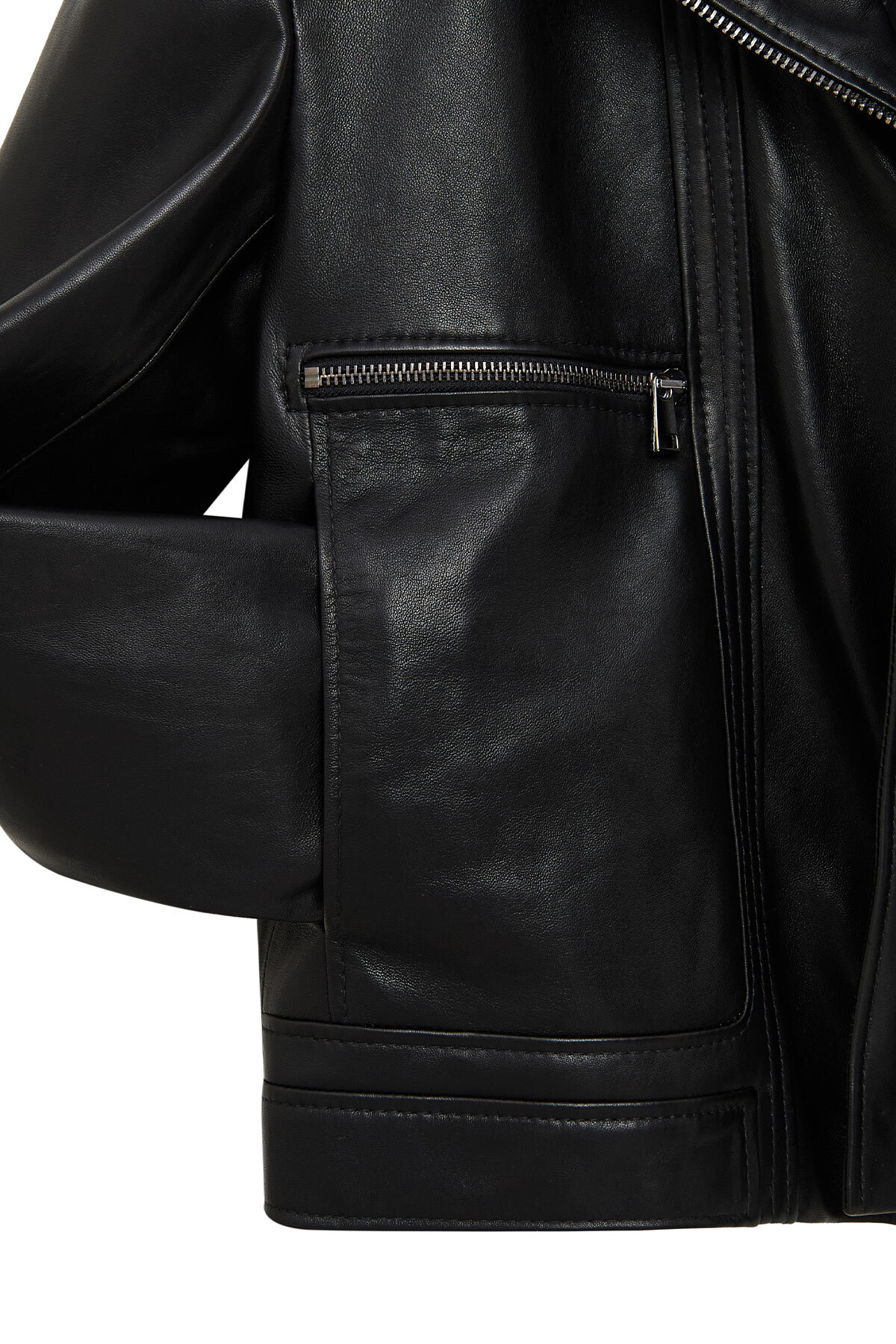 کاپشن چرمی زنانه مشکی سایز بزرگ و کوتاه پالوما، دارای پوست گوسفند است.