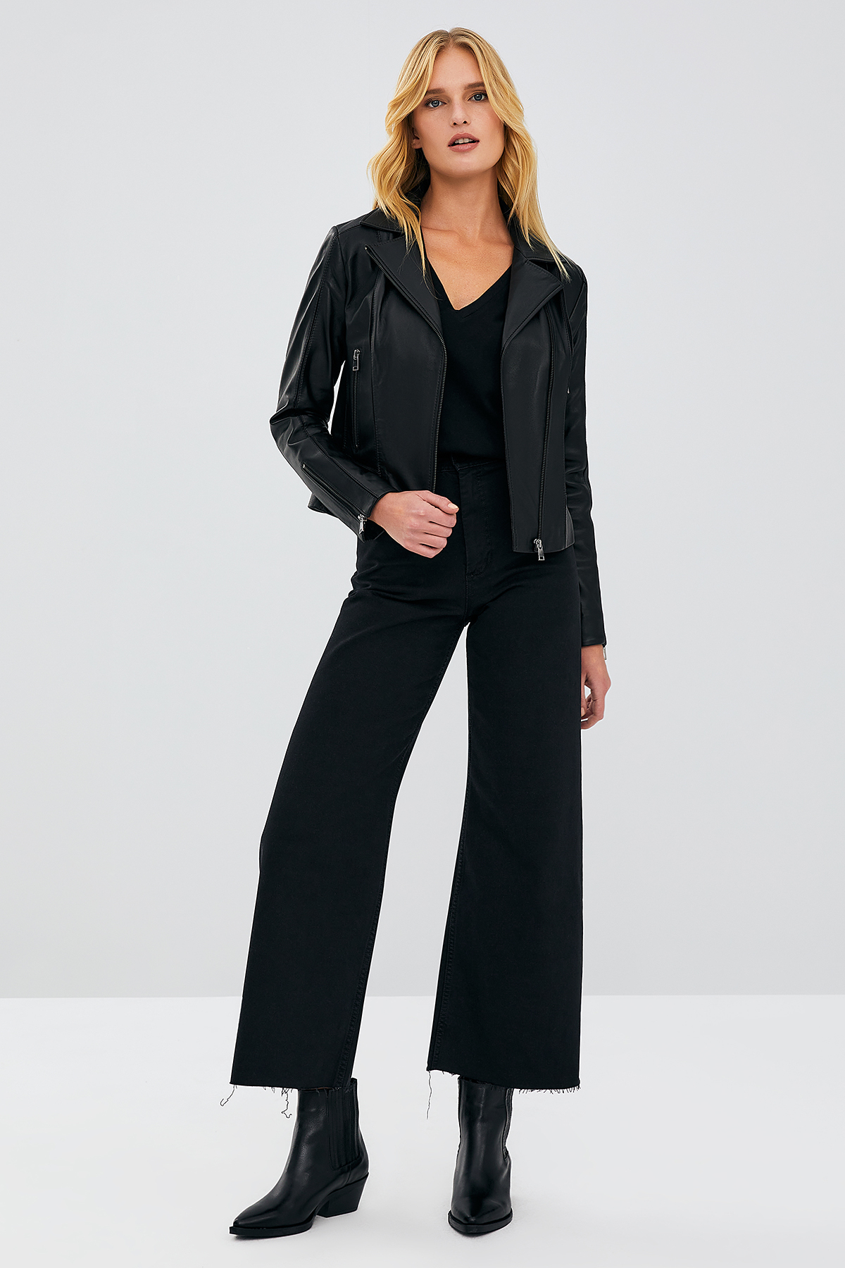کاپشن چرمی موتورسواری زنانه کیارا مشکی اسلیم فیت 20SGD5859U4