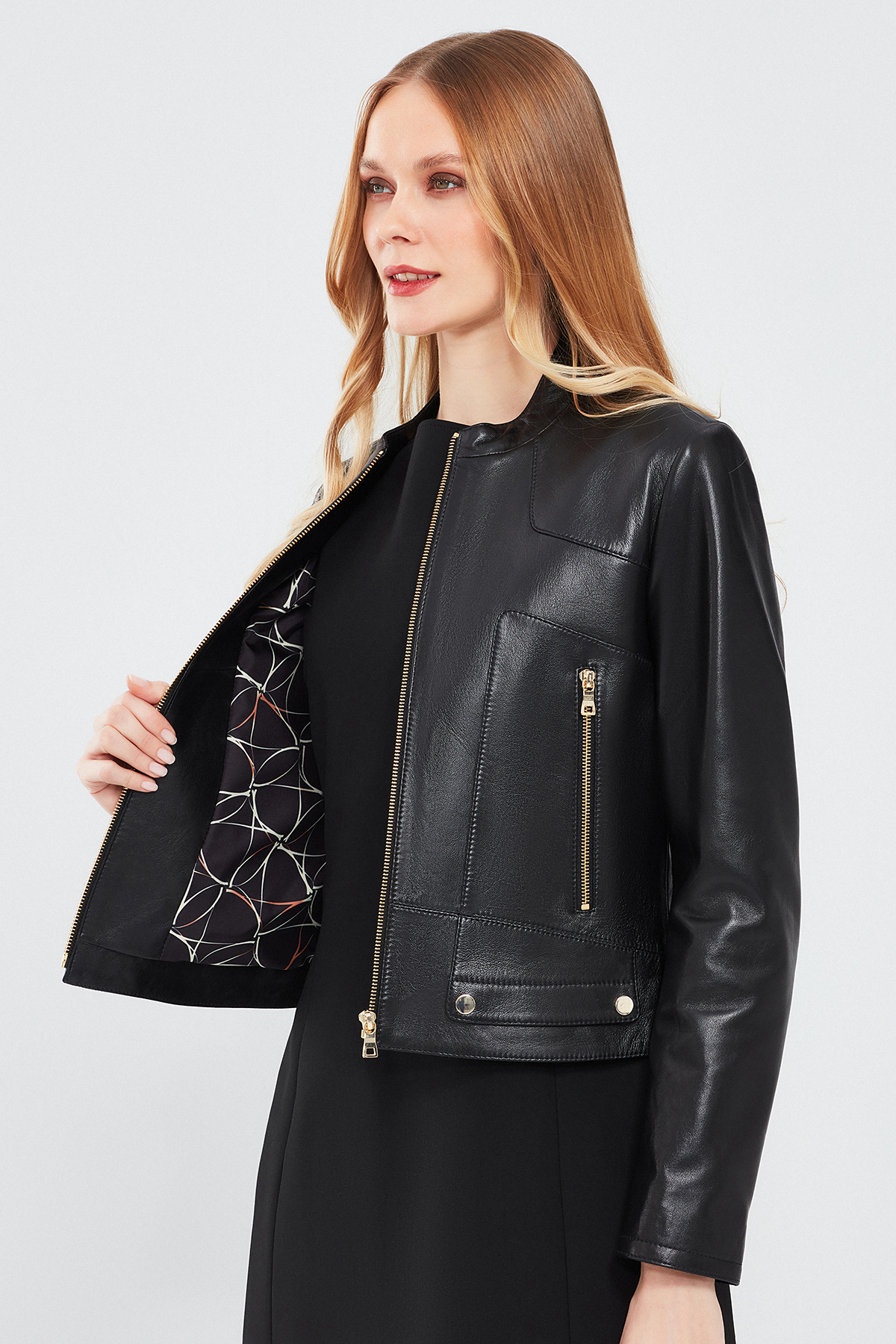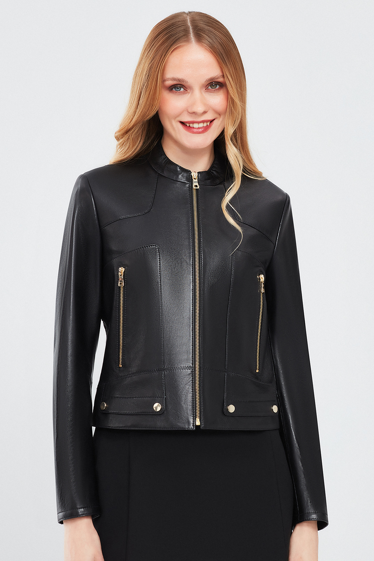 کاپشن چرمی کوتاه مشکی زنانه Sharon دارای پوست گوسفند است.