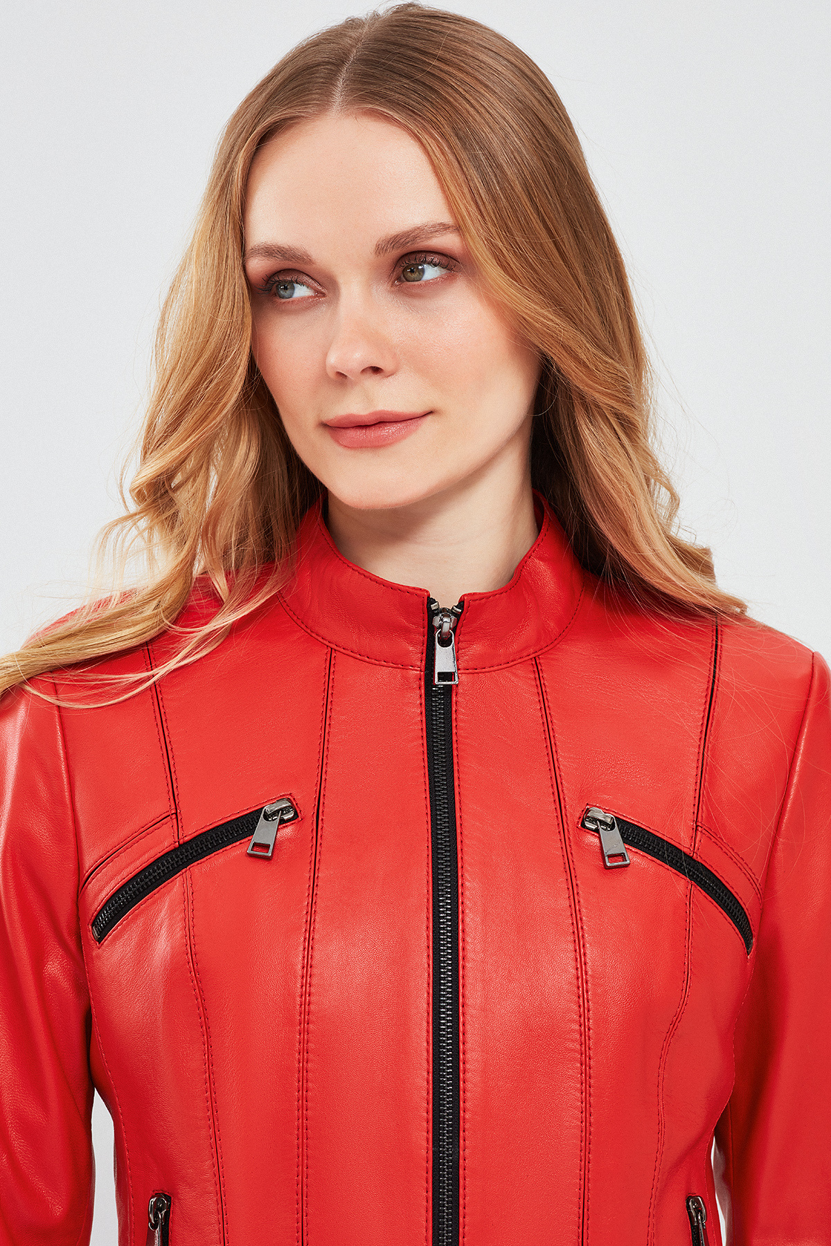 کاپشن چرم کوتاه زنانه لیندا مدل 24SGD5200U4 قرمز