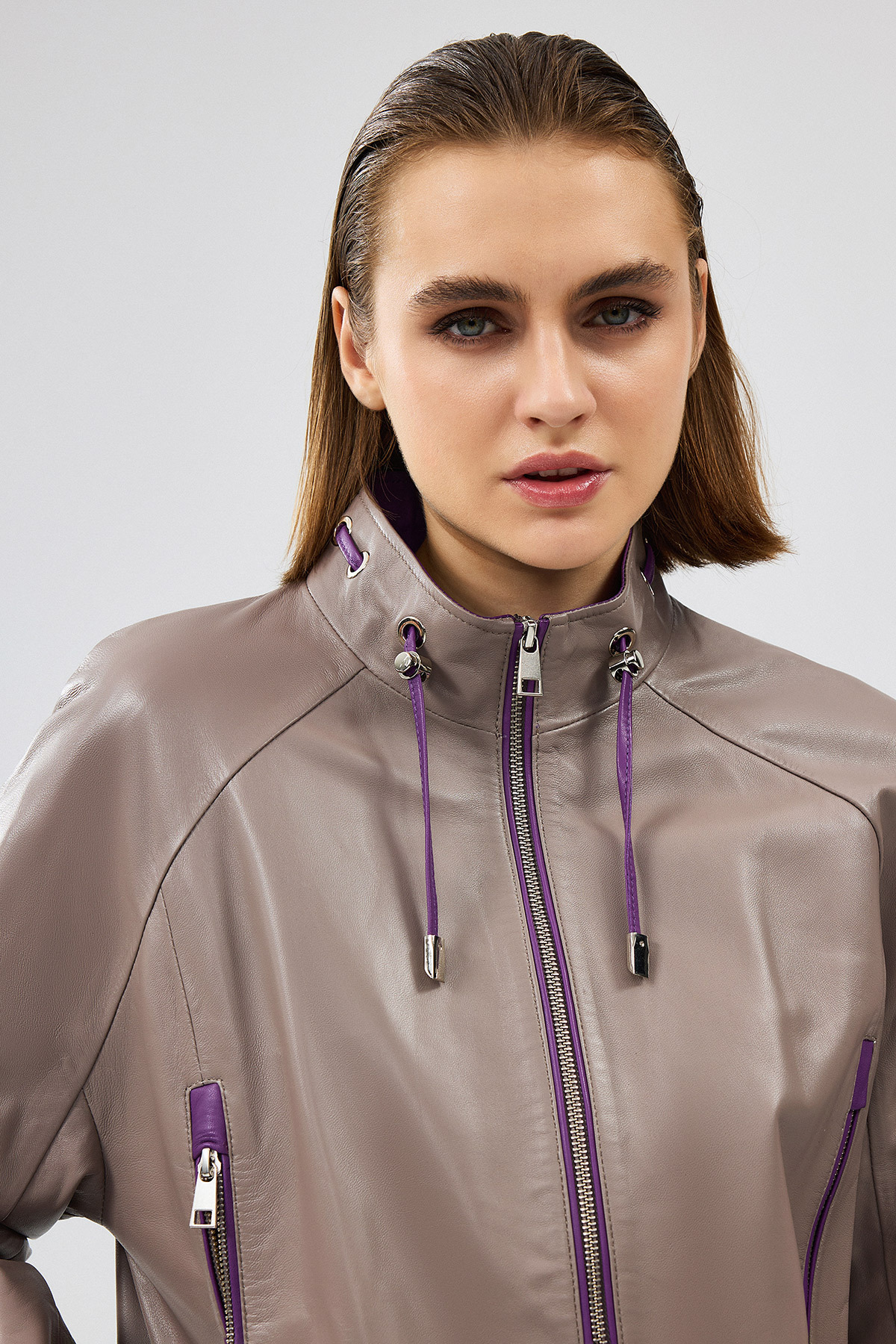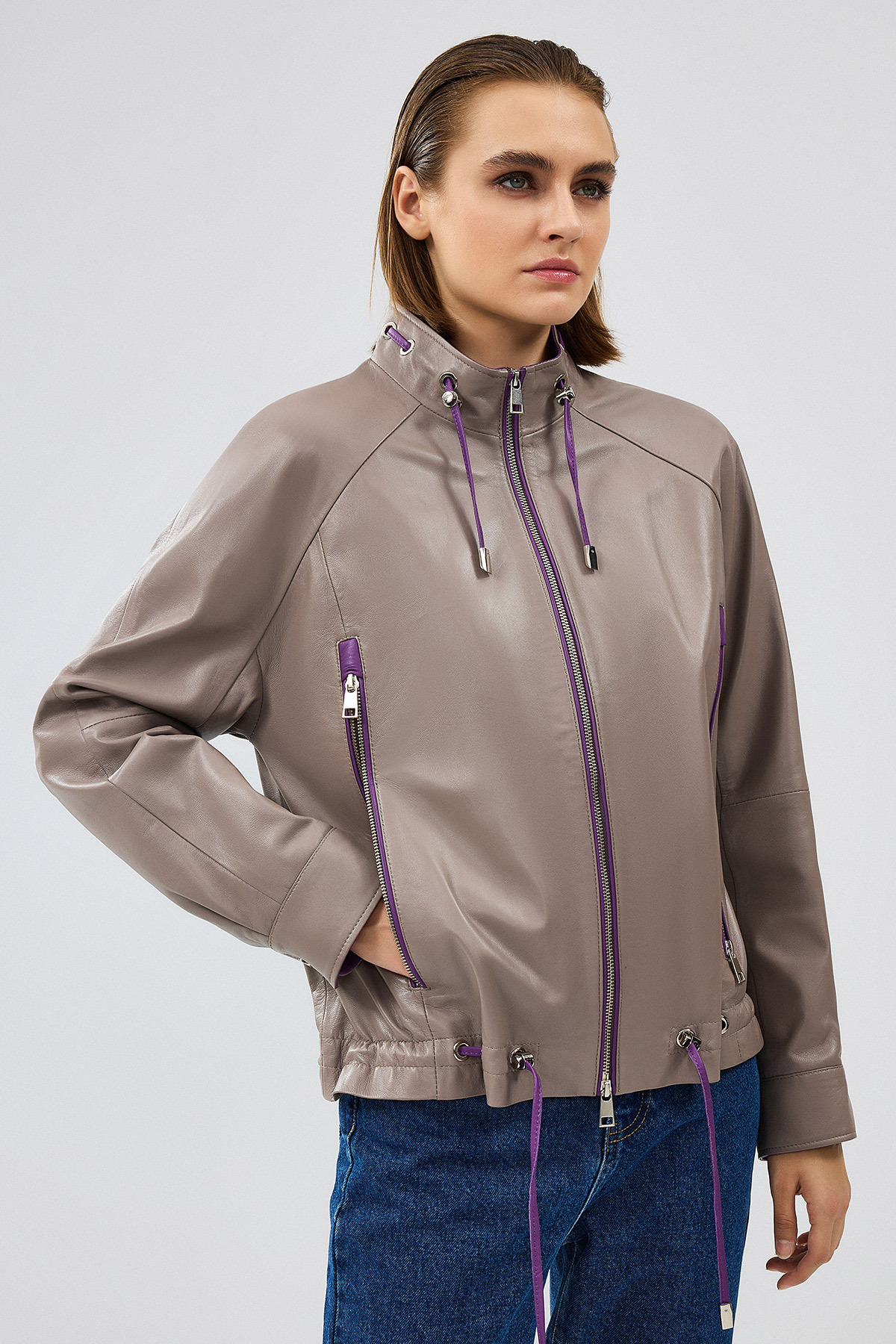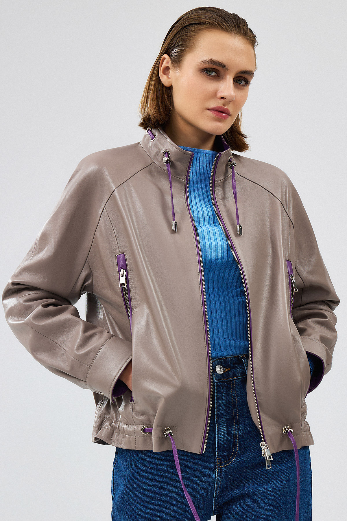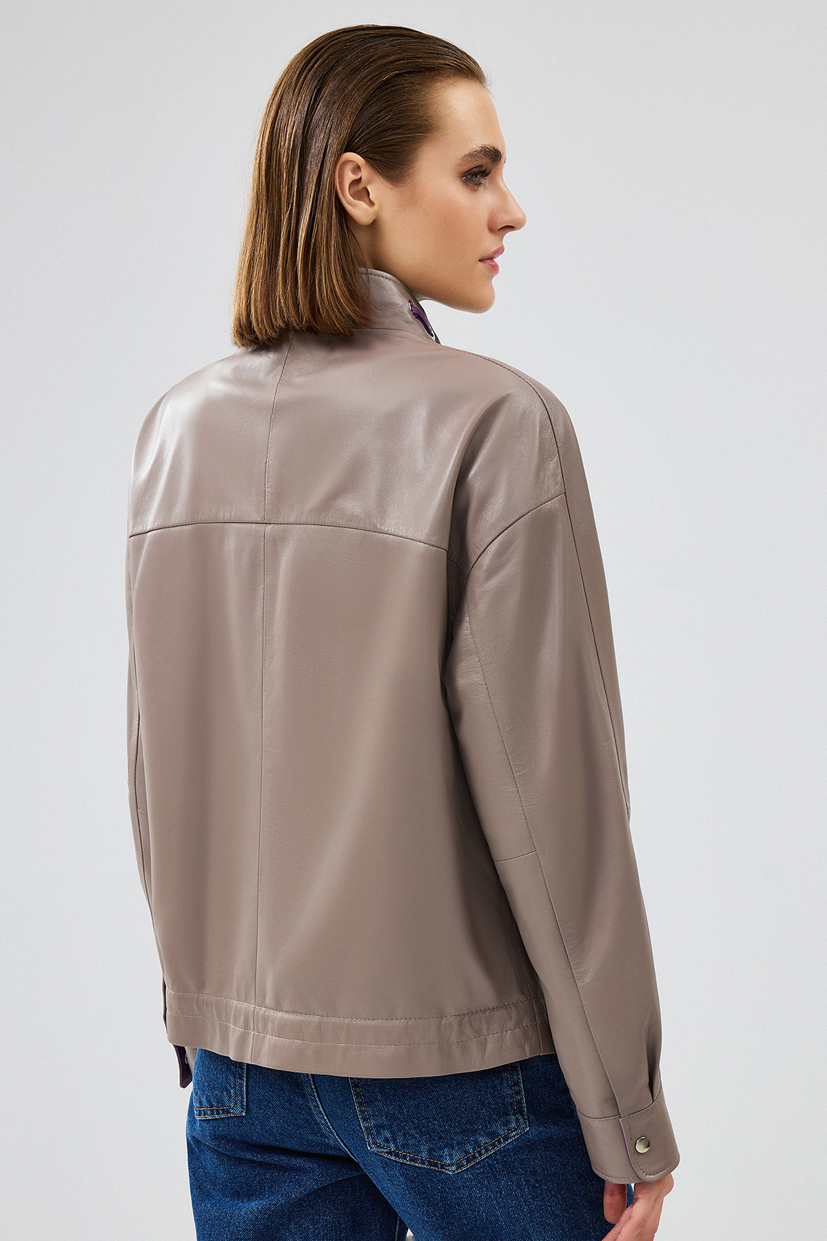 کاپشن چرمی زنانه خاکستری سایز بزرگ Terry دارای پوست گوسفند است.
