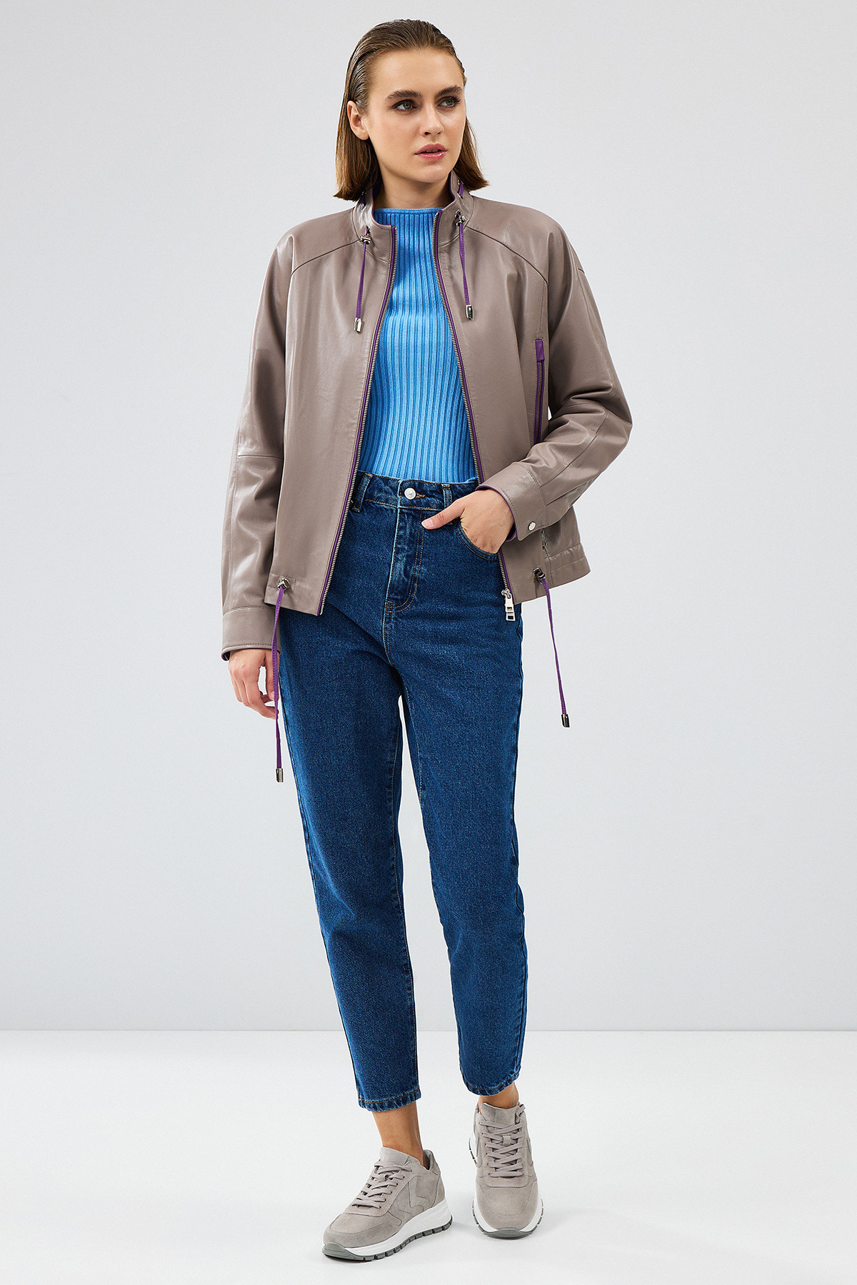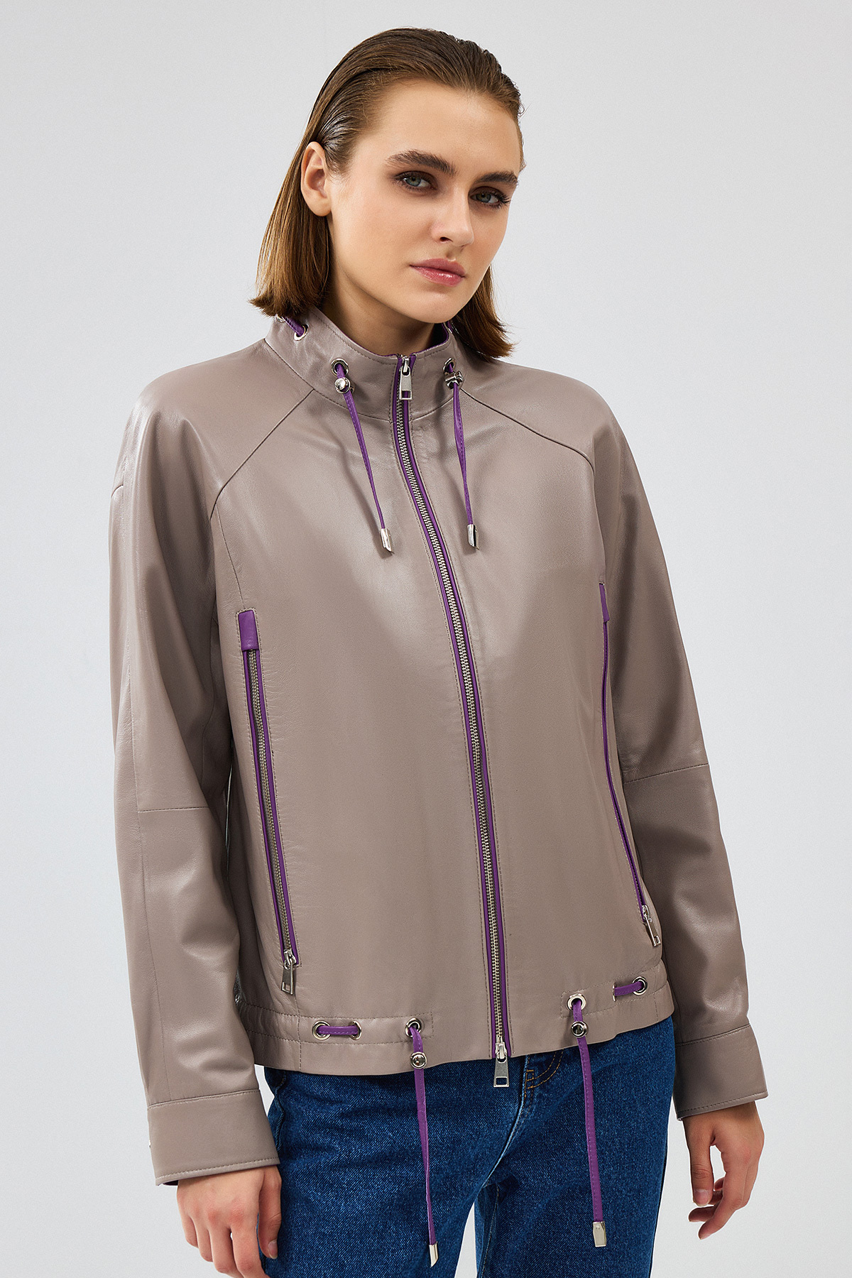 کاپشن چرمی زنانه تری مدل خاکستری سایز بزرگ 24WGD5238U4